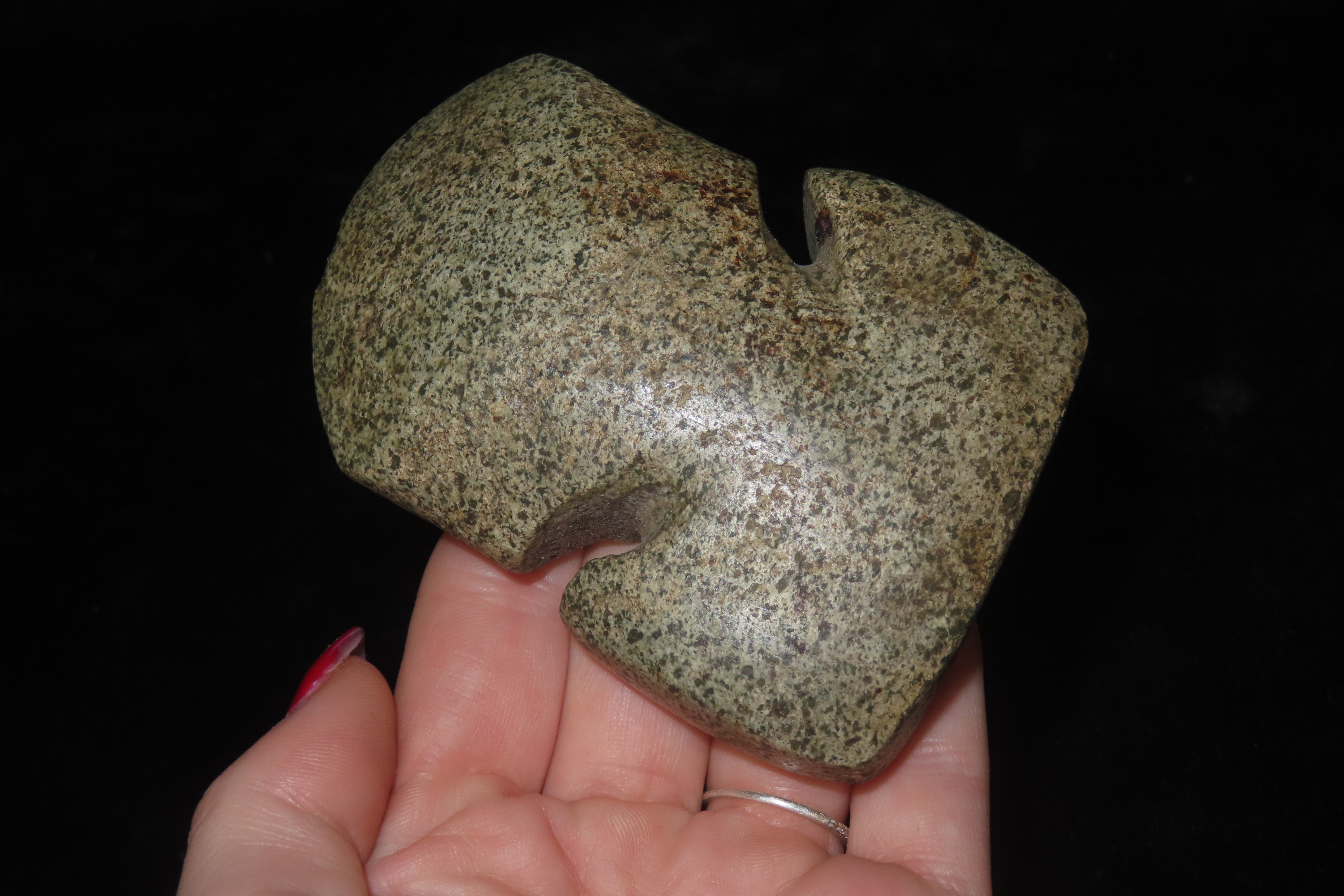 3 1/4″ x 2 7/16″ x 7/8″ Pre-Columbian Votive(Ceremonial) “Barbed” Celt Hand Axe, from Ecuador, Incan Culture, Ex Rich Atkins Collection