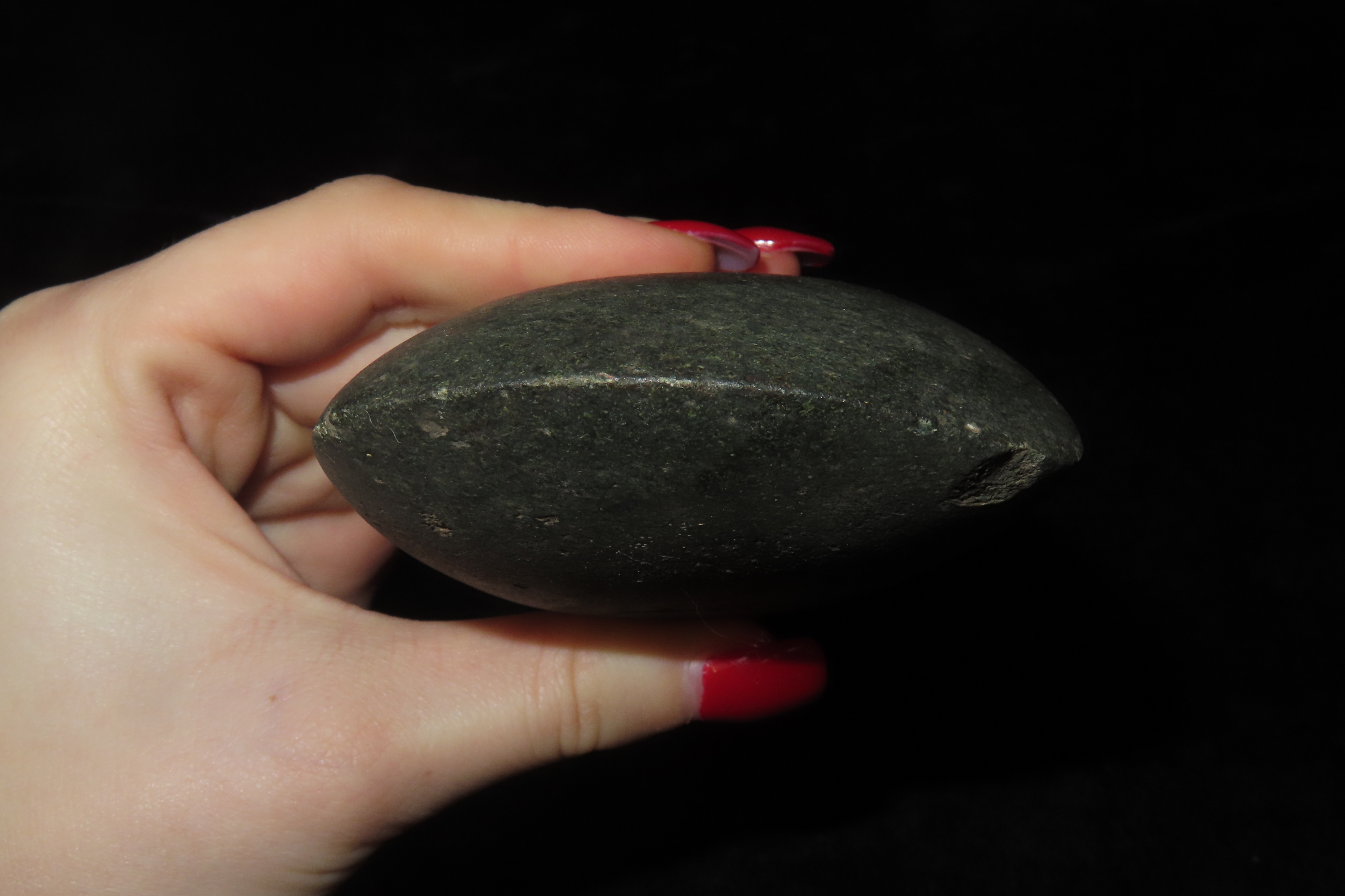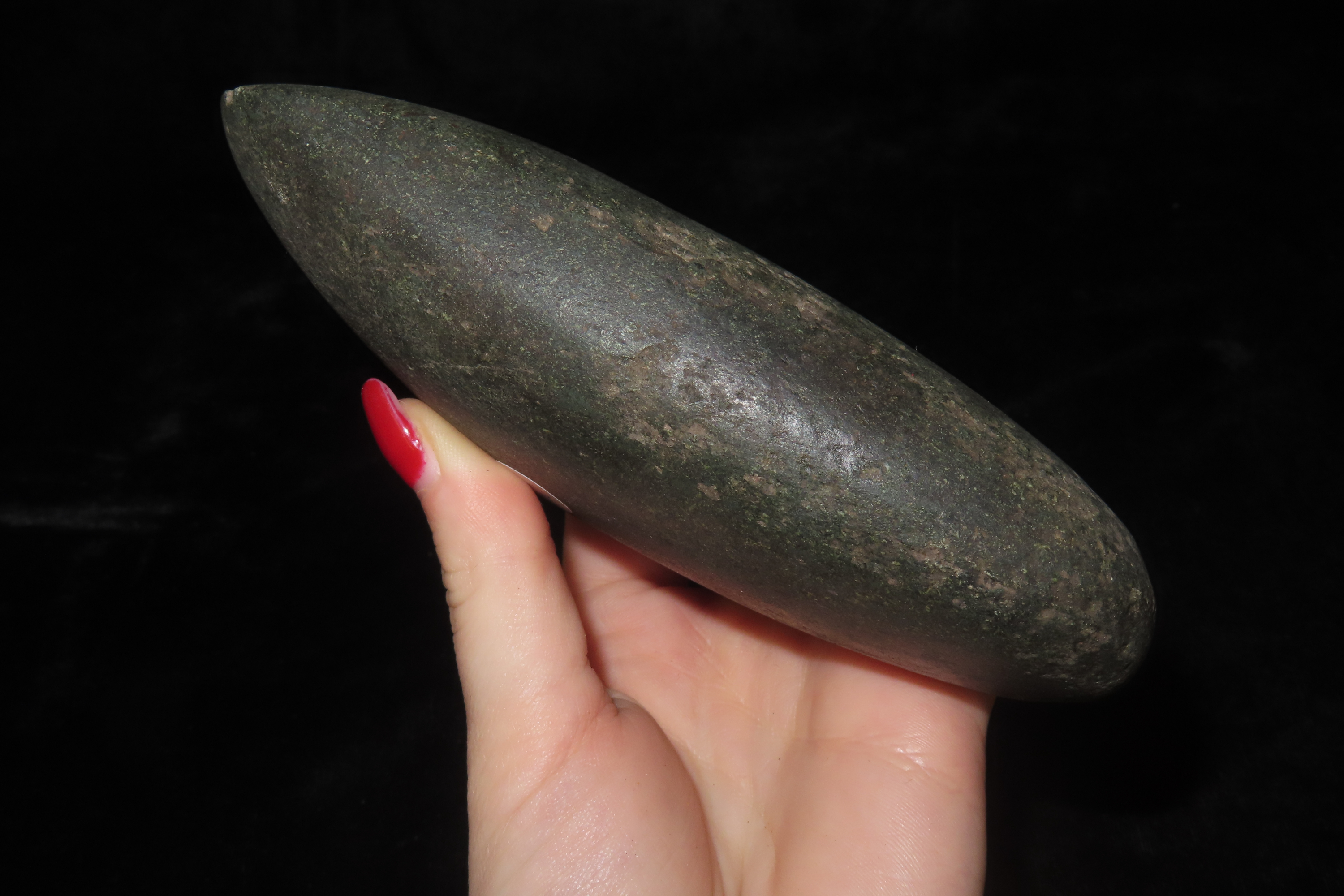 5 1/2″ x 2 1/2″ Pre-Columbian Celt Hand Axe, made of Black Hardstone, from Ecuador, Ex Rich Atkins Collection