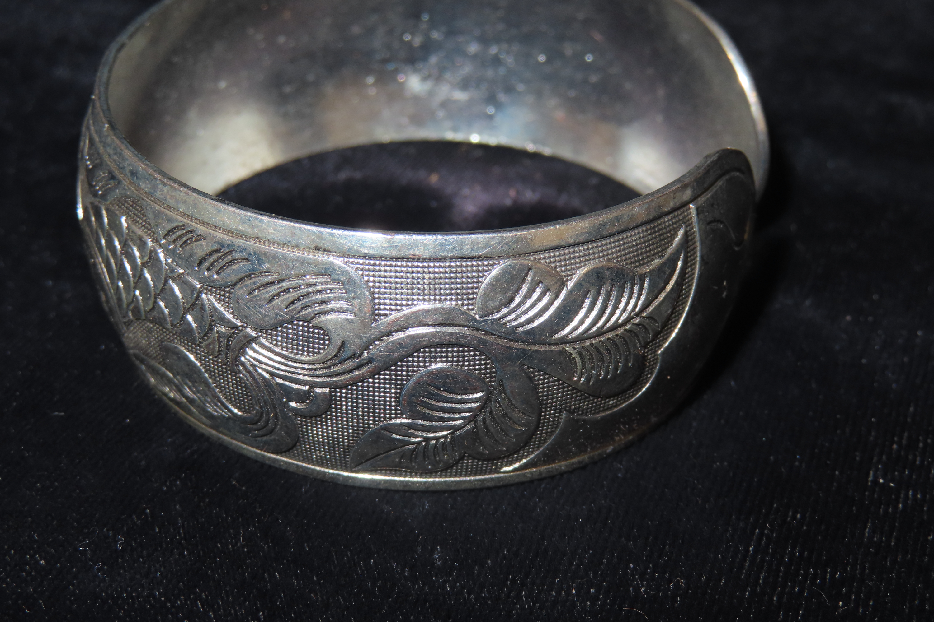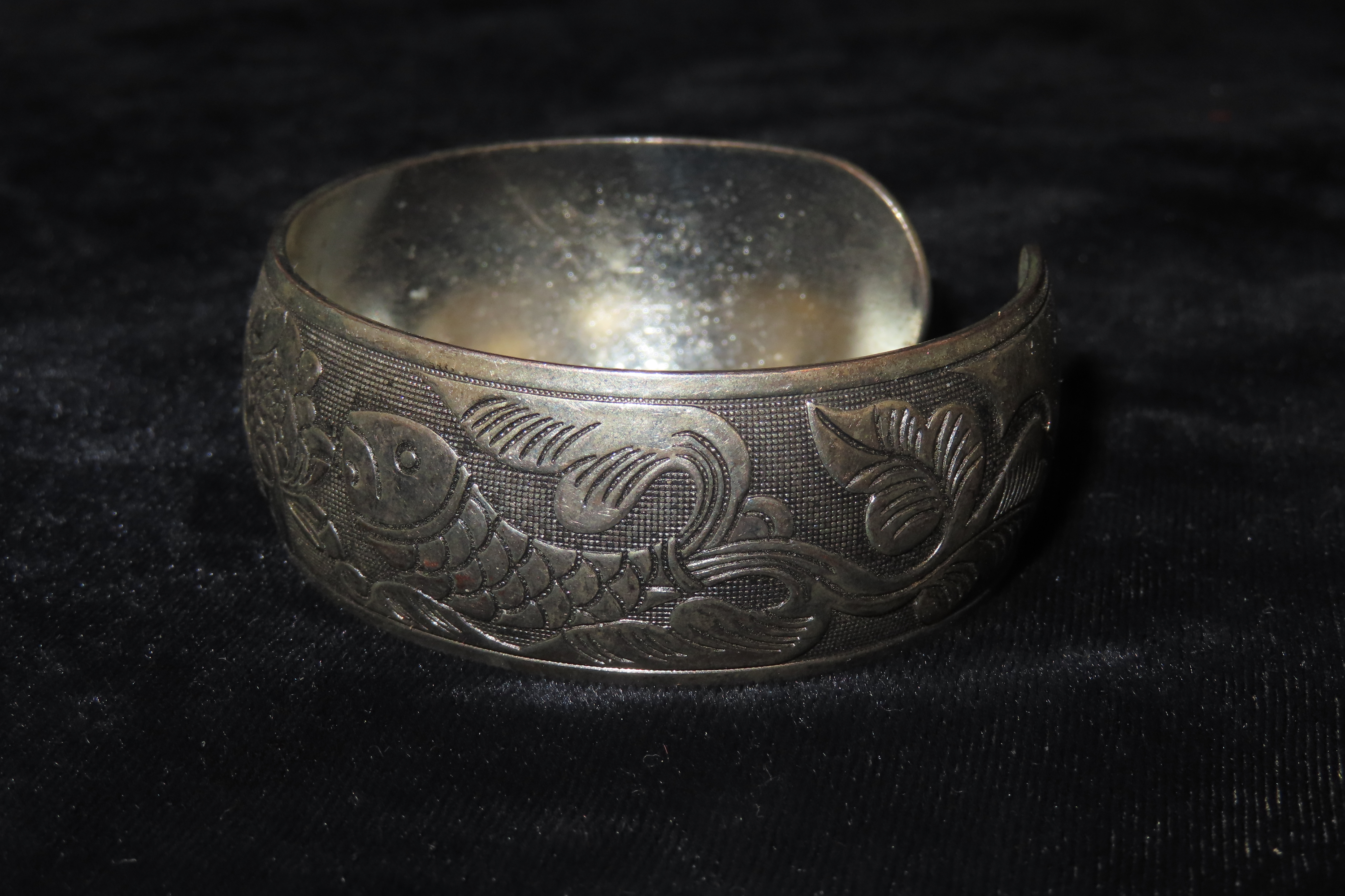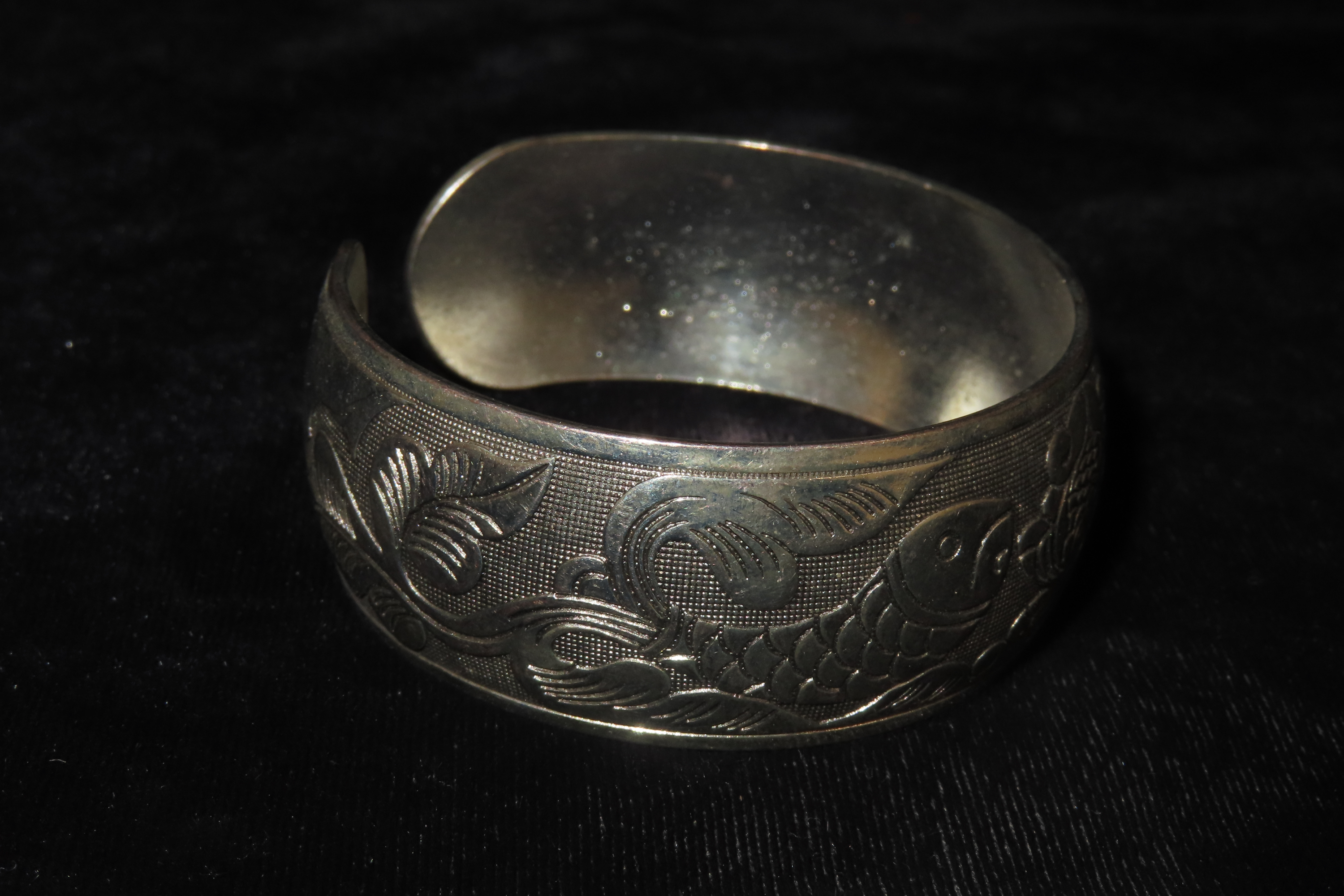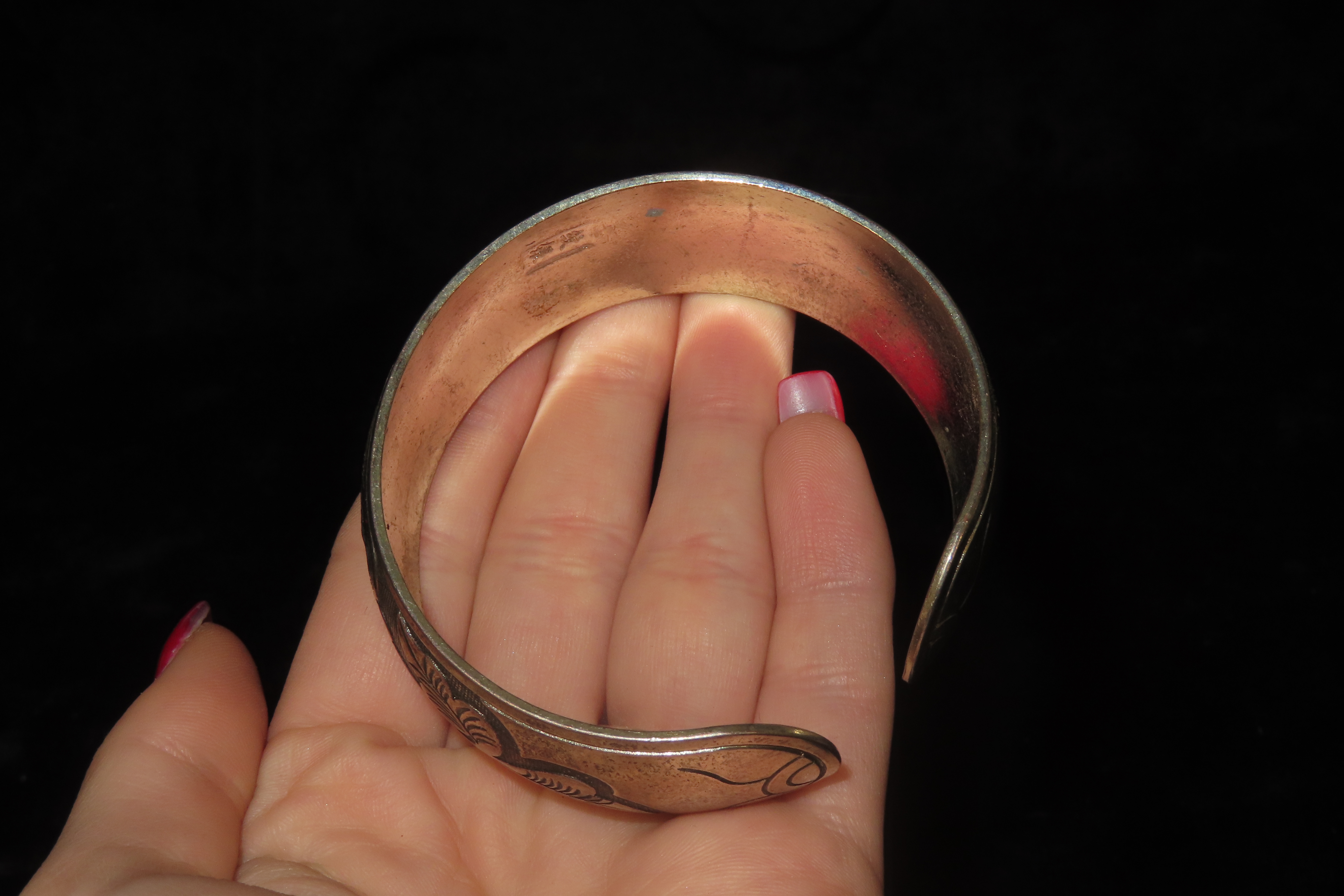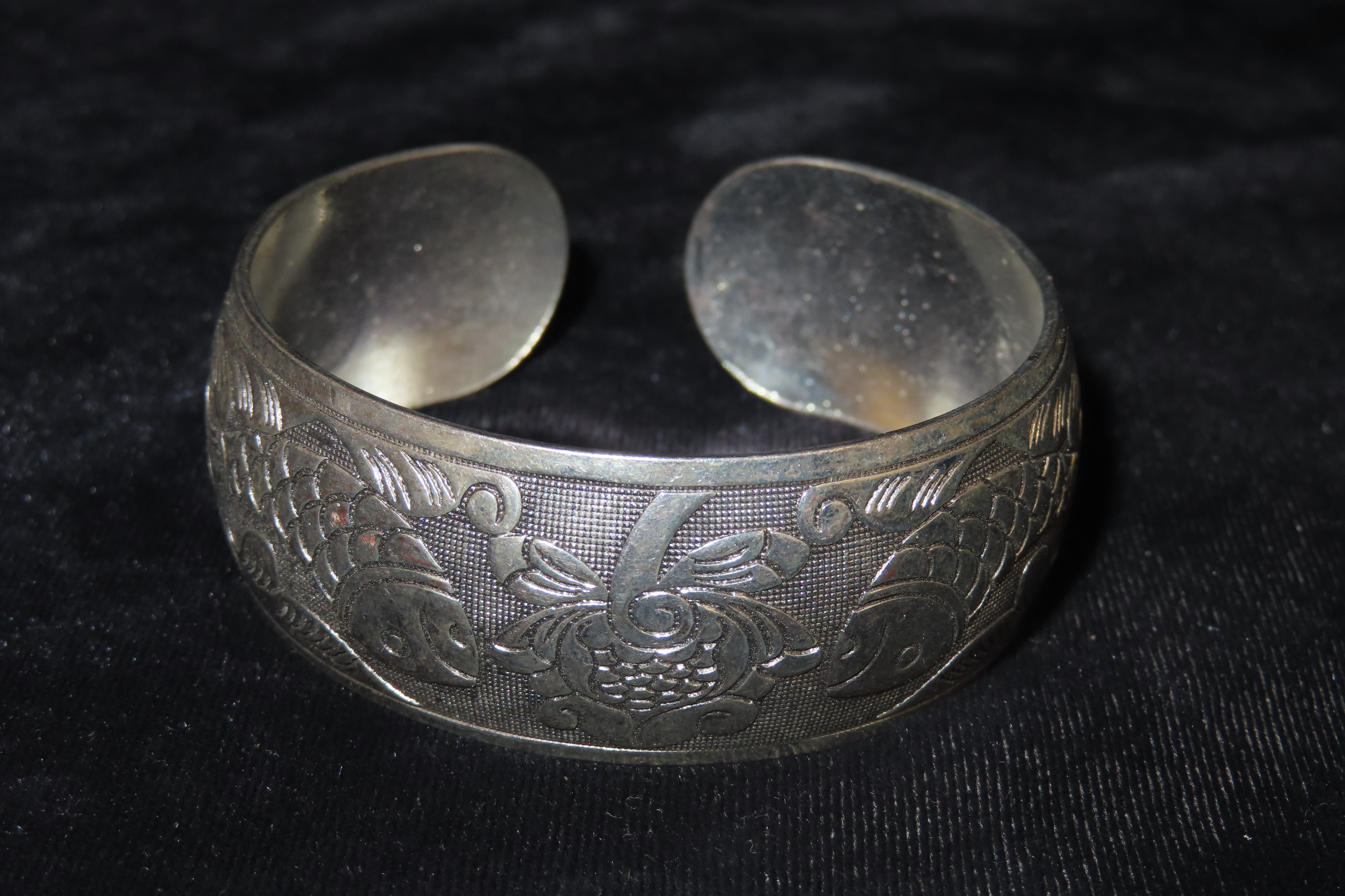Antique Asian / Chinese Cuff Bracelet, Stamped