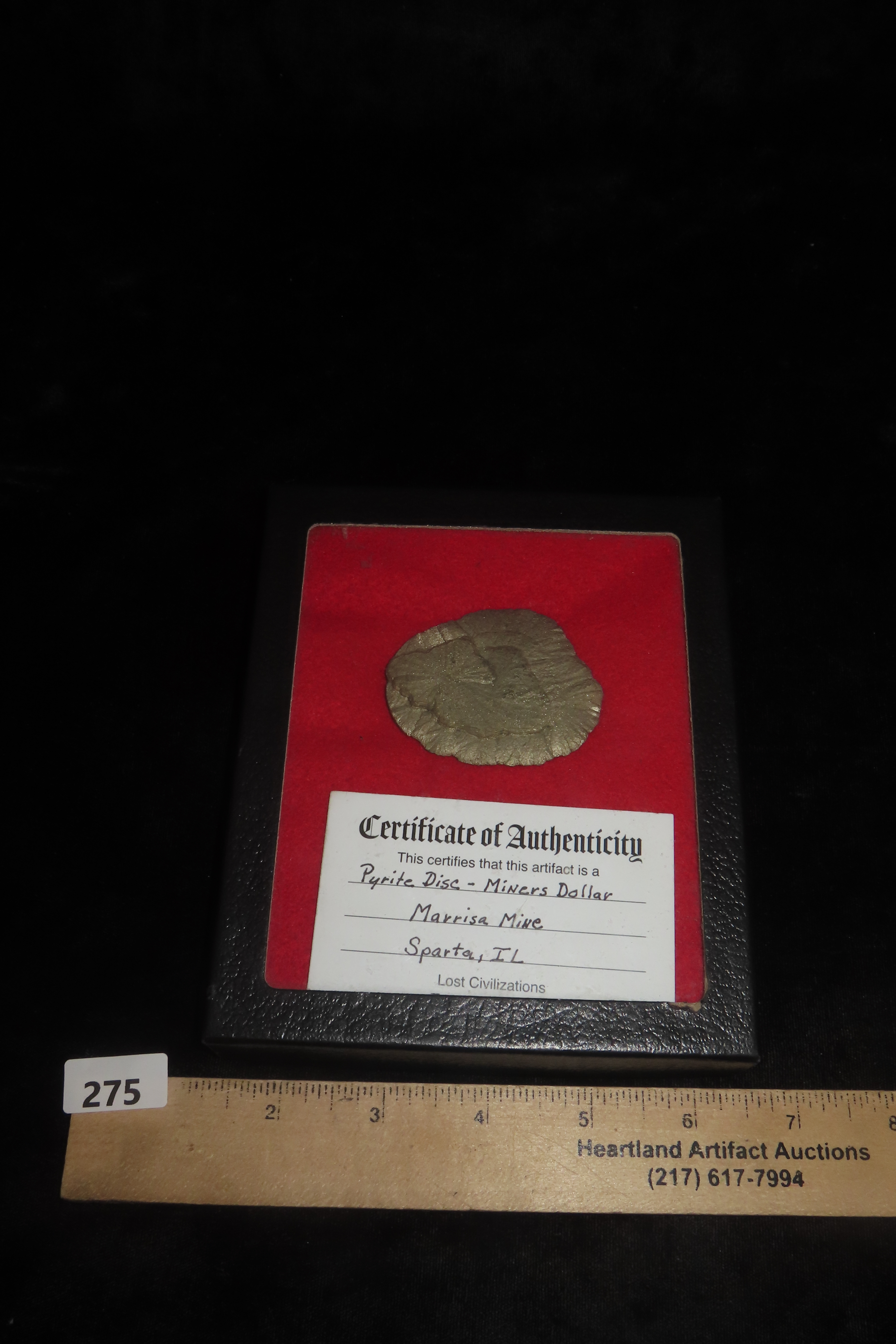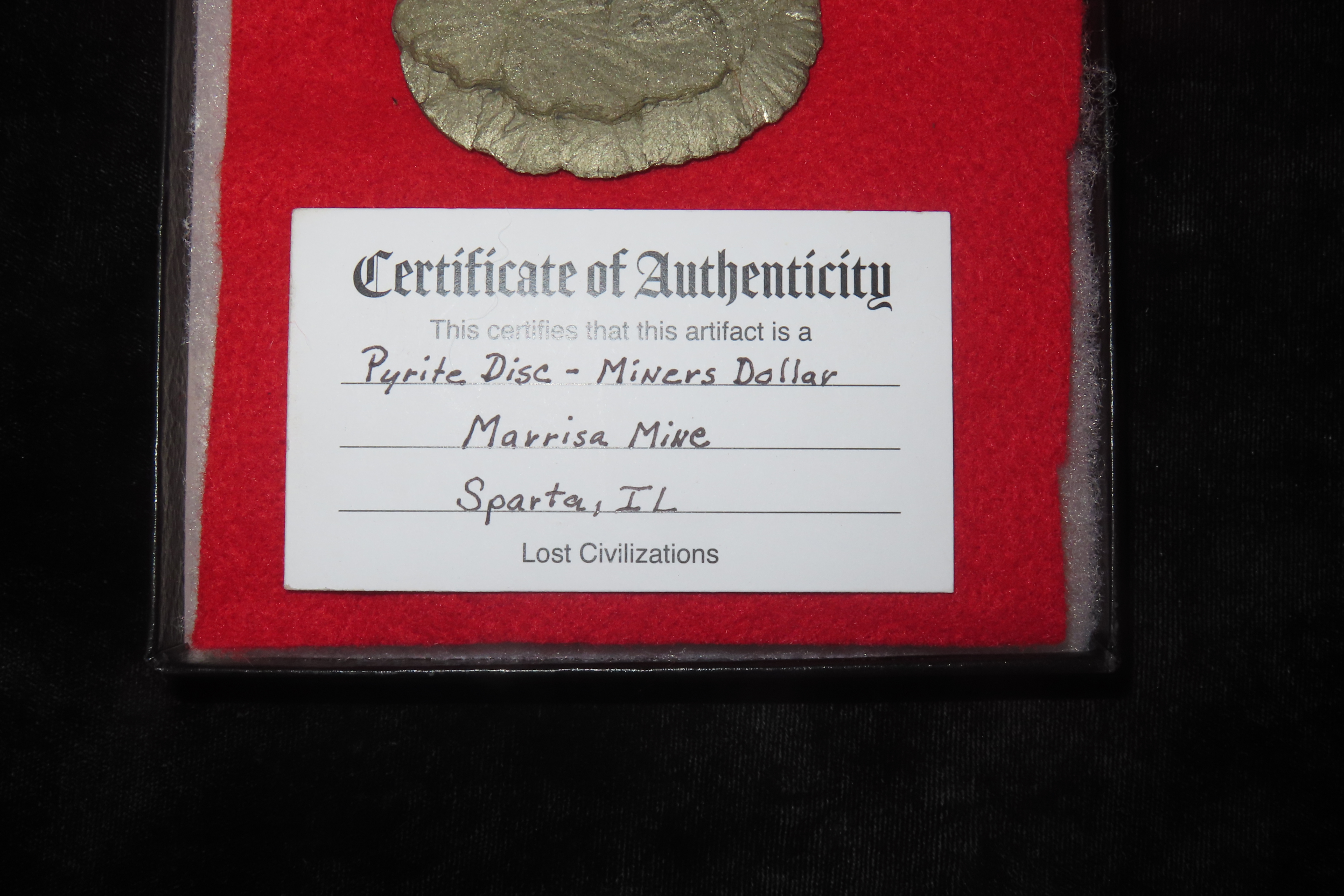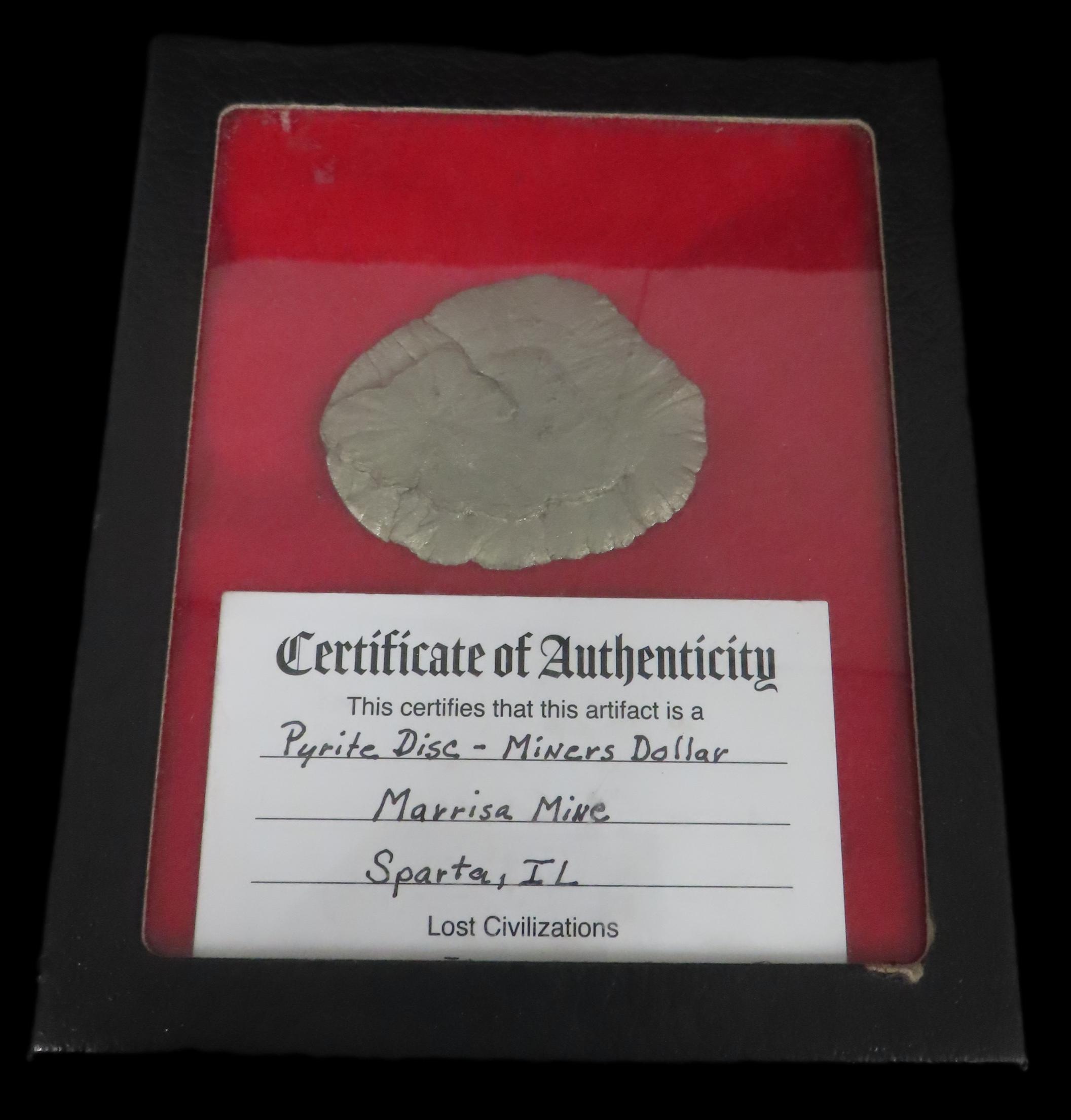 6″ x 5″ Frame Containing a Pyrite Disc, Miners Dollar, Marrisa Mine, Sarta, IL