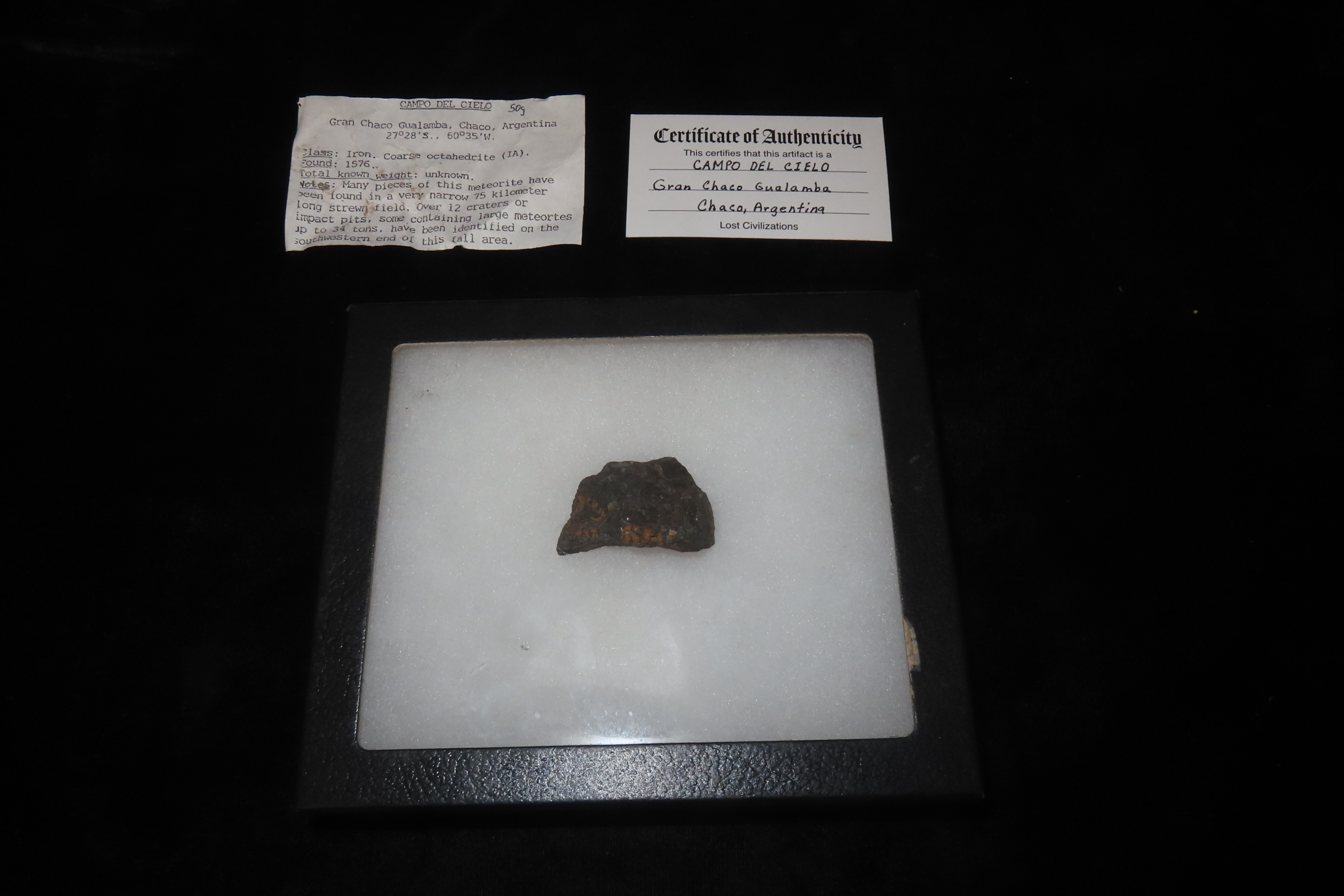 1 3/4″ x 1″ Camp Del Cielo Meteorite, Lost Civilization COA, Found in Gran Chaco Gualamba, Chaco, Argentina