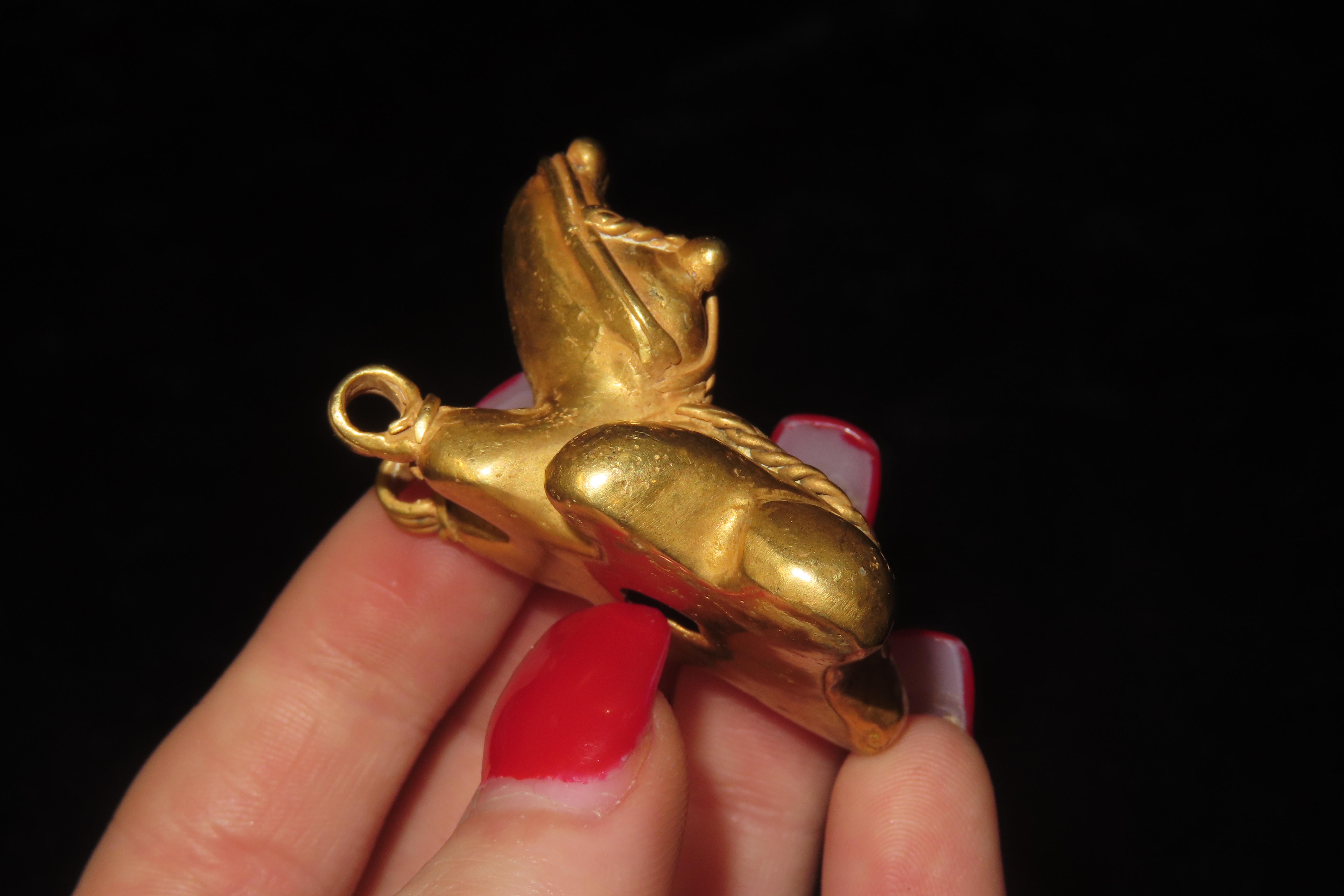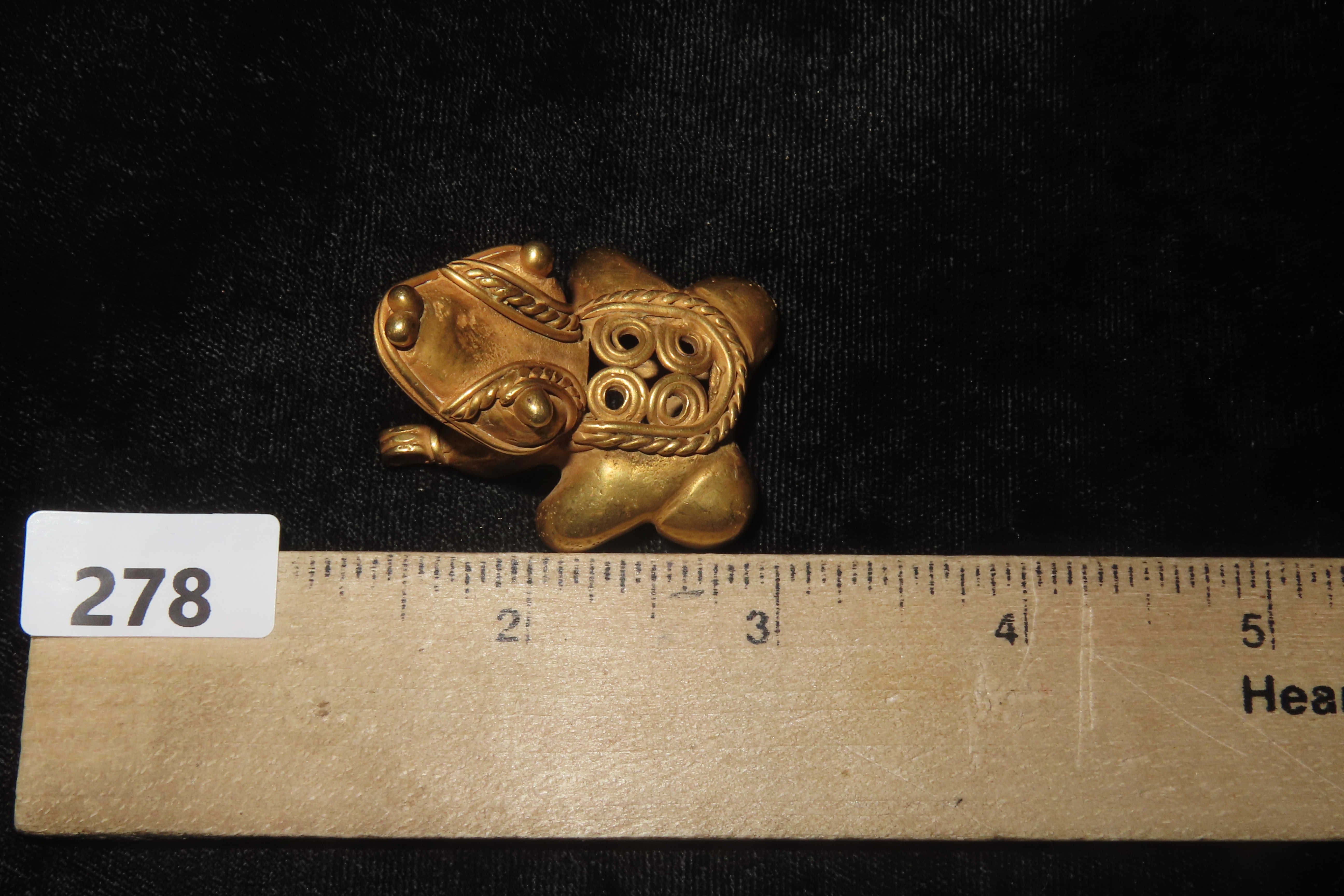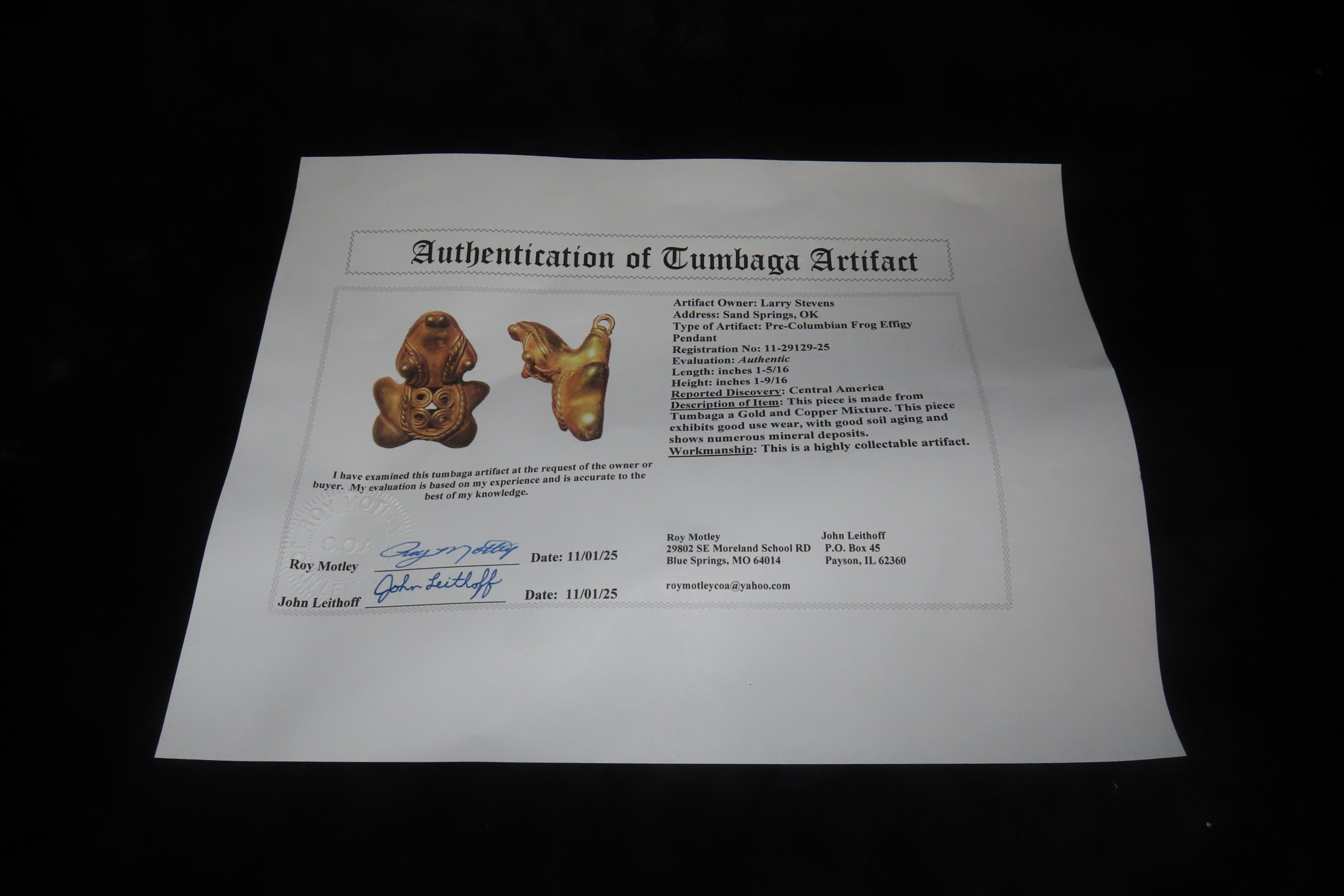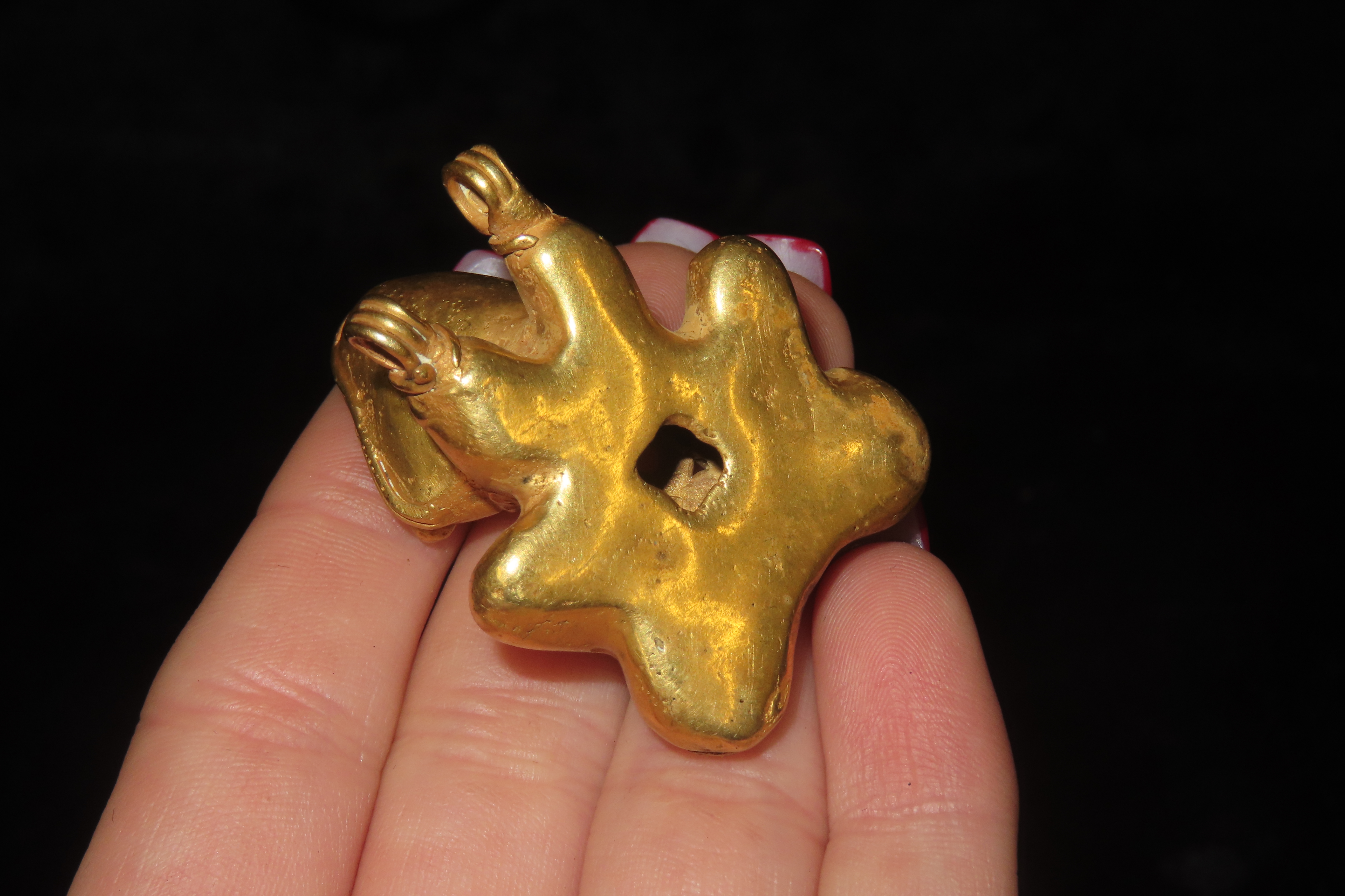 1 5/16″ x 1 9/16″ Pre-Columbian Tumbaga Frog Effigy Pendant, Motley COA, Found in Central America, Exact Gold Contents unknown