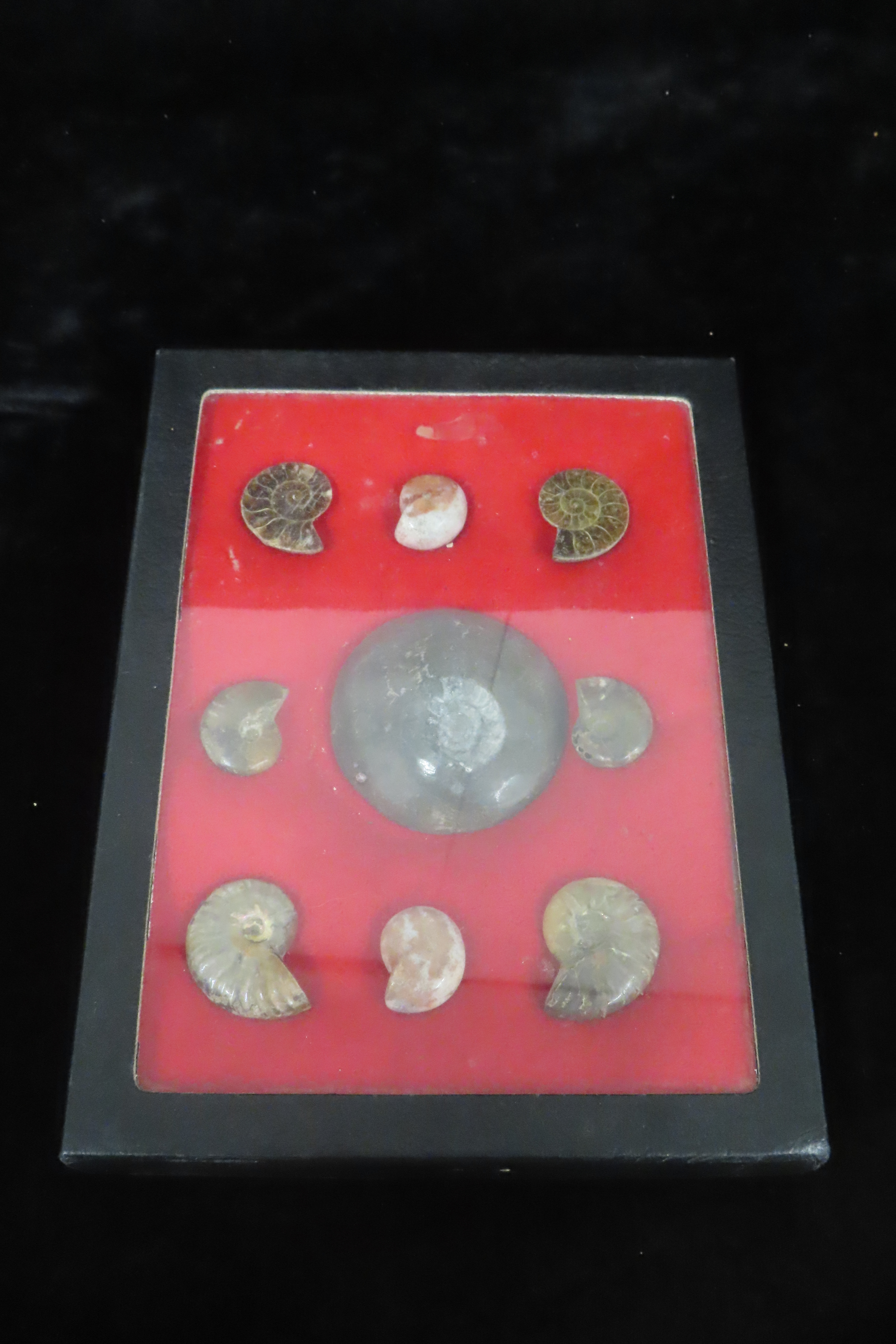 8 1/2″ x 6 1/2″ Frame of an Assortment of Ammonites, Lost Civilizations COA, Devonian Period (400-600 million years old) found in Madagascar, Morocco