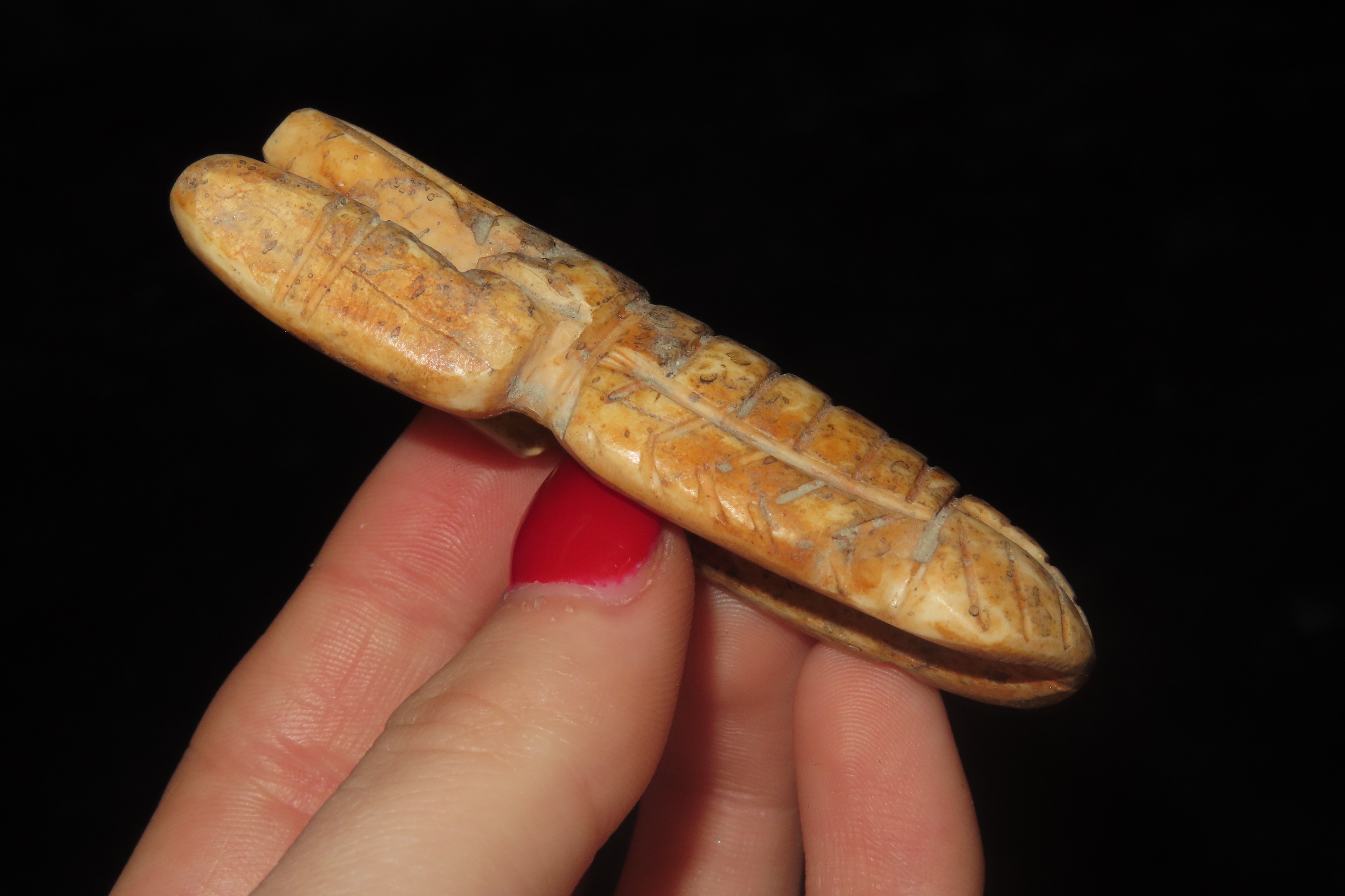2 7/8″ X 1 1/8″ Pre Columbian Bone Lobster Effigy, Found in Peru