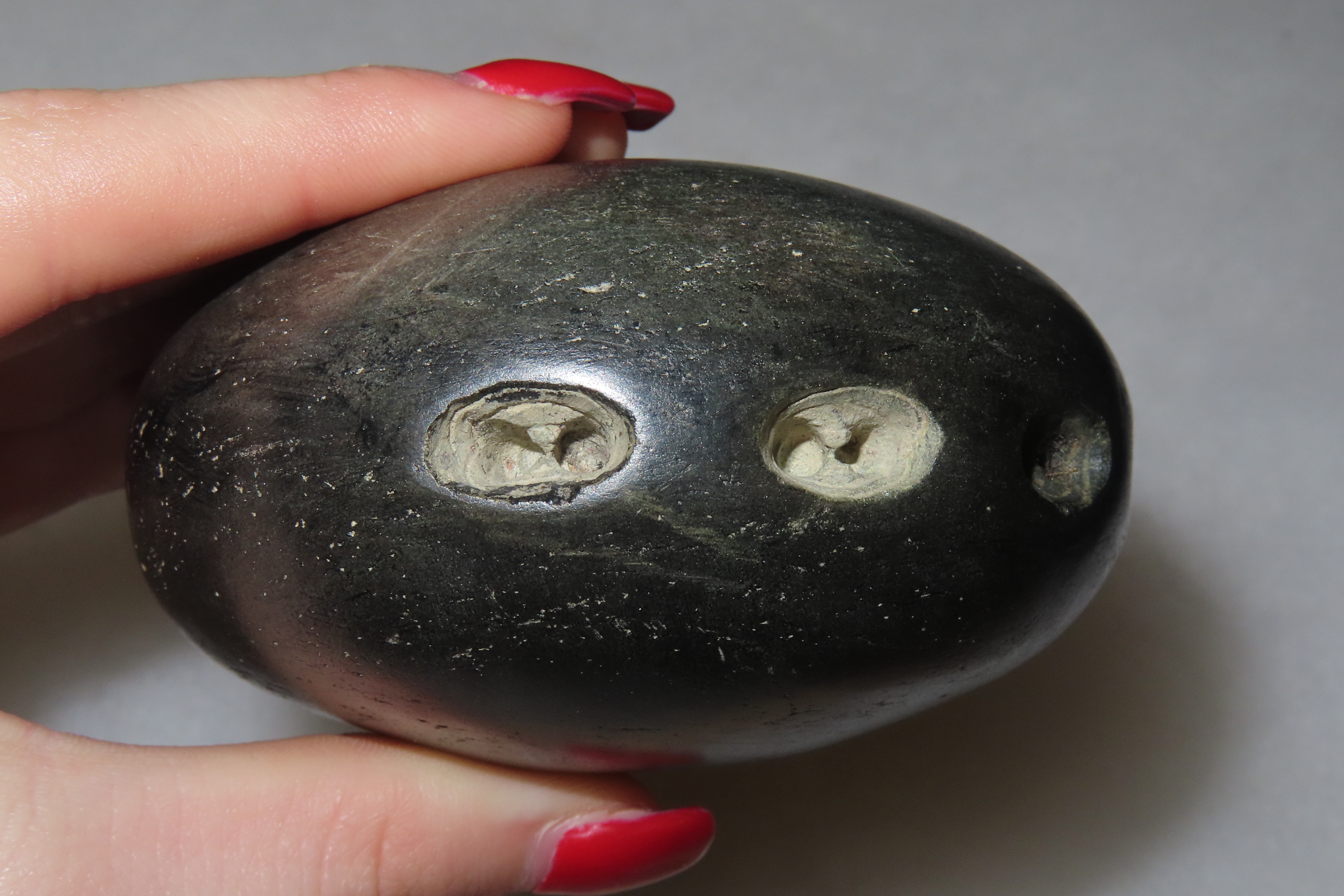 3 1/2″ Unique and Rare Artifact/Tool/Religious Talisman- Hardstone Discoidal with Shallow Perforations around Circumference, Exact Use Unknown, From Private Collection in Delaware