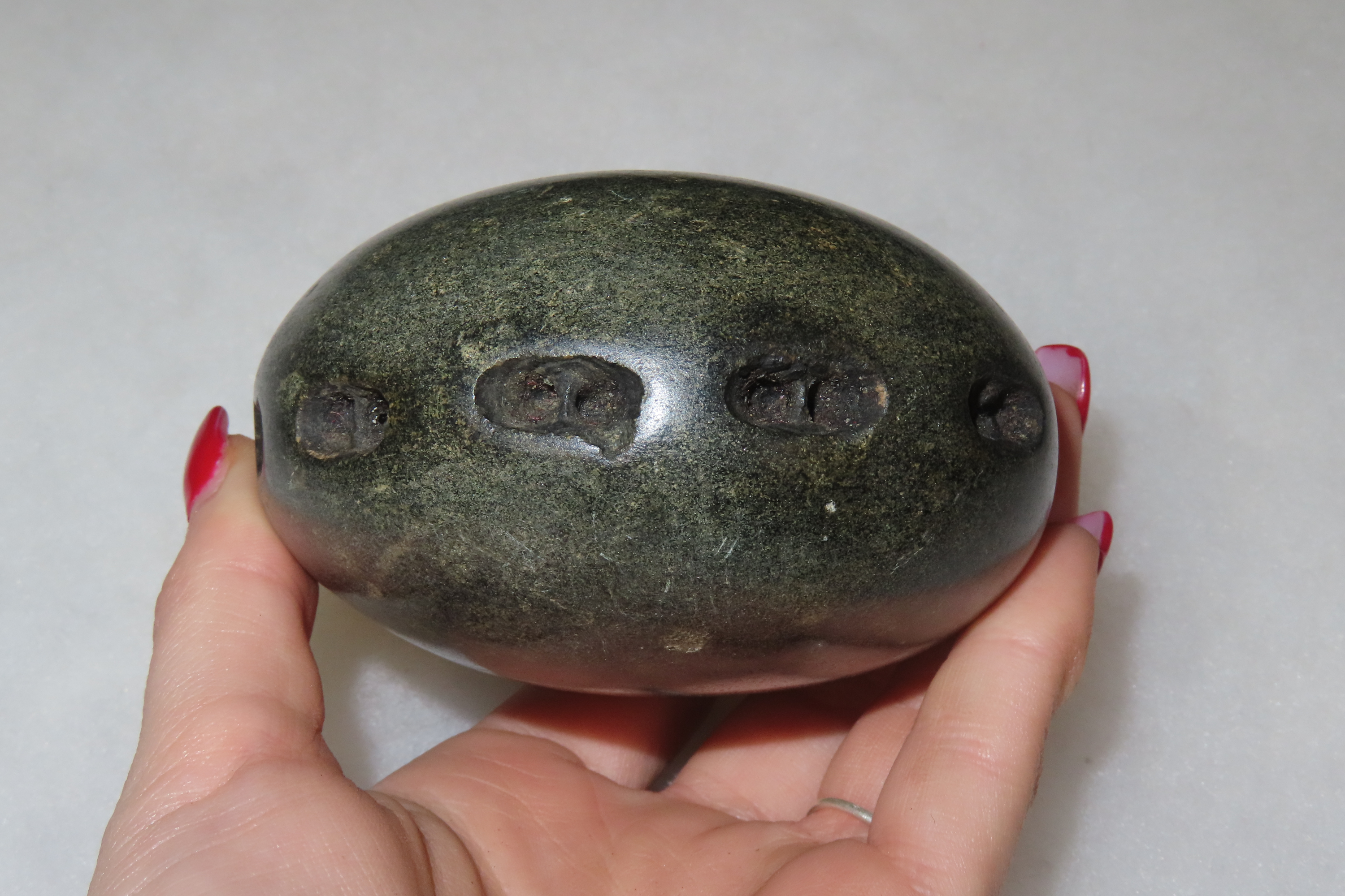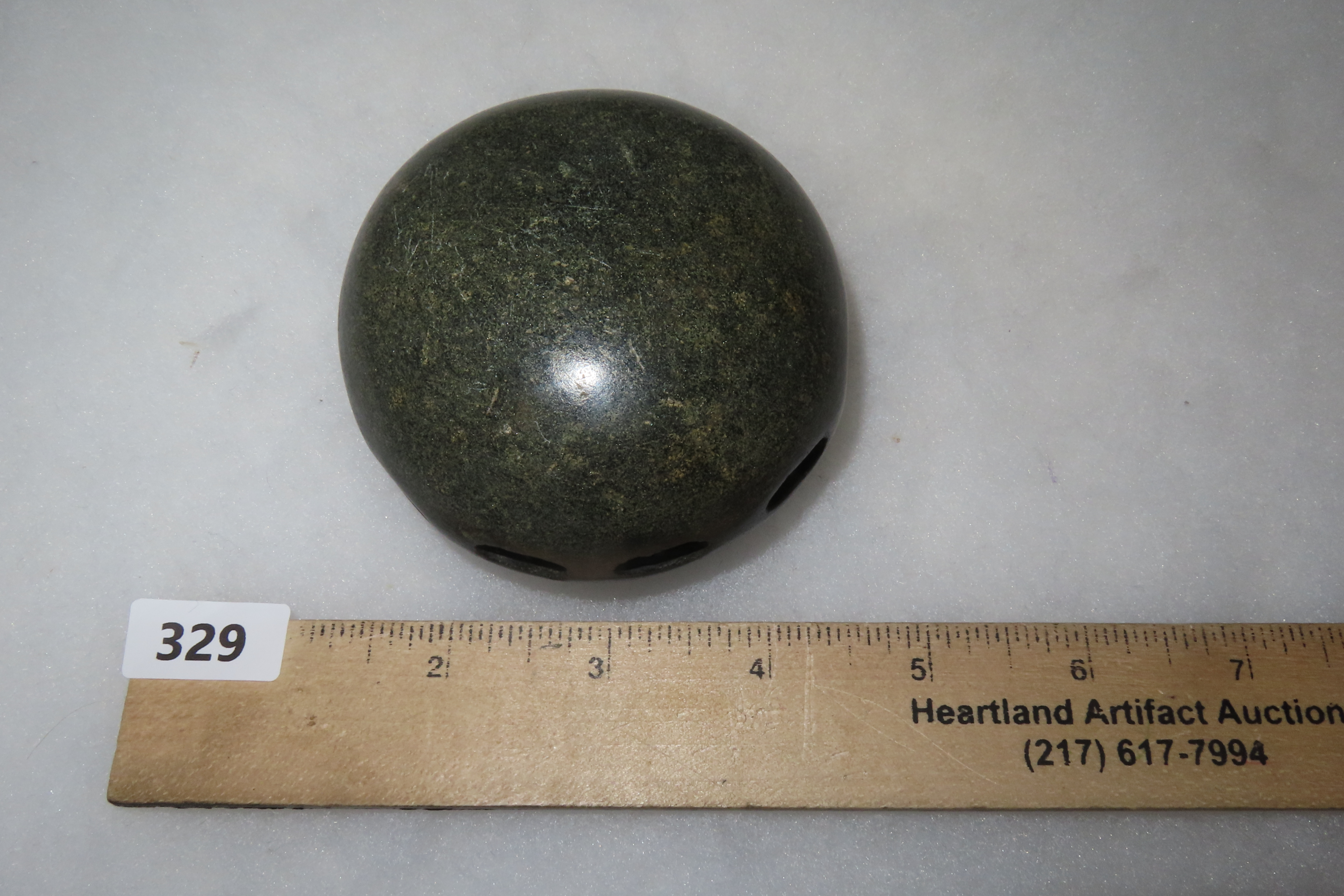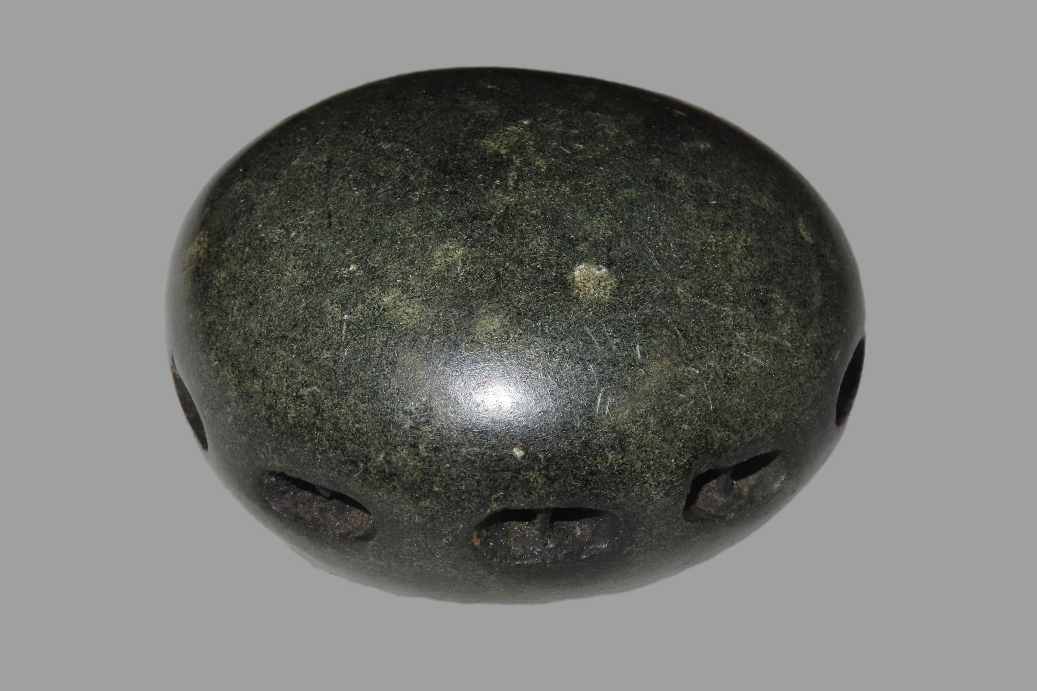 3 1/2″ Unique and Rare Artifact/Tool/Religious Talisman- Hardstone Discoidal with Shallow Perforations around Circumference, Exact Use Unknown, From Private Collection in Delaware