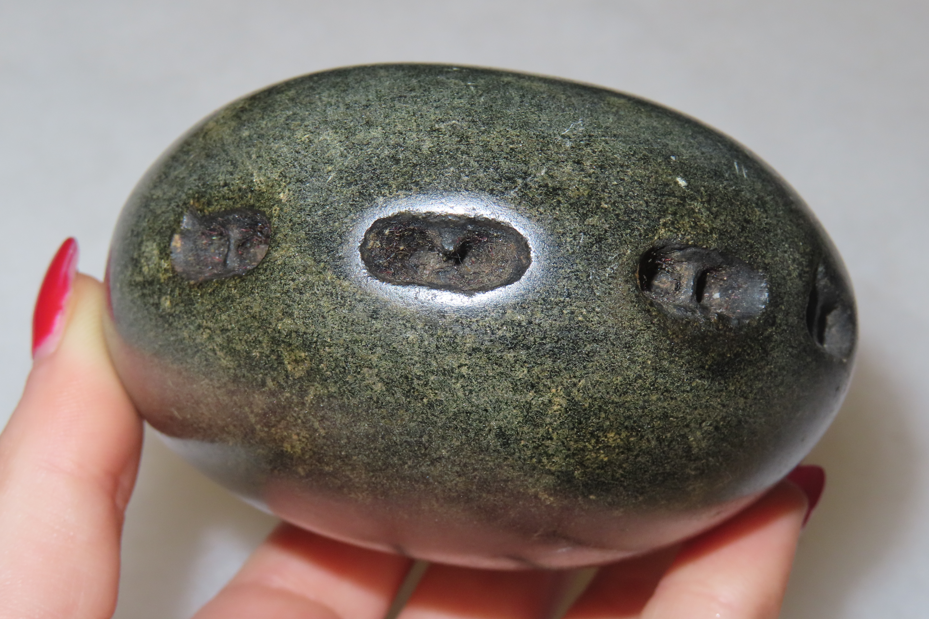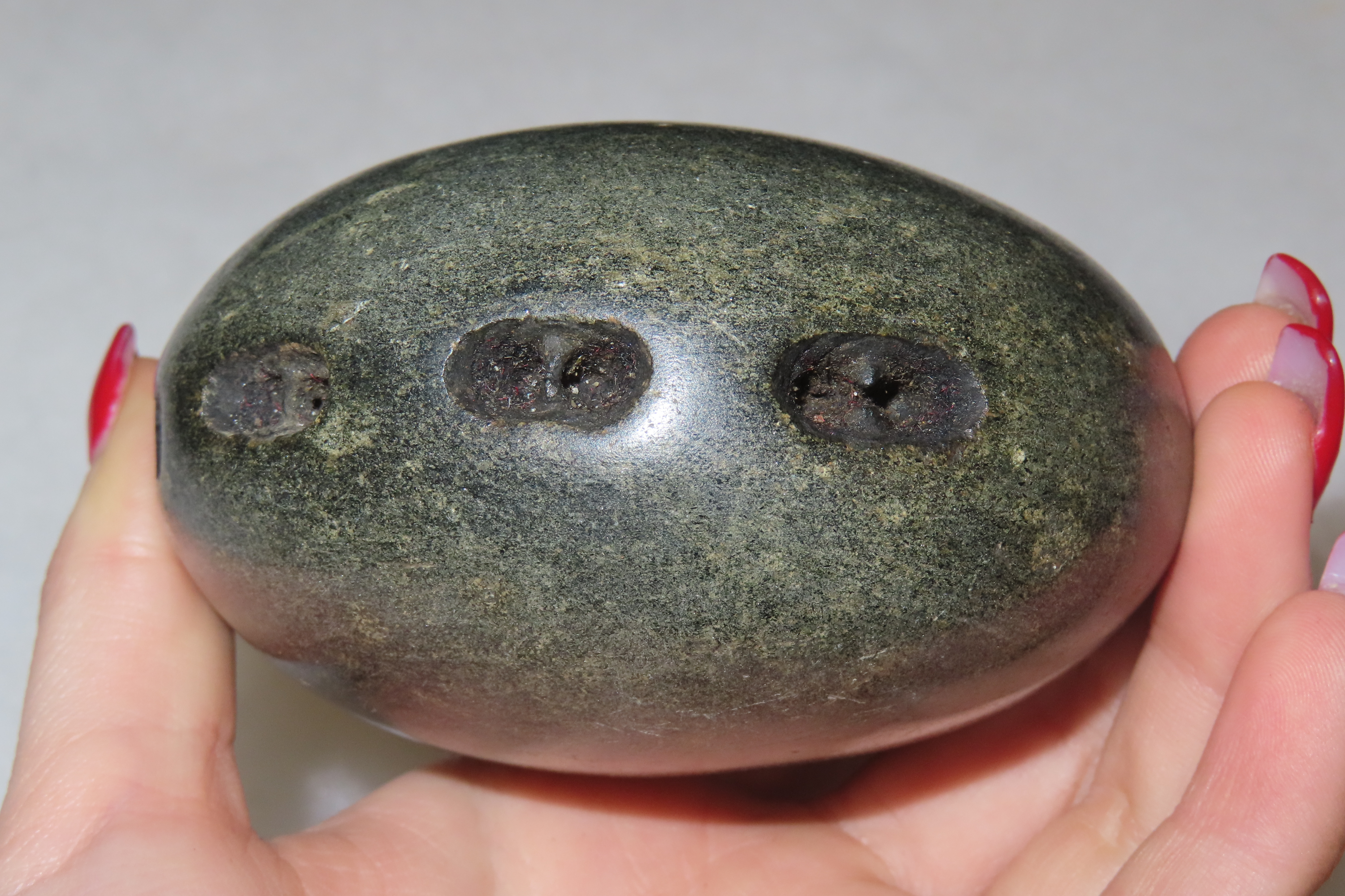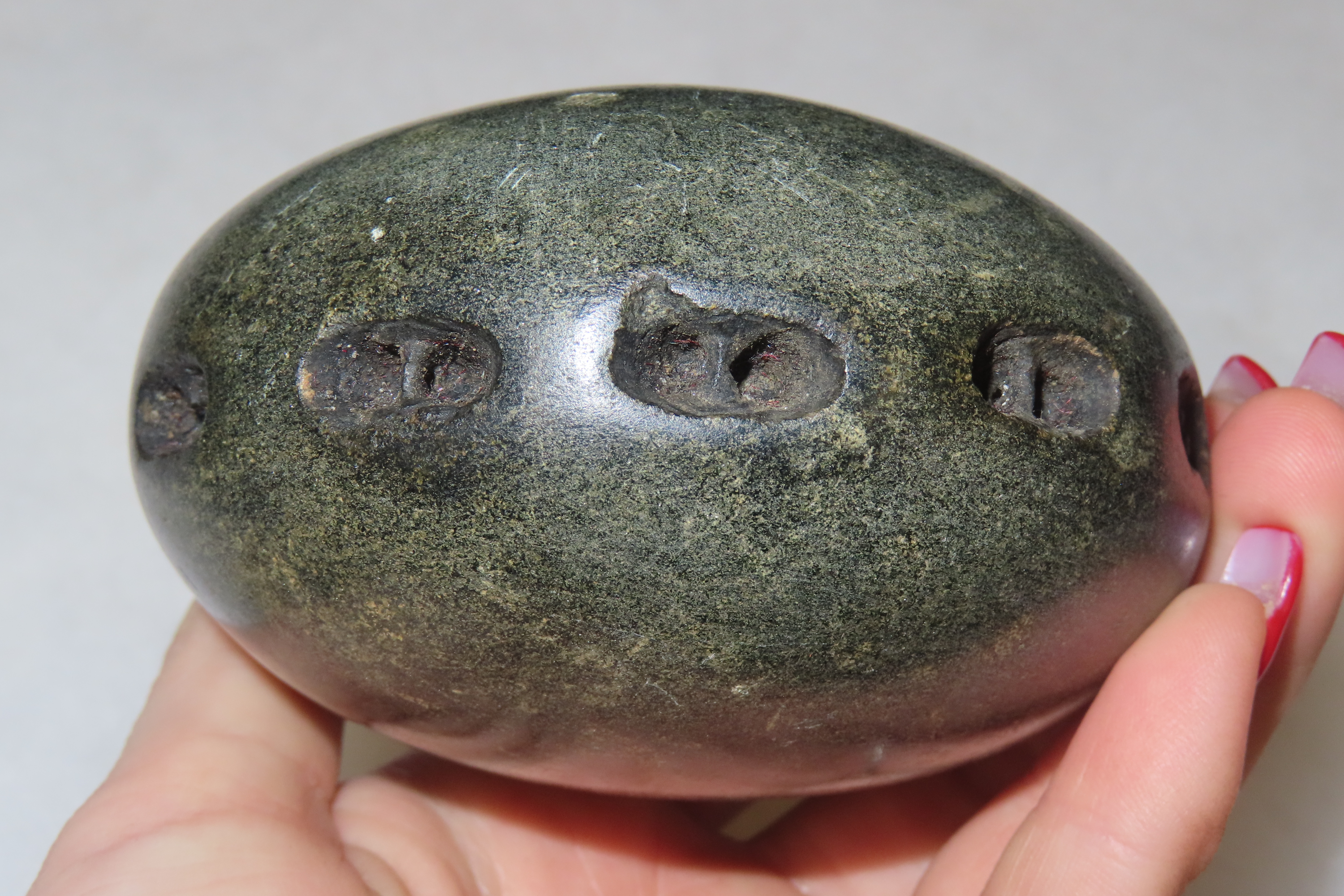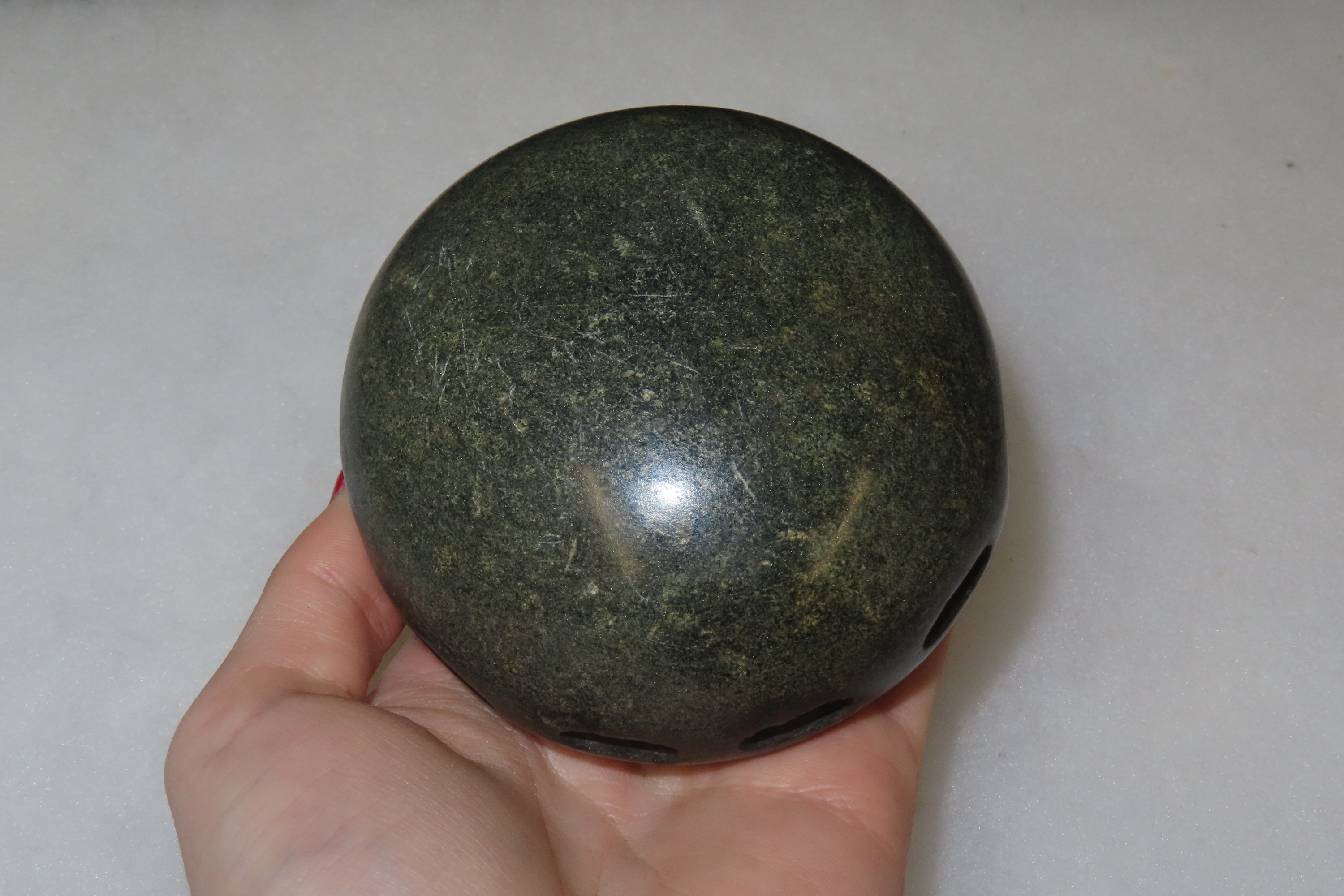 3 1/2″ Unique and Rare Artifact/Tool/Religious Talisman- Hardstone Discoidal with Shallow Perforations around Circumference, Exact Use Unknown, From Private Collection in Delaware