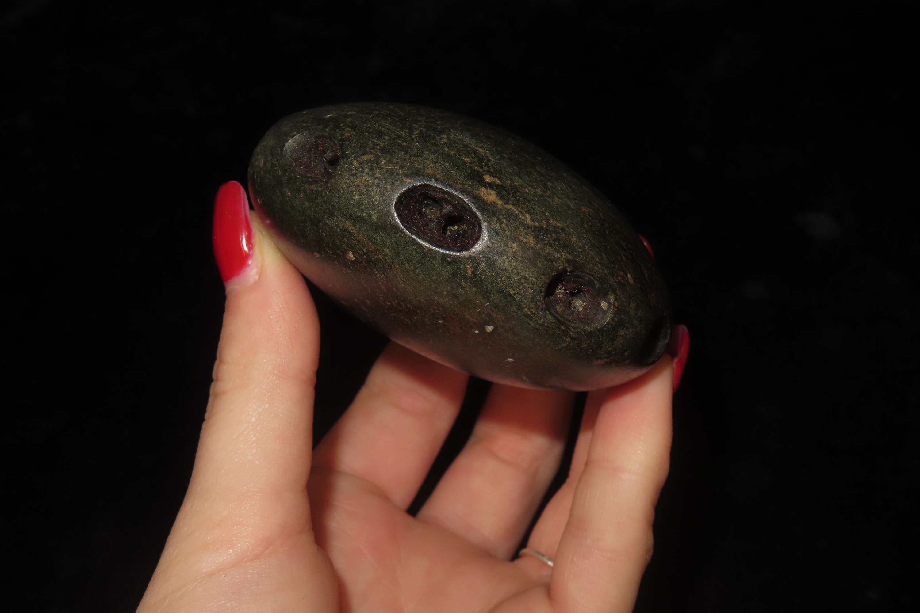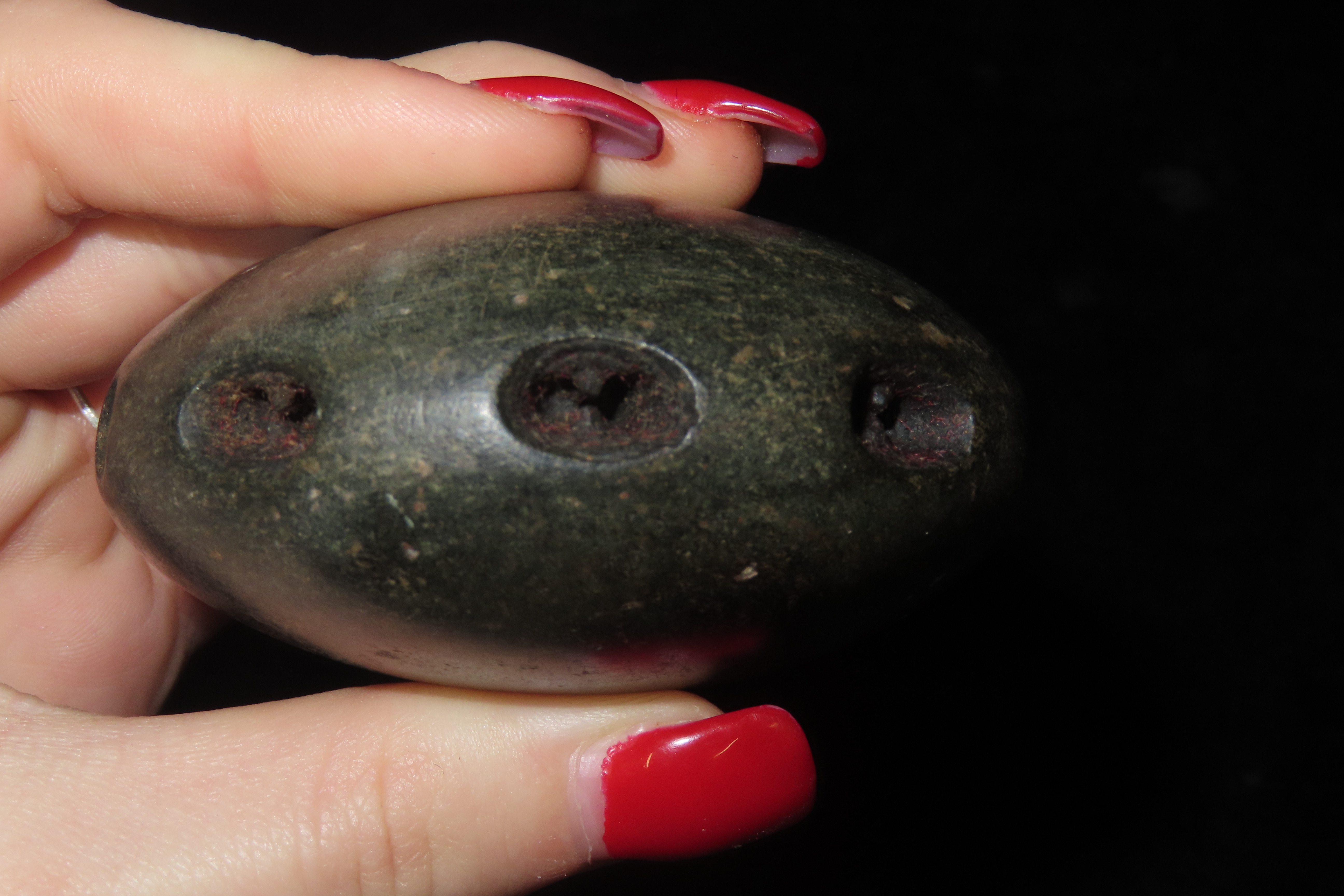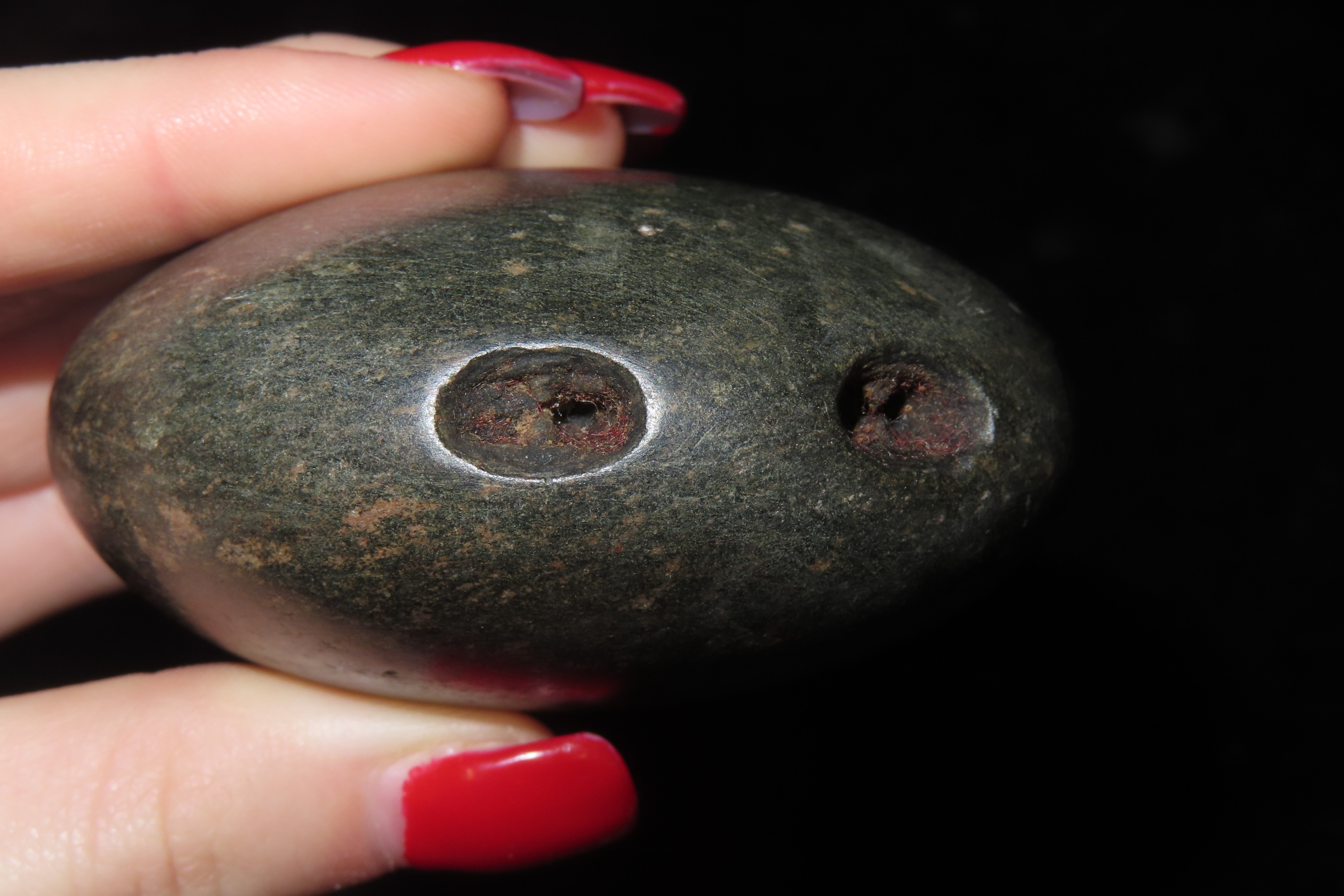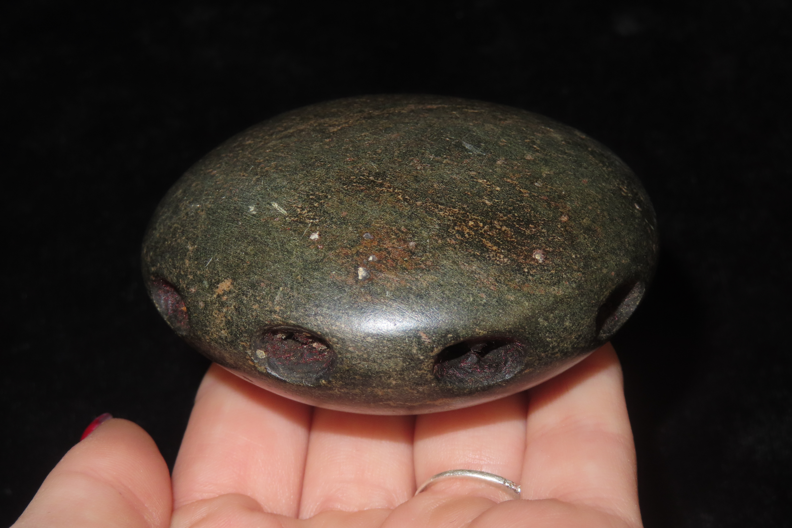 3″ Unique and Rare Artifact/Tool/Religious Talisman- Hardstone Discoidal with Shallow Perforations around Circumference, Exact Use Unknown, From Private Collection in Delaware