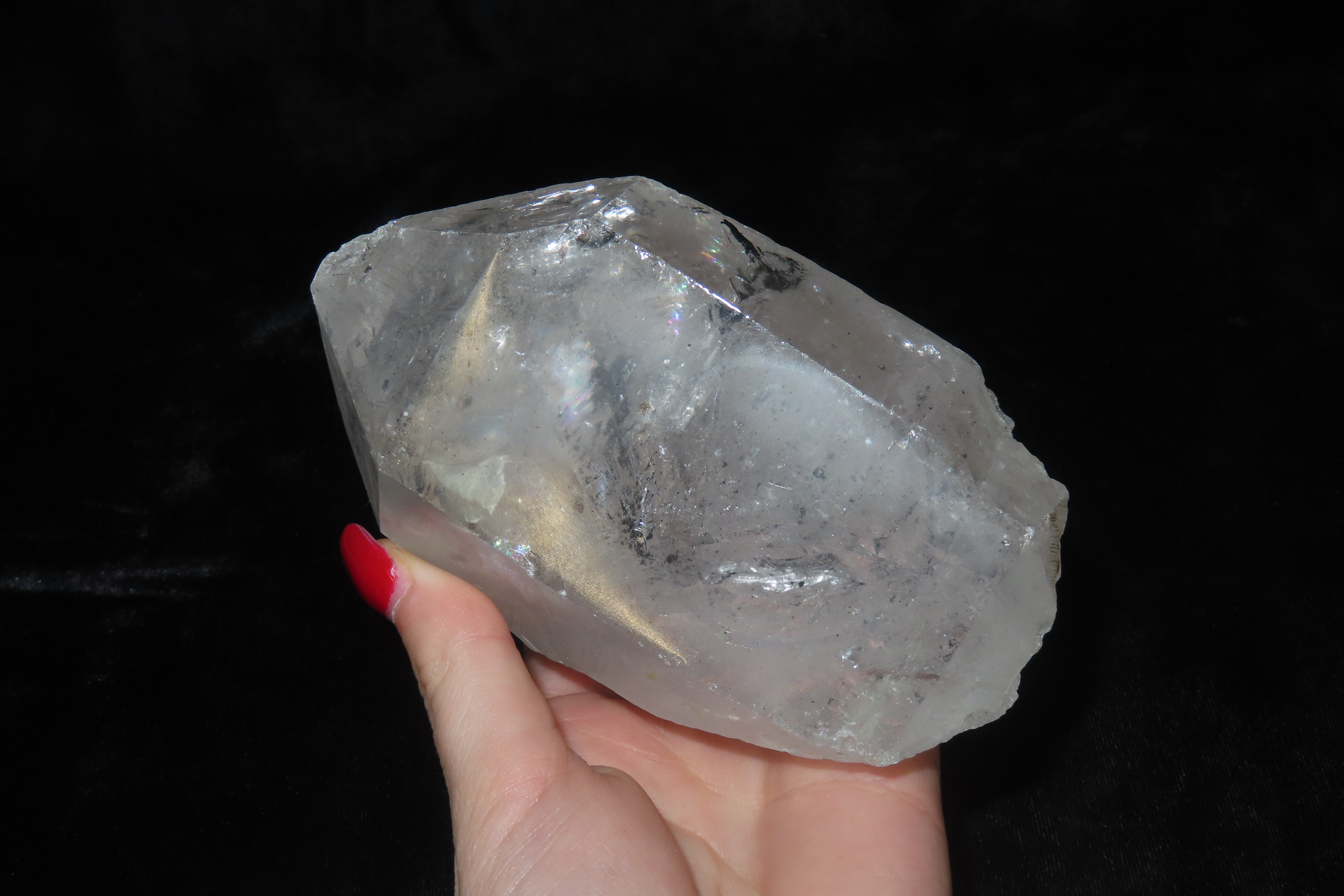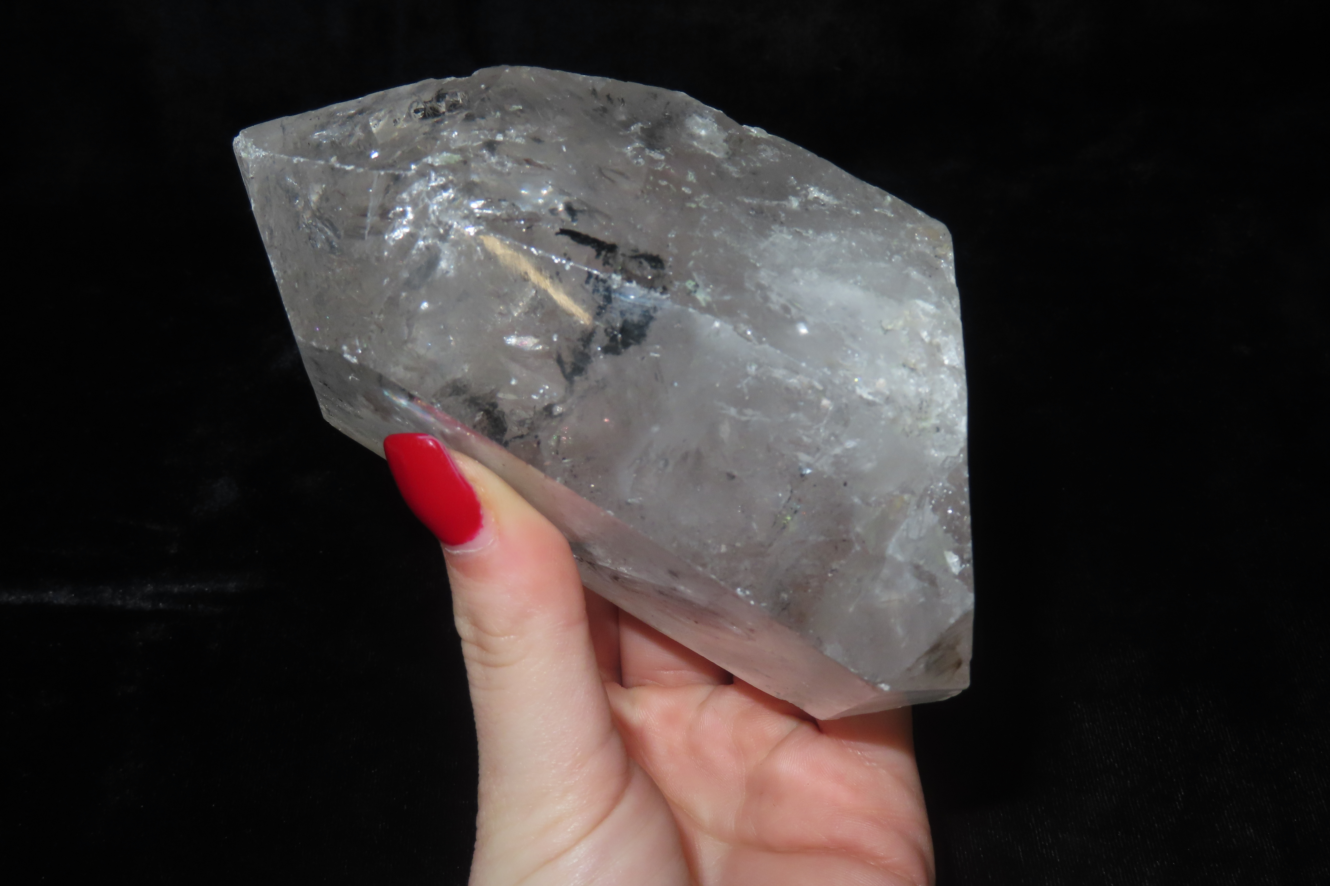 5″ Natural Faceted Quartz Crystal, black inclusions