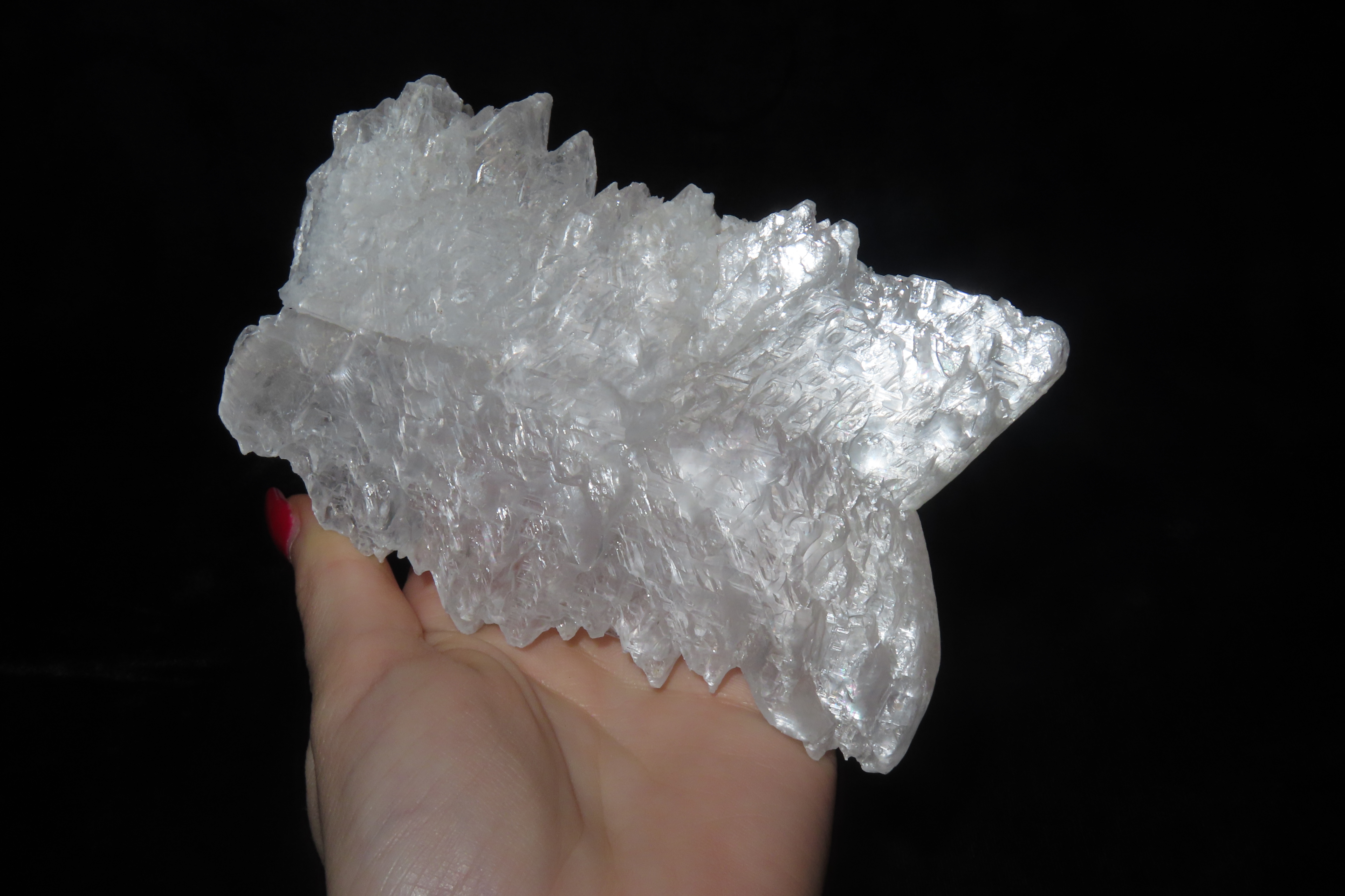 6 1/2″ Fishtail Selenite Specimen. It is also known as “angel wing selenite” or “swallow’s tail selenite” due to its layered, V-formation. Selenite is a type of gypsum crystal. It is known for its high vibration, clarity, and ability to cleanse and charge other crystals and spaces. The name “selenite” comes from the Greek goddess of the moon, Selene, because of its moon-like glow.