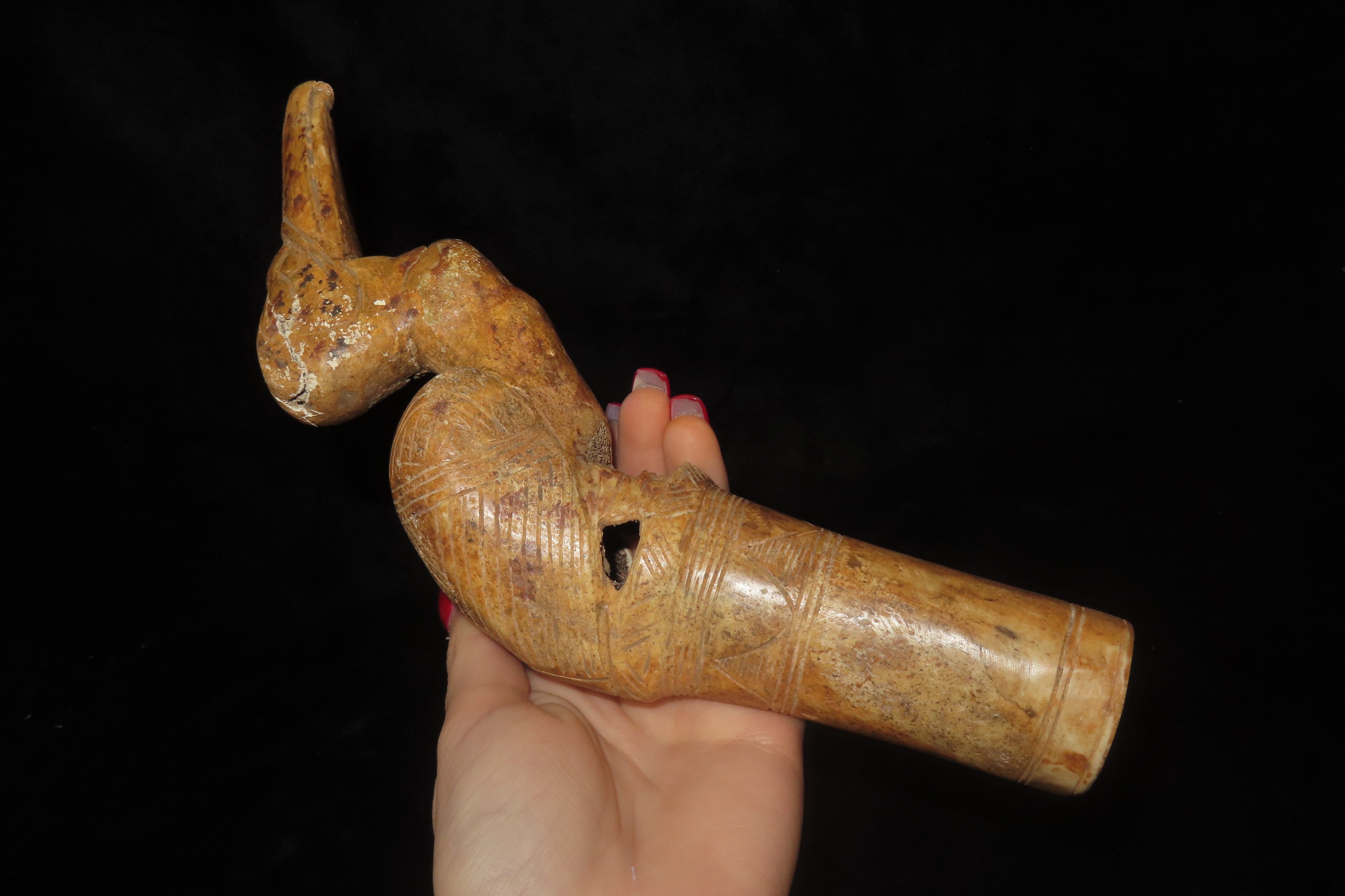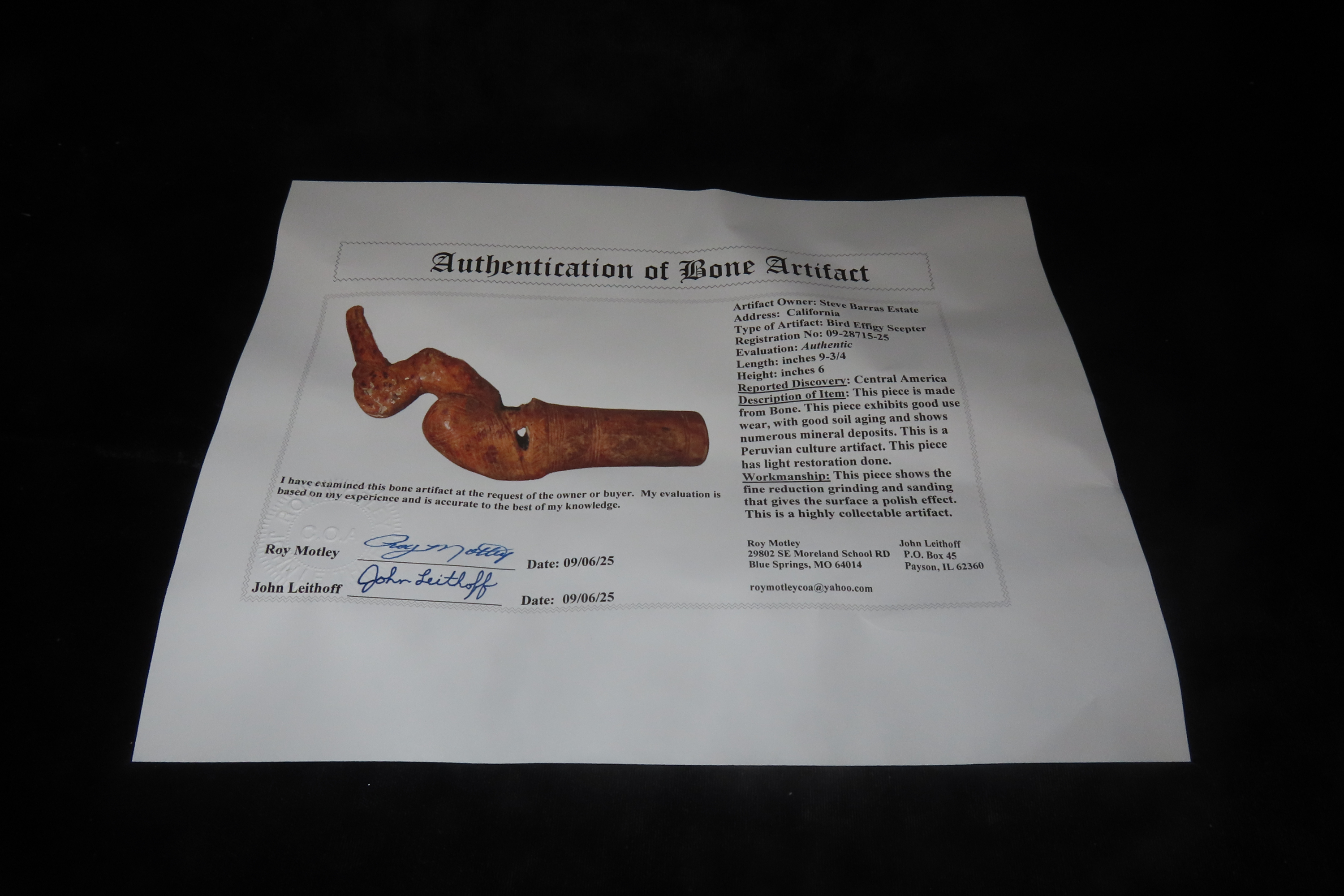9 3/4″ x 6″ Andean Condor Bird Effigy Scepter/Finial, Motley COA, Made of Bone, light restoration, Central America, Peruvian Culture, Ex Steve Barras Estate