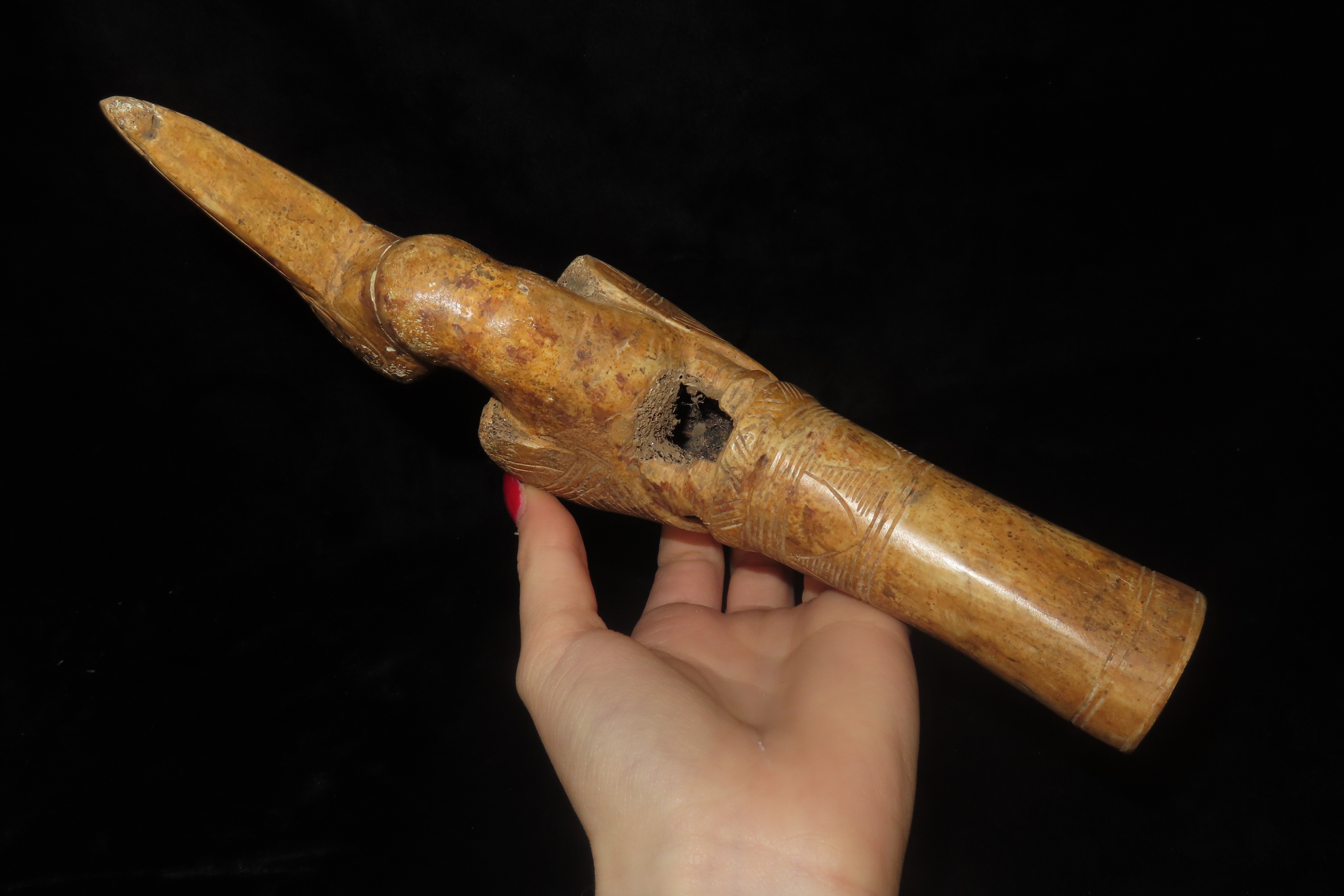 9 3/4" x 6" Andean Condor Bird Effigy Scepter/Finial, Motley COA, Made of Bone, light restoration, Central America, Peruvian Culture, Ex Steve Barras Estate