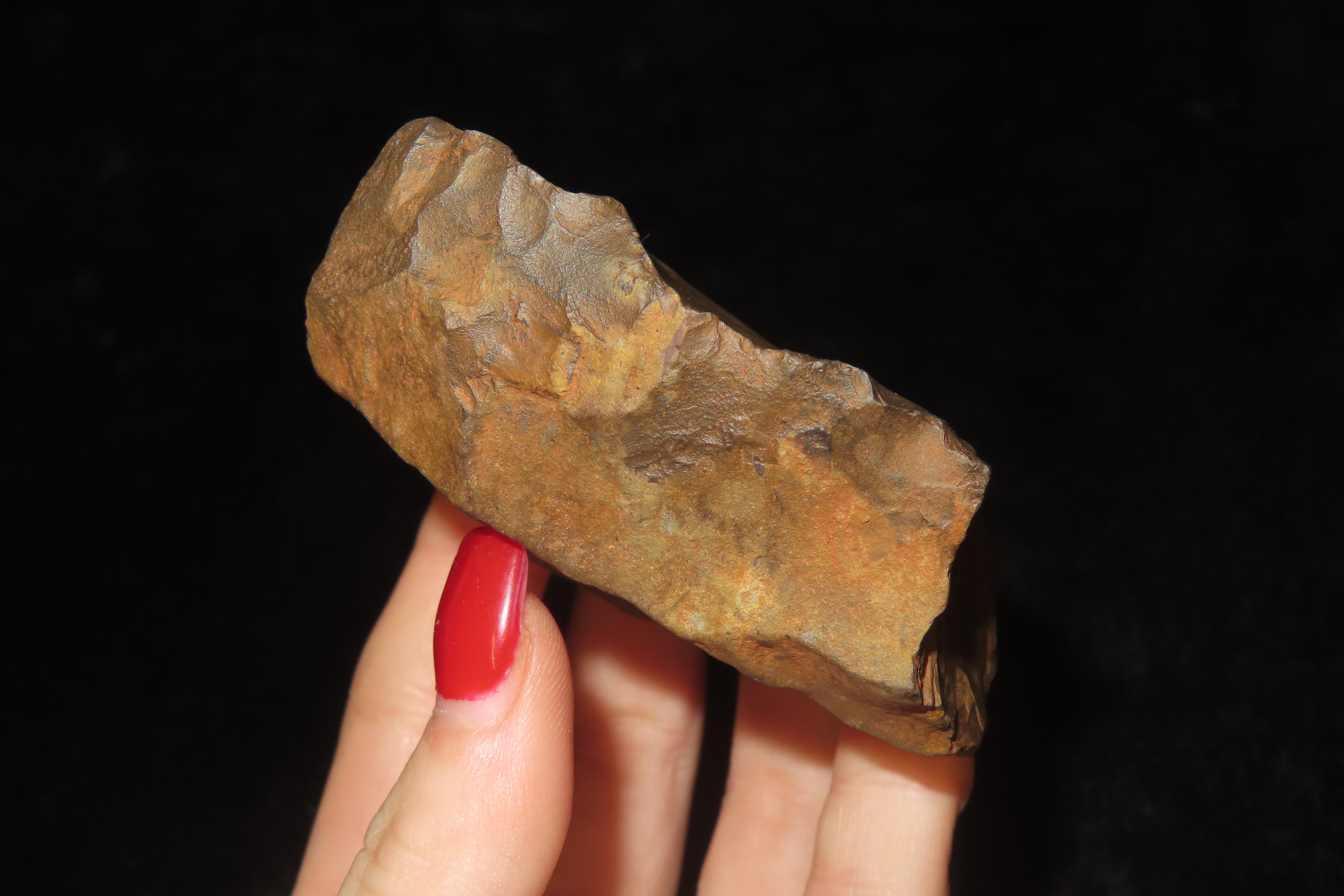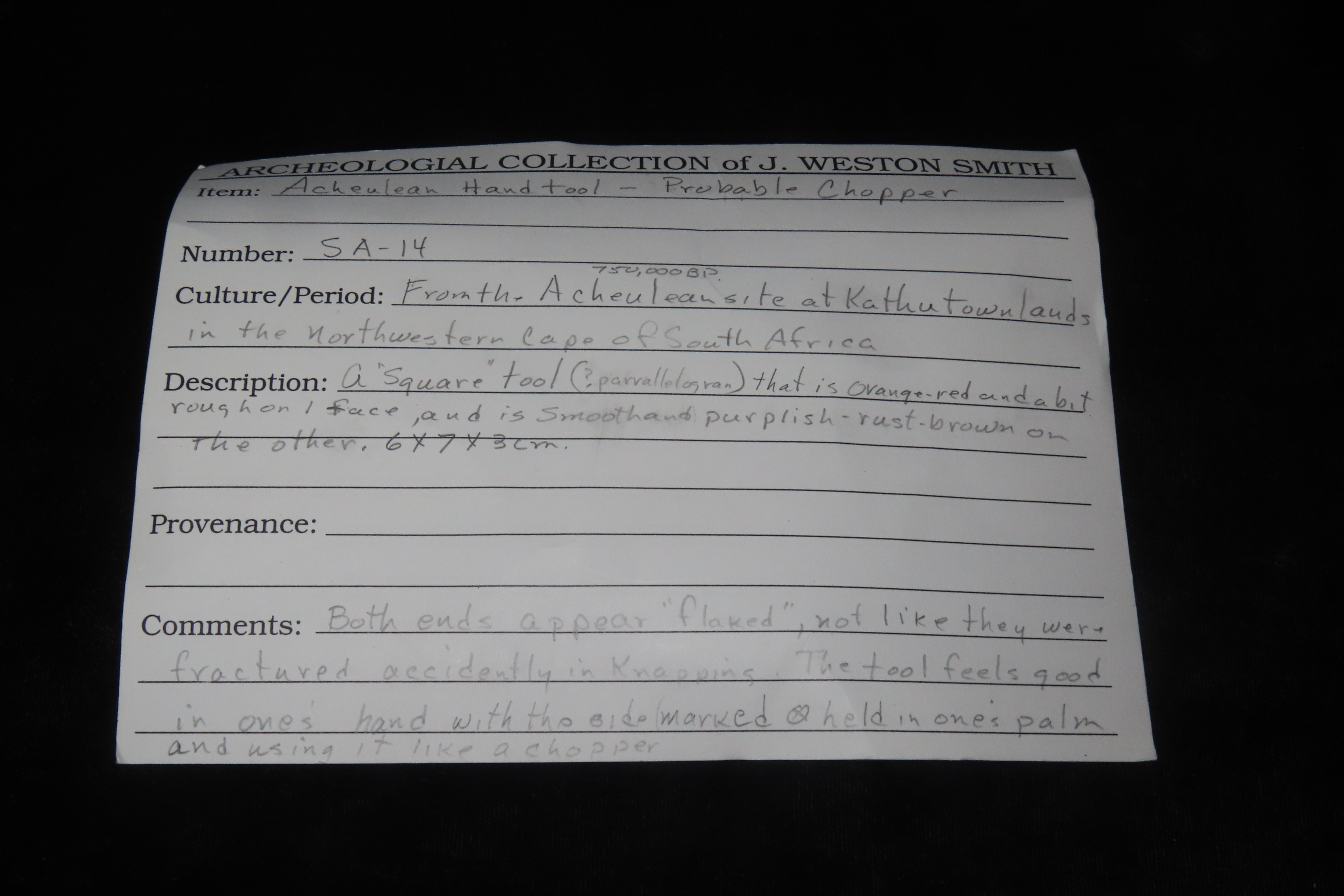 2 3/8″ x 2 3/4″ x 1 1/8″ Acheulean Hand Tool/Chopper, found at Kathu Townlands Site, Northern Cape Province, South Africa