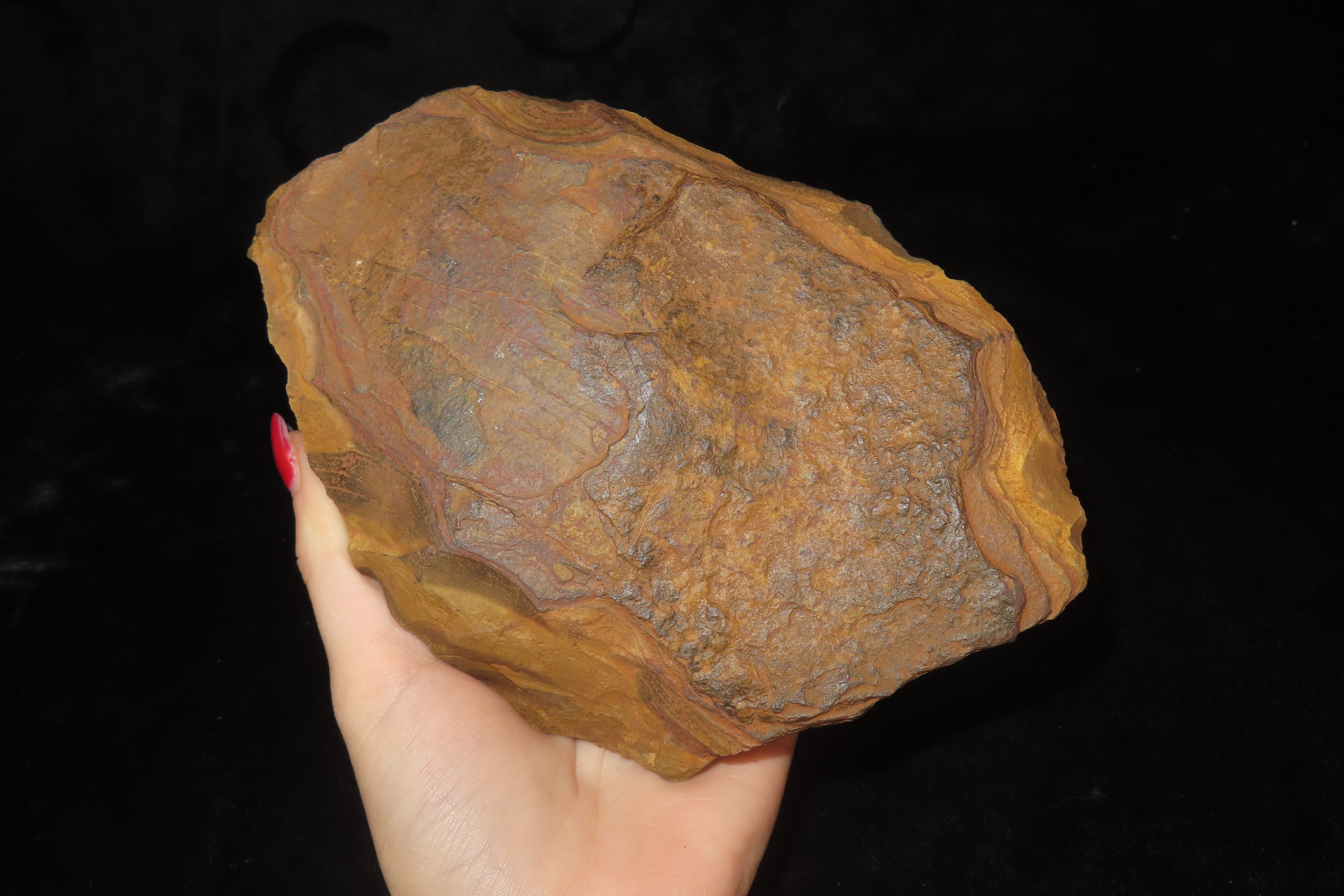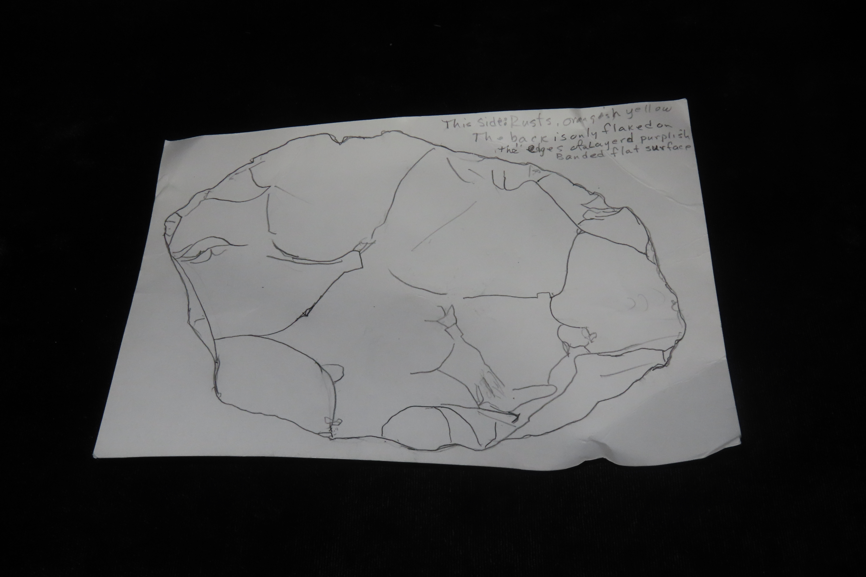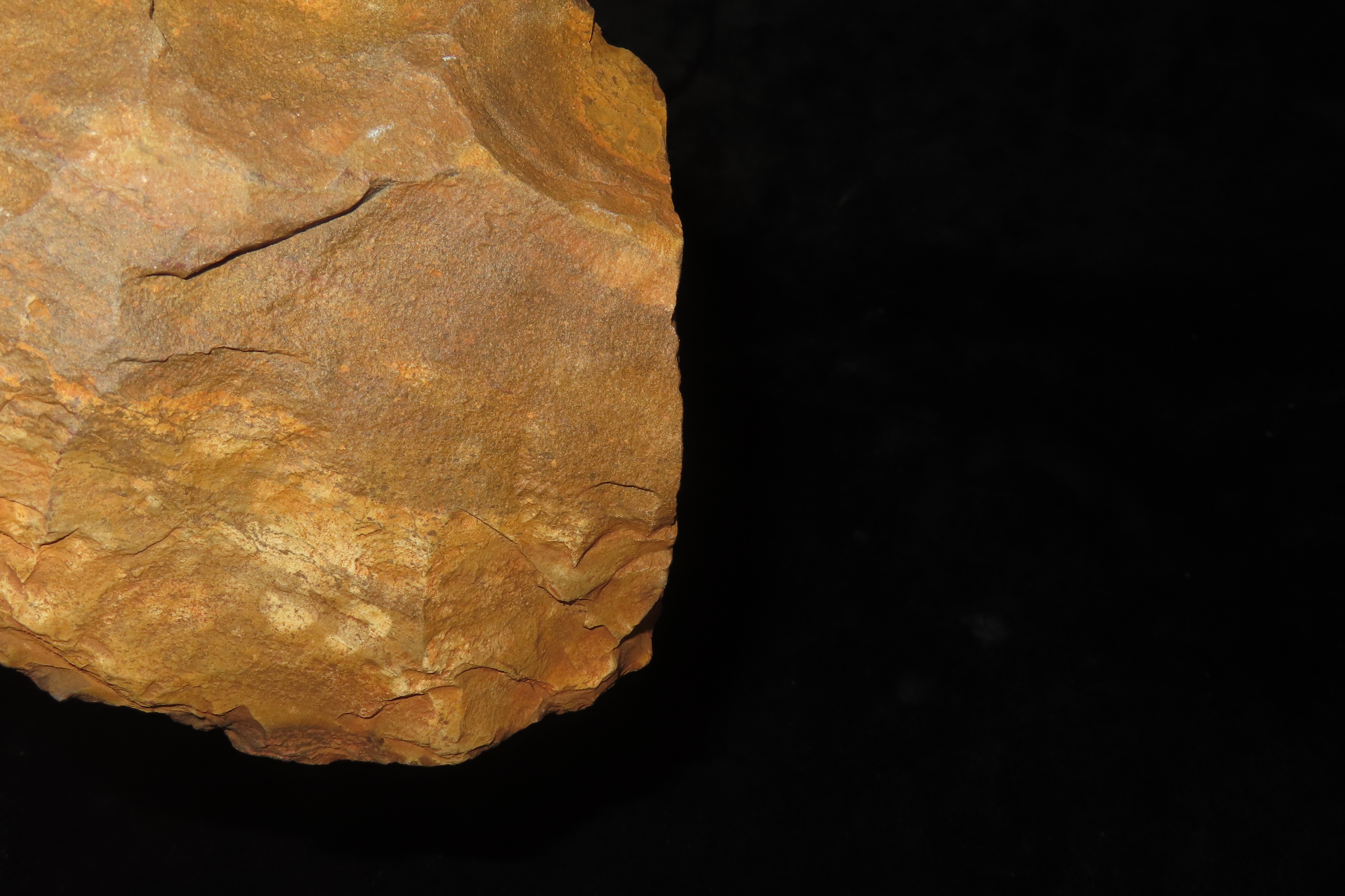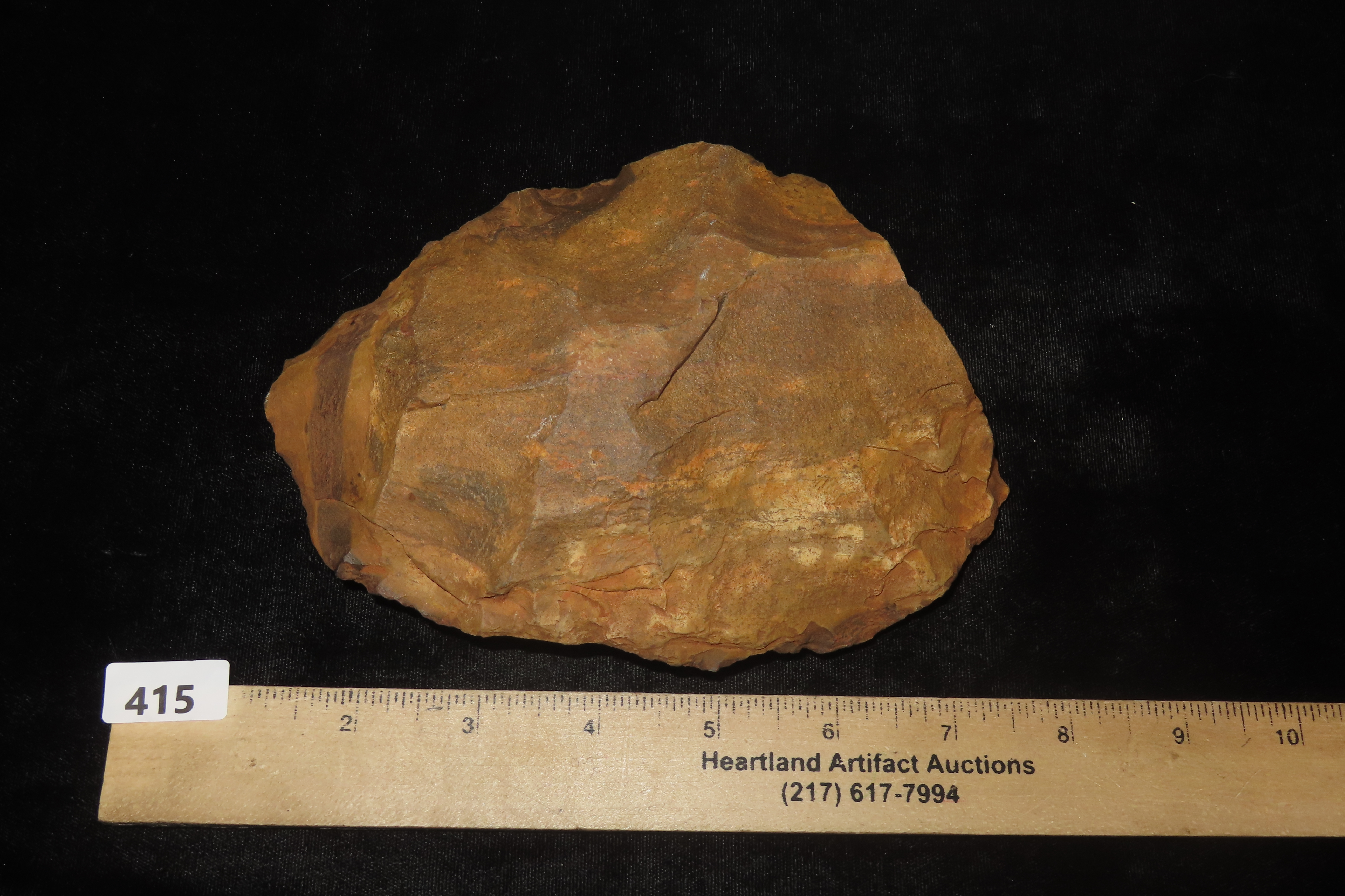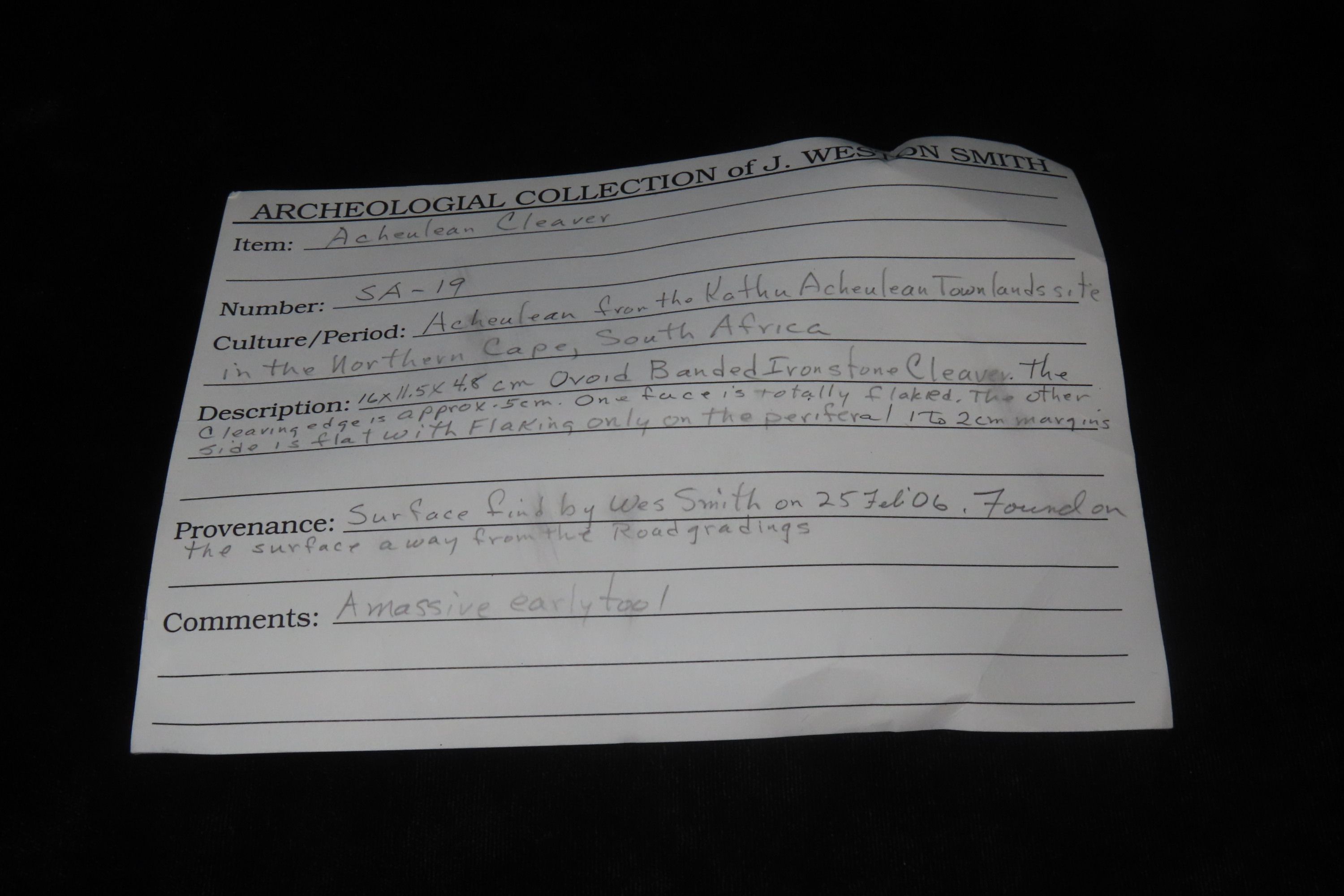 6 1/4″ x 4 1/2″ x 1 3/4″ Acheulean Cleaver, found at Kathu Townlands Site, Northern Cape Province, South Africa by Wes Smith 2/25/06.