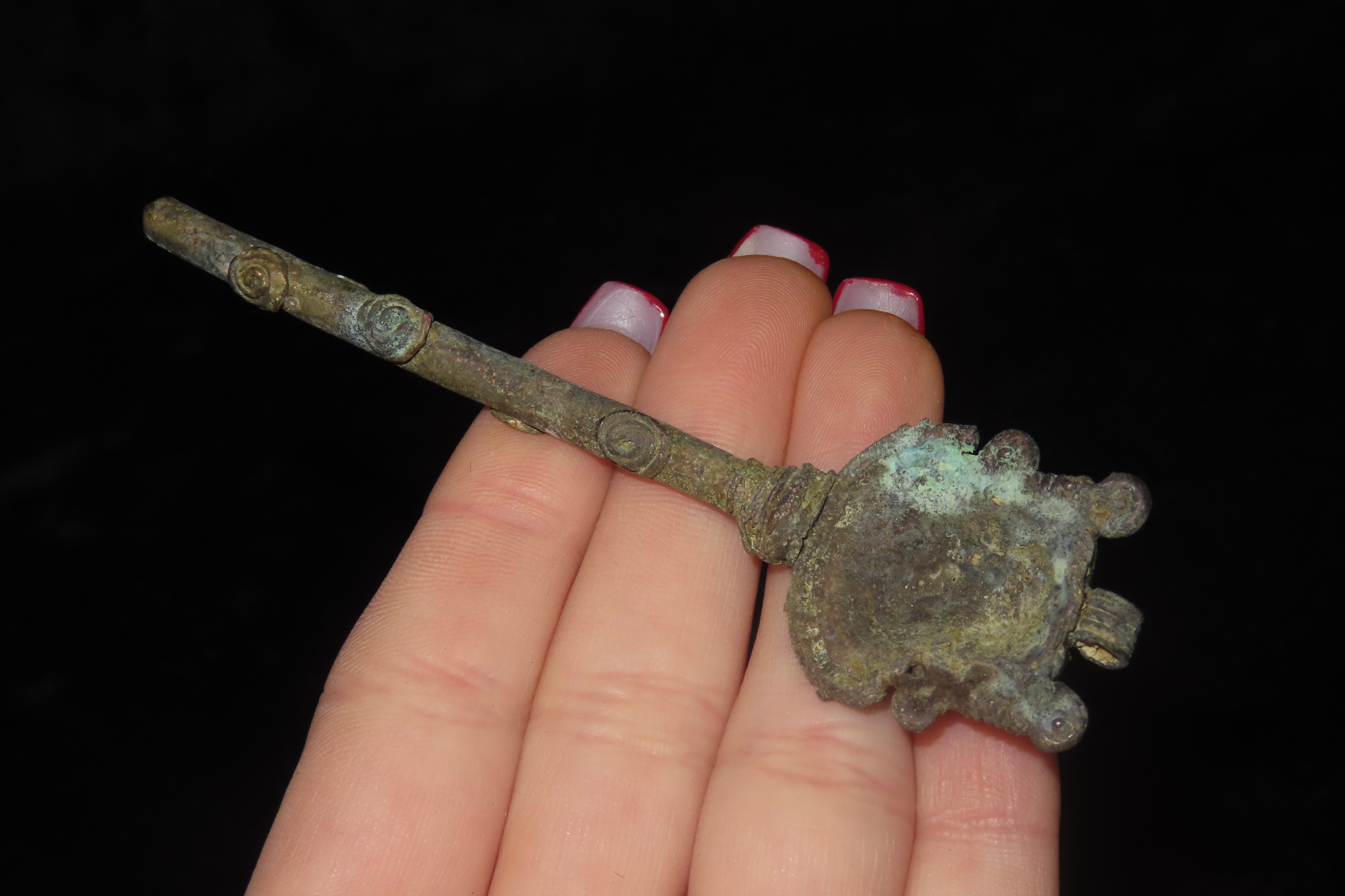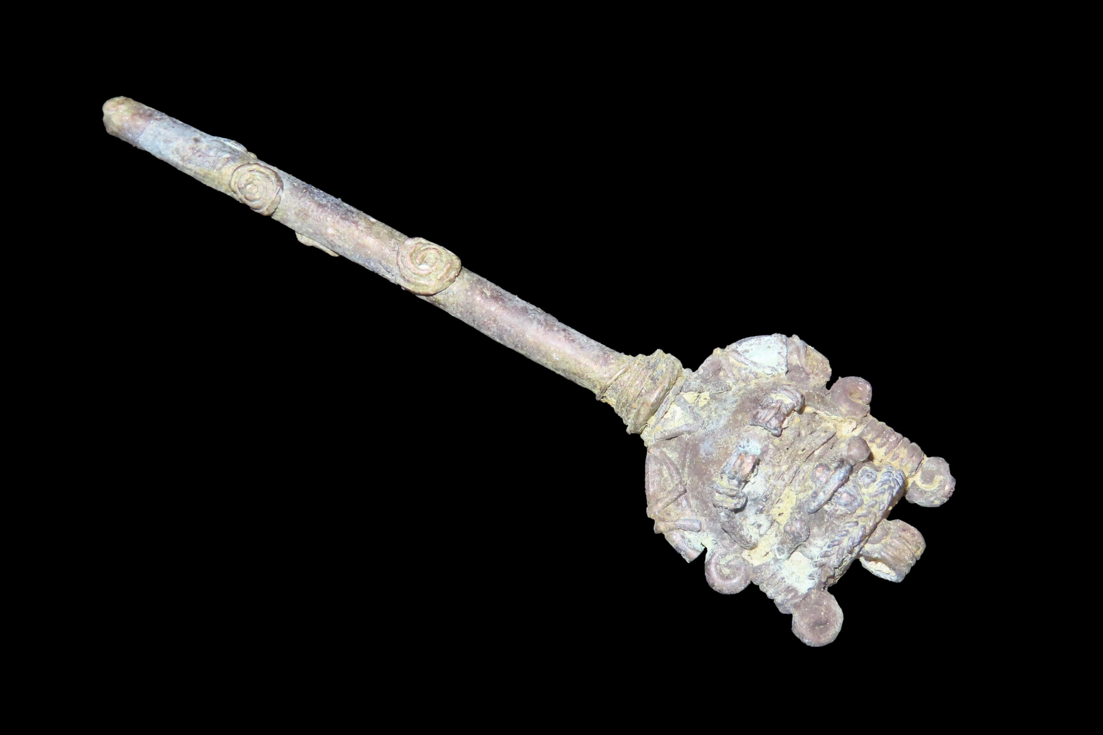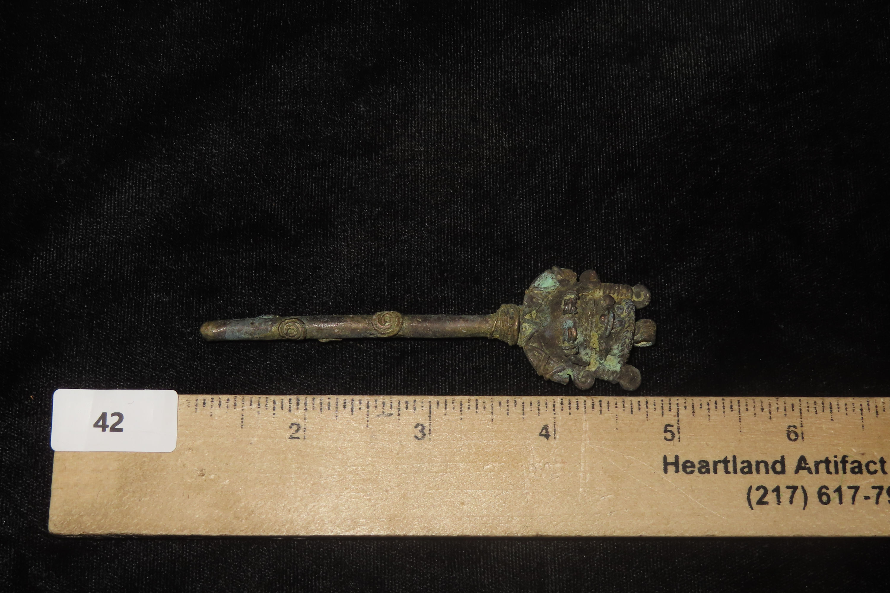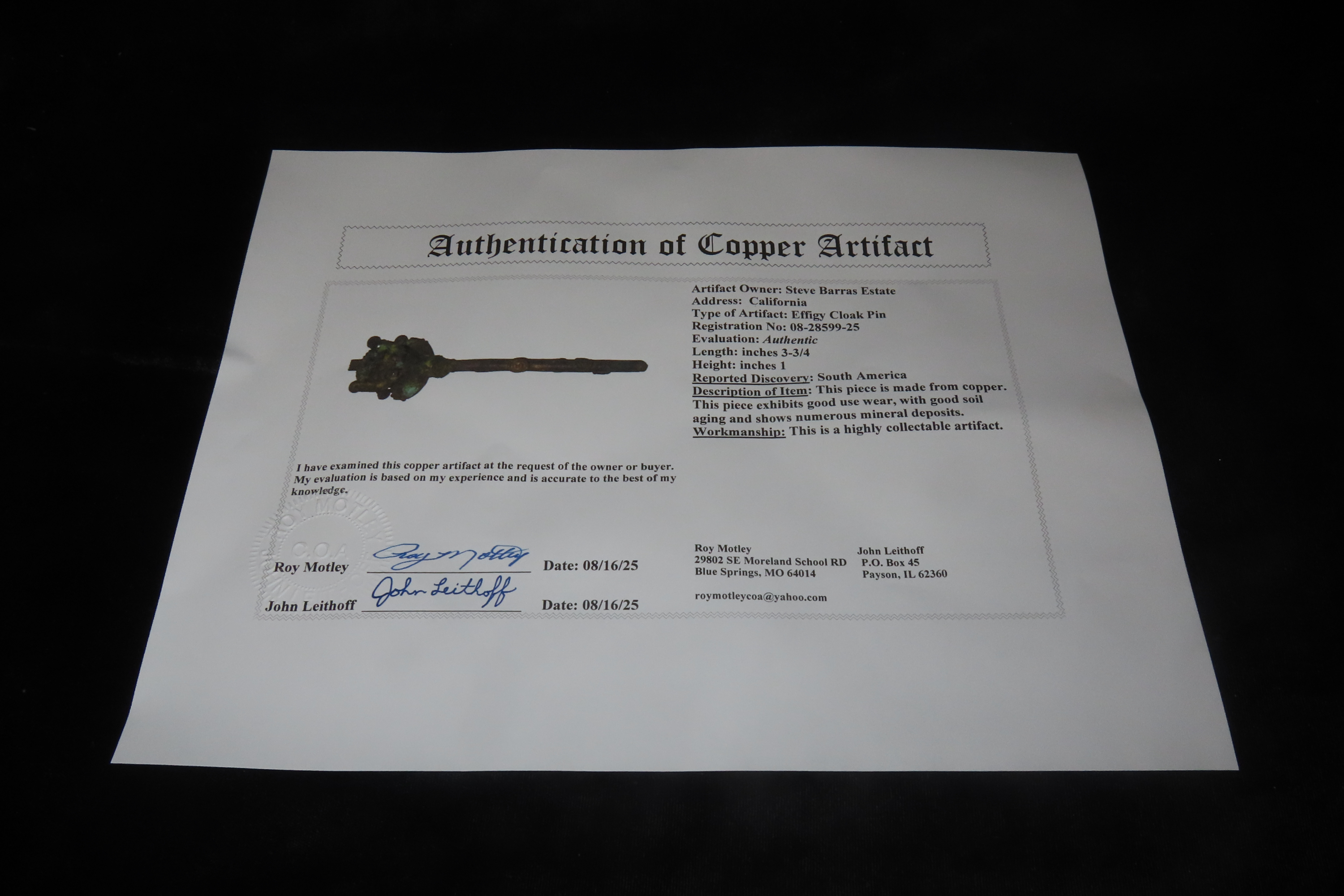 3 3/4″ x 1″ Copper Effigy Cloak Pin/Pendant, Motley COA, found in South America, Ex Steve Barras Estate