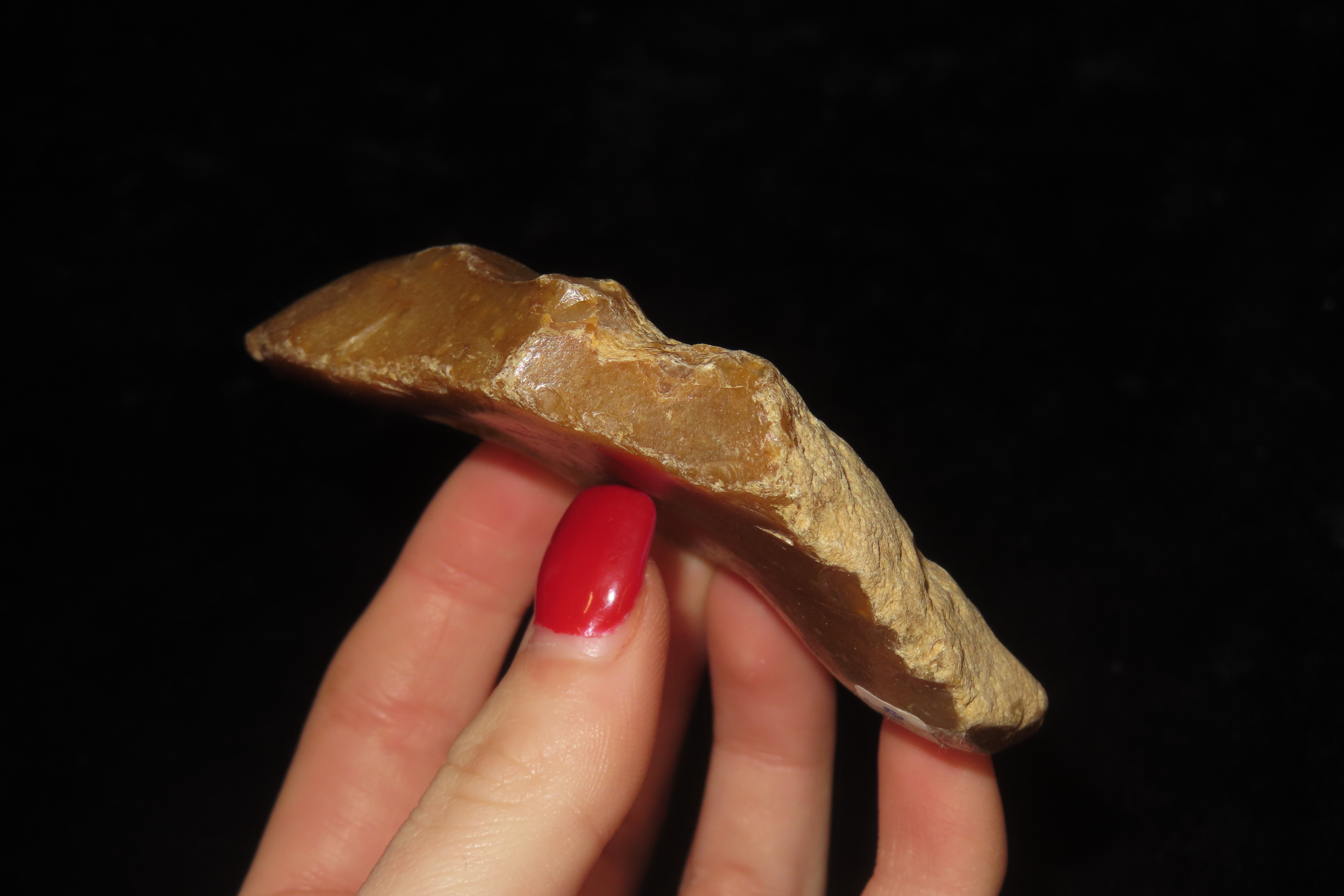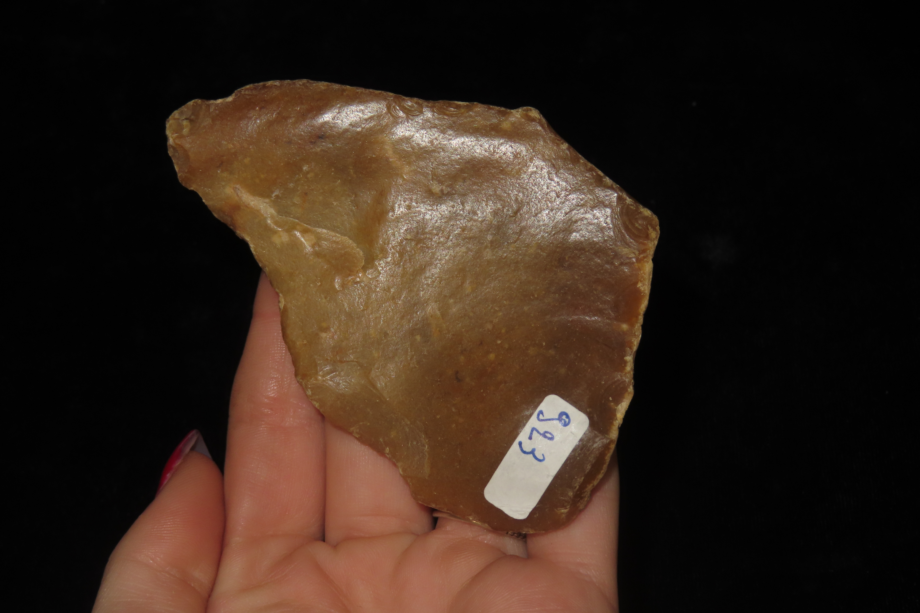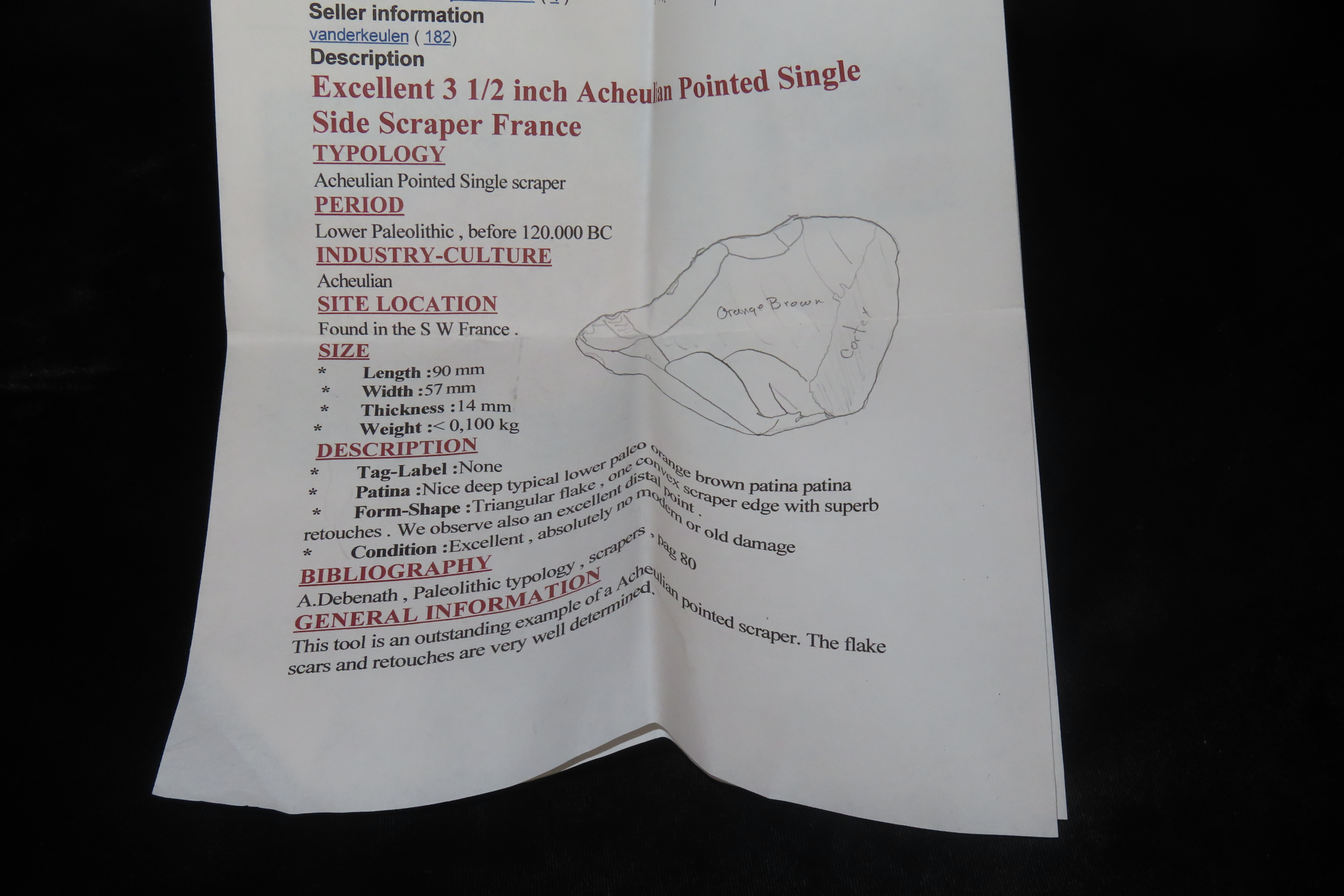 3 1/2″ Acheulian Pointed Single Side Scraper, Found in Southwest France, Ex Jerry Sherman, Ex Duncan Caldwell