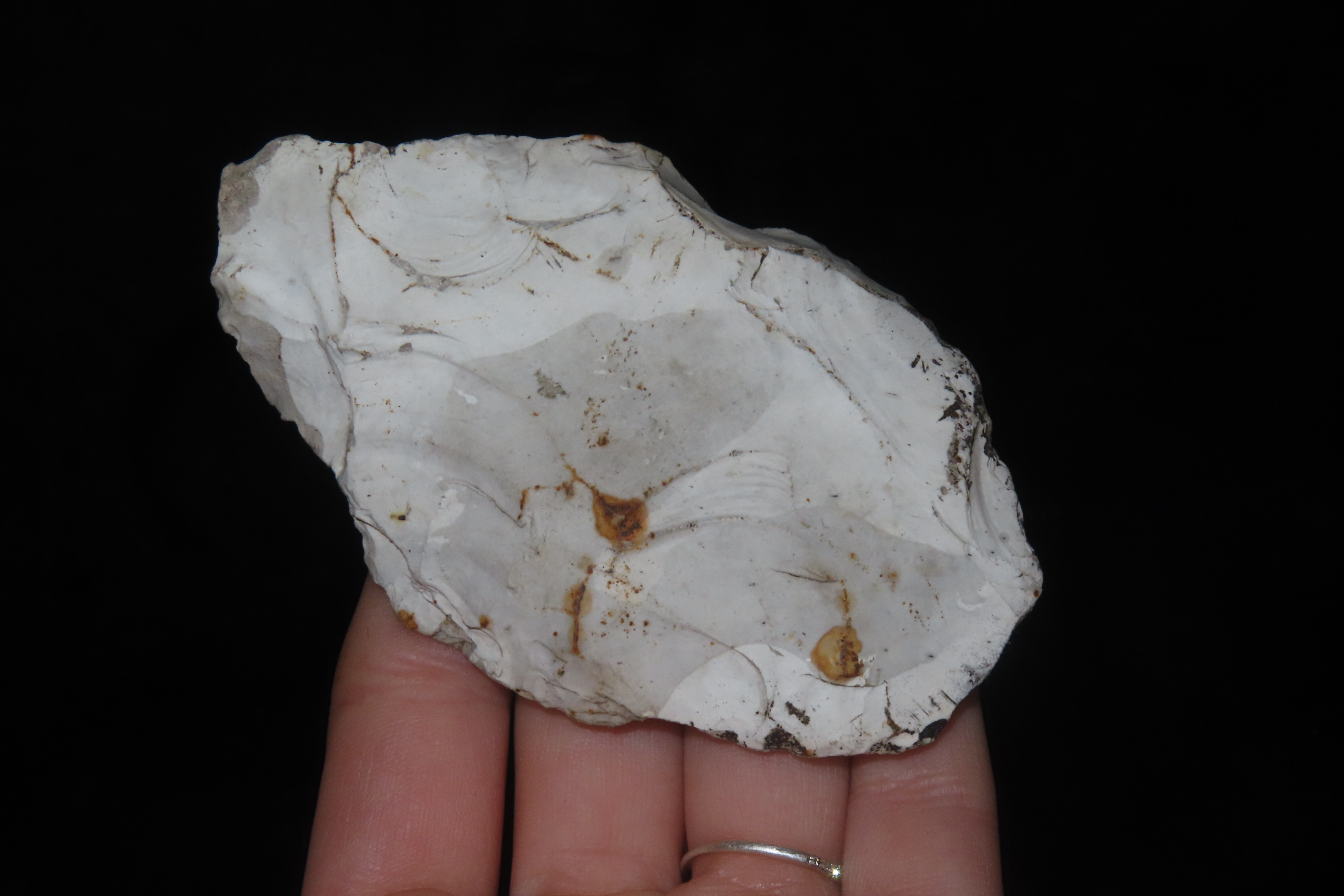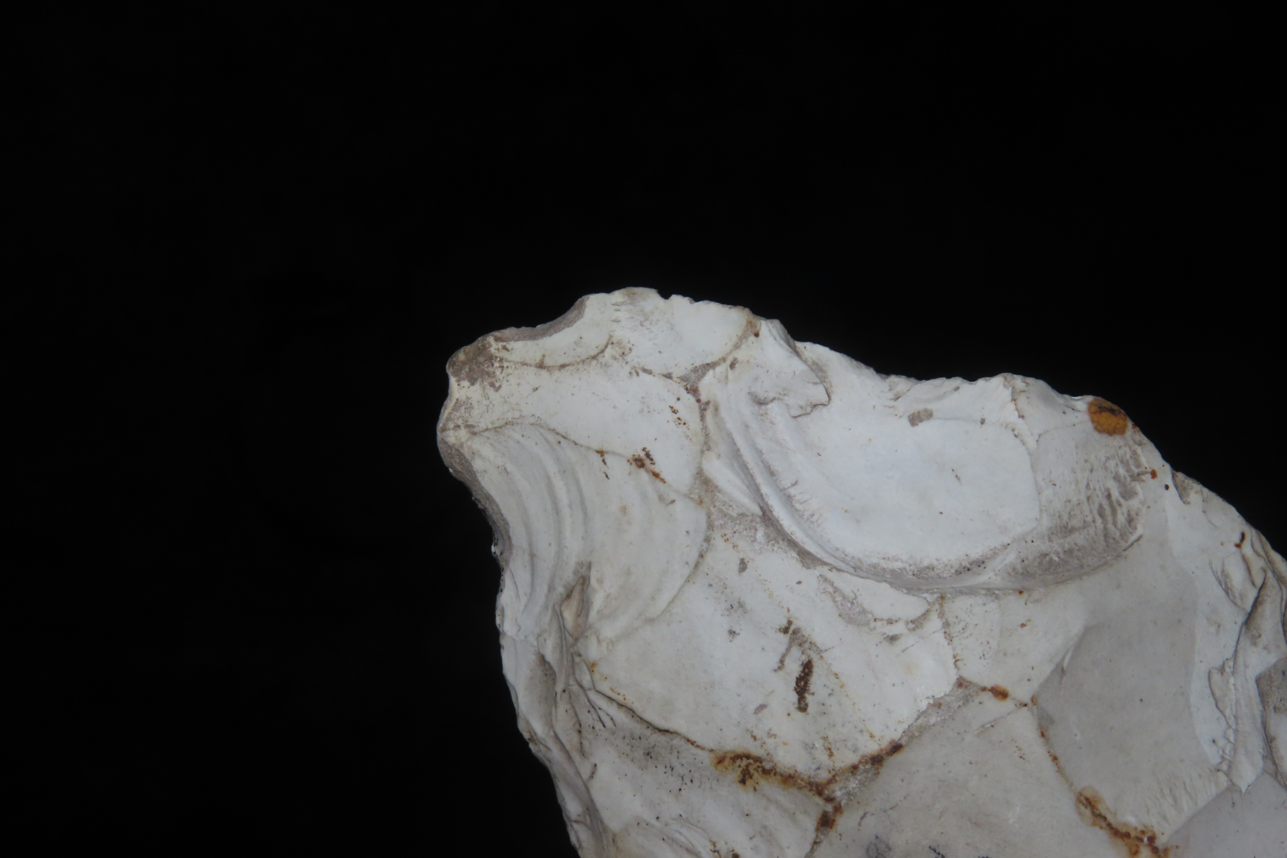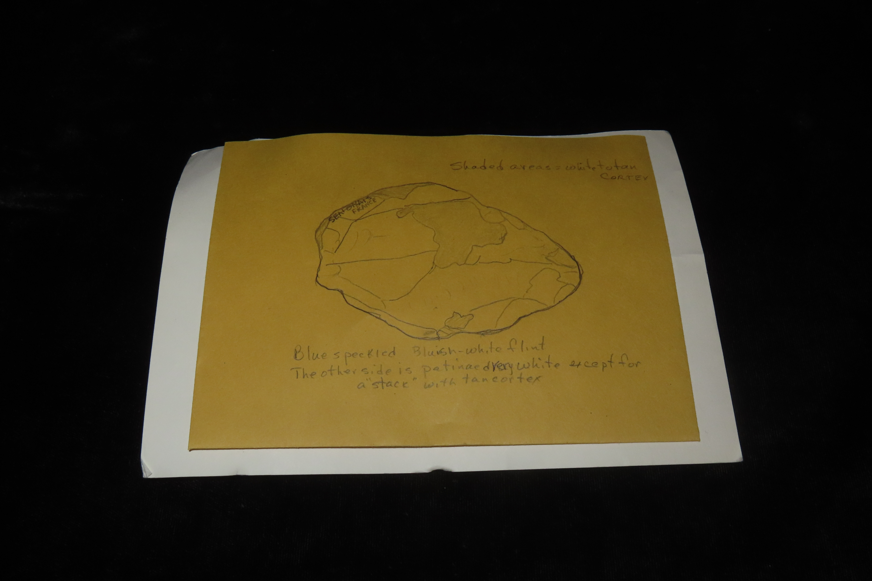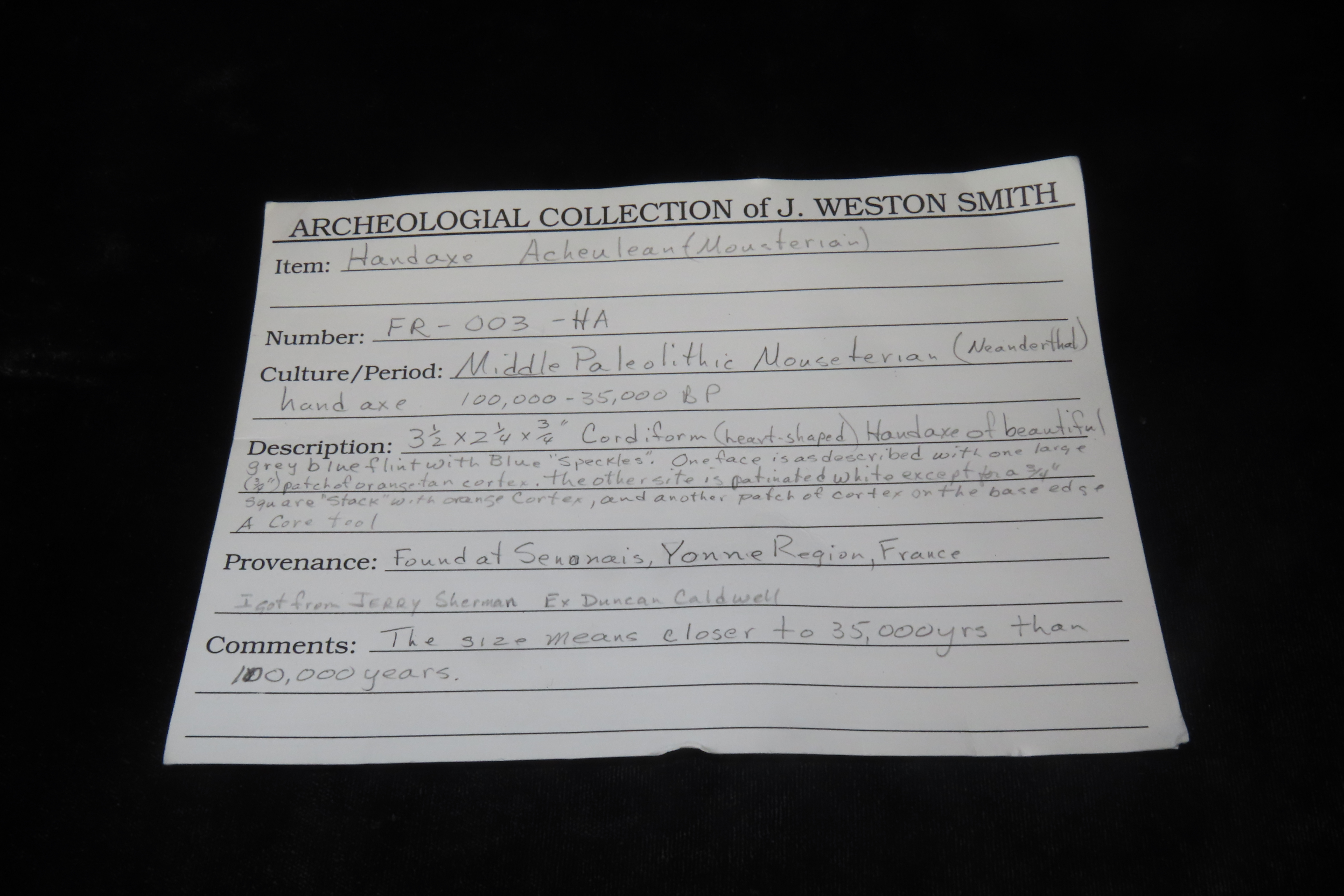 3 1/2″ x 2 1/4″ Acheulean (Mousterian) Handaxe, Found at Sénonais, Yonne Region, France, Ex Duncan Caldwell, Jerry Sherman