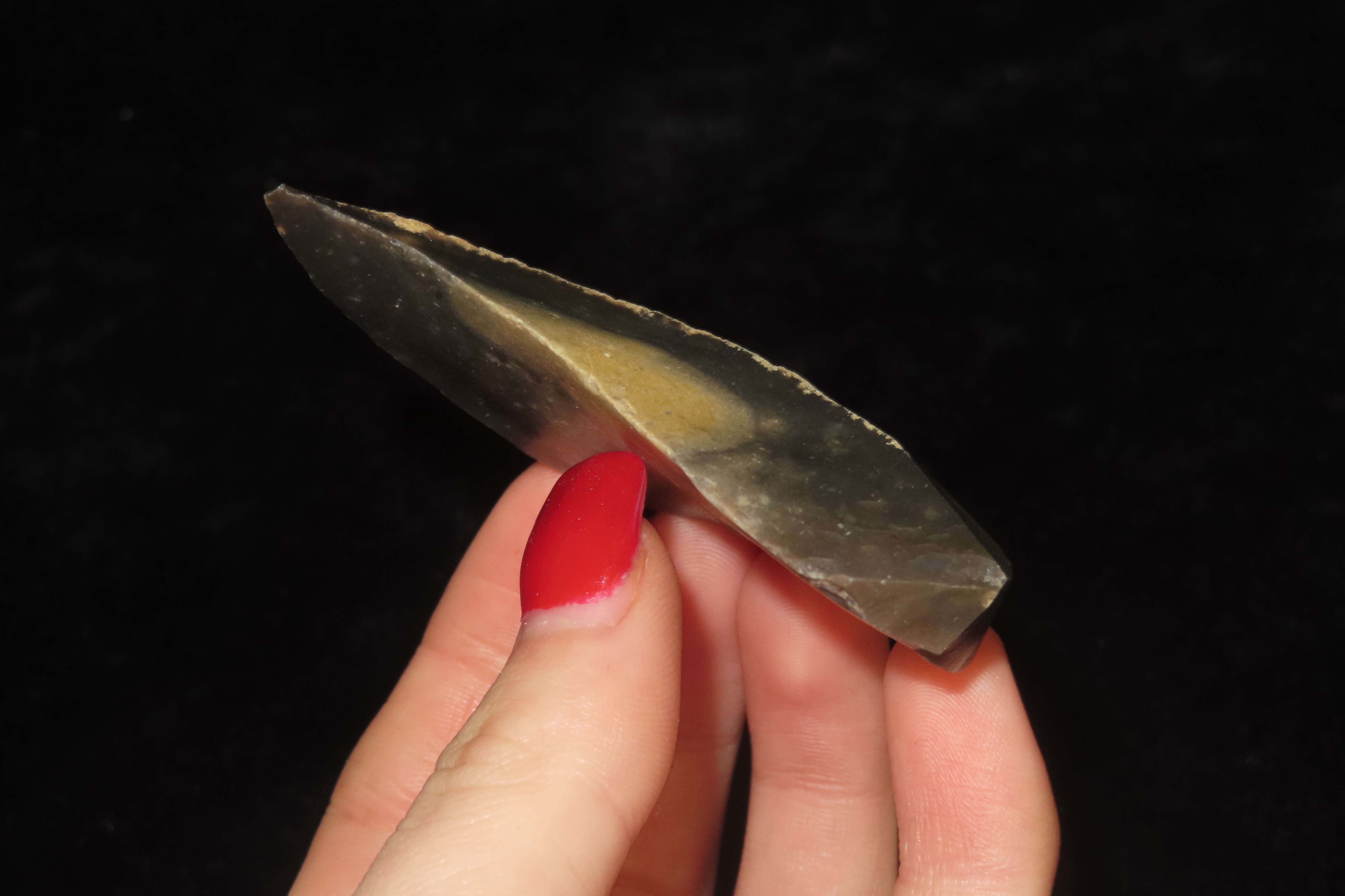 2 5/8″ X 1 9/16″ Mousterian “Backed” Knife/Side Scraper, Found in France, Ex Jan Vanderkeulan