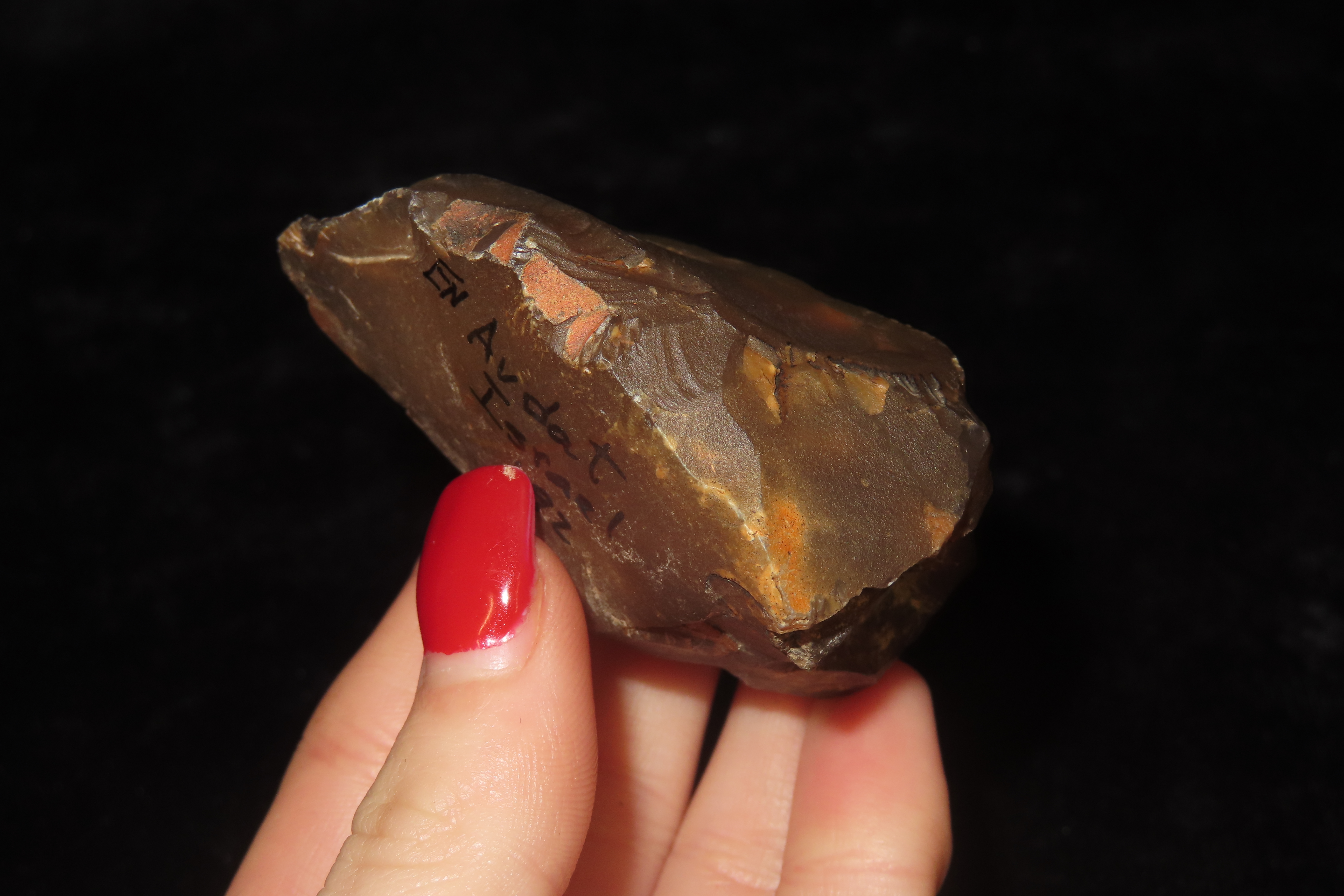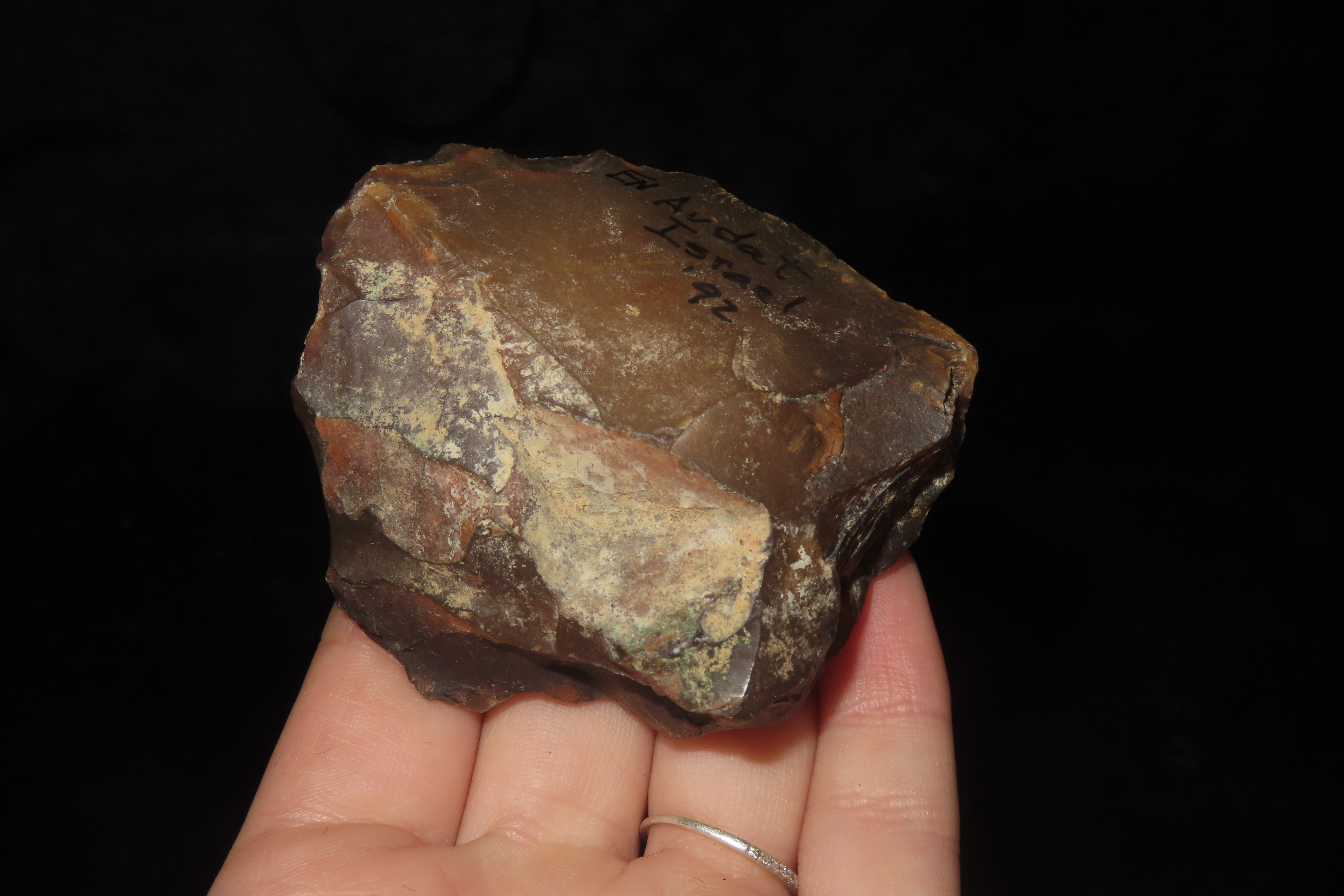 2 3/8″ X 2 1/4″ Neolithic Hand Tool, found by Wes Smith March 1992 at Quarry Site, En Avdat in the Judean Desert