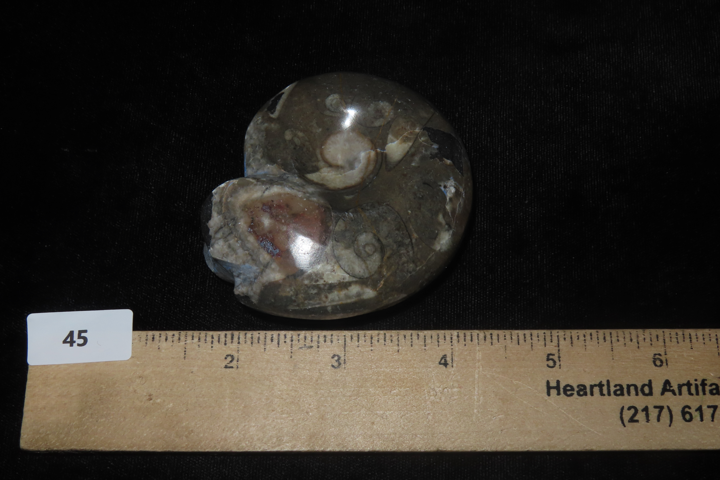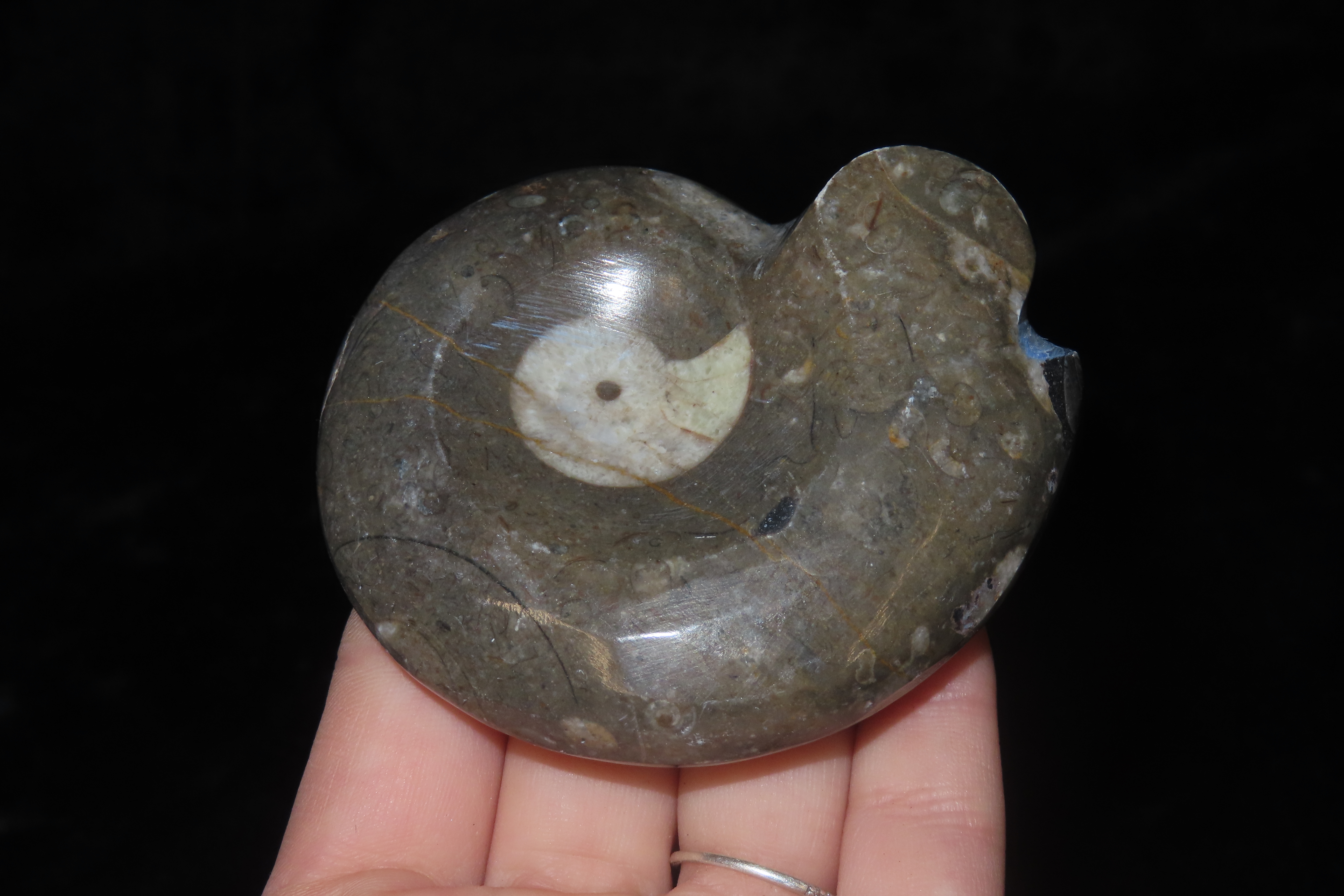 2 5/8″ Highly Polished Fossil Ammonite, Paleozoic to Mesozoic Era-Stunning Specimen with Inclusions and Opalized Interior