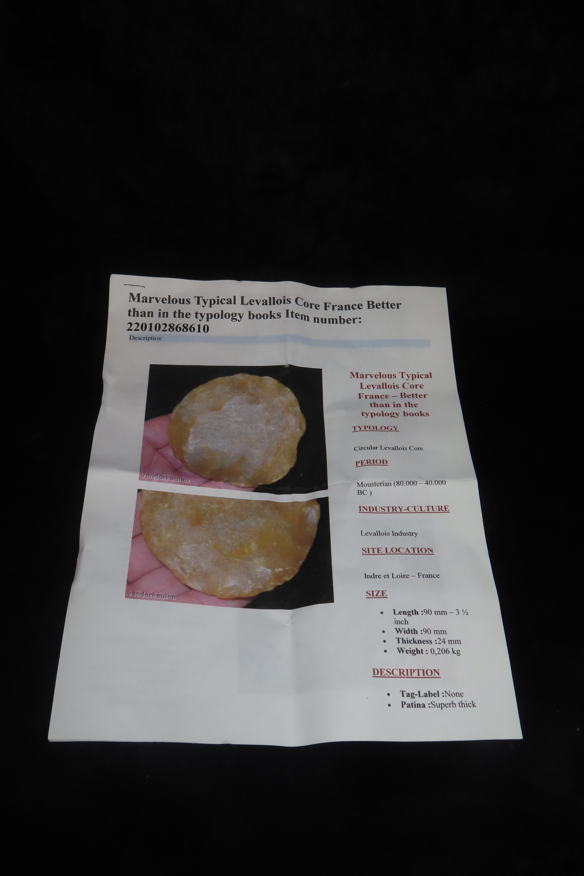 3 1/2″ X 3 1/2″ X 15/16″ Levallois Core, Found in Indre Et Loire, France