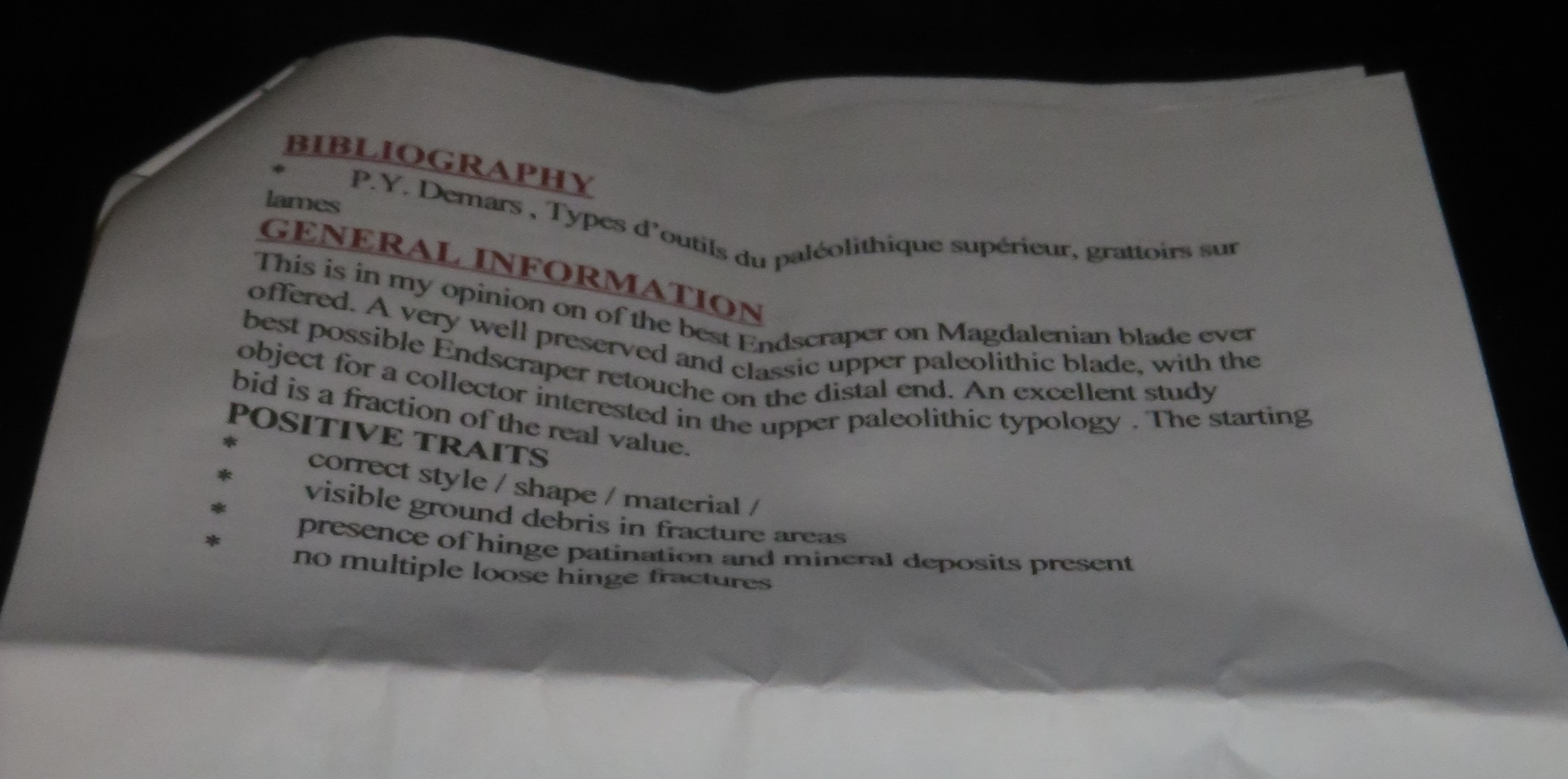 3 1/2″ X 3/4″ X 1/4″ Magdalenian Scraper/Blade, Found in Bergerac, France
