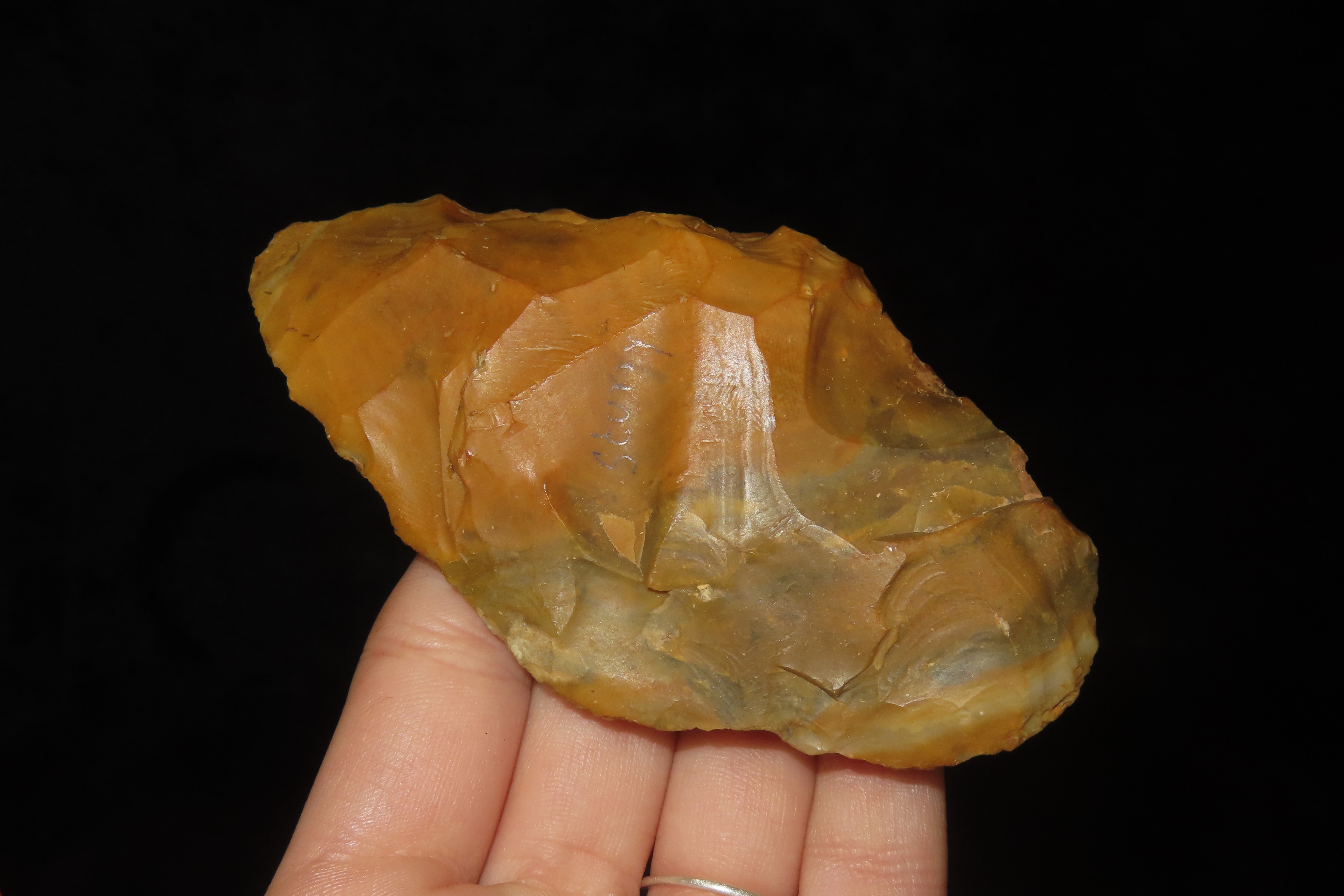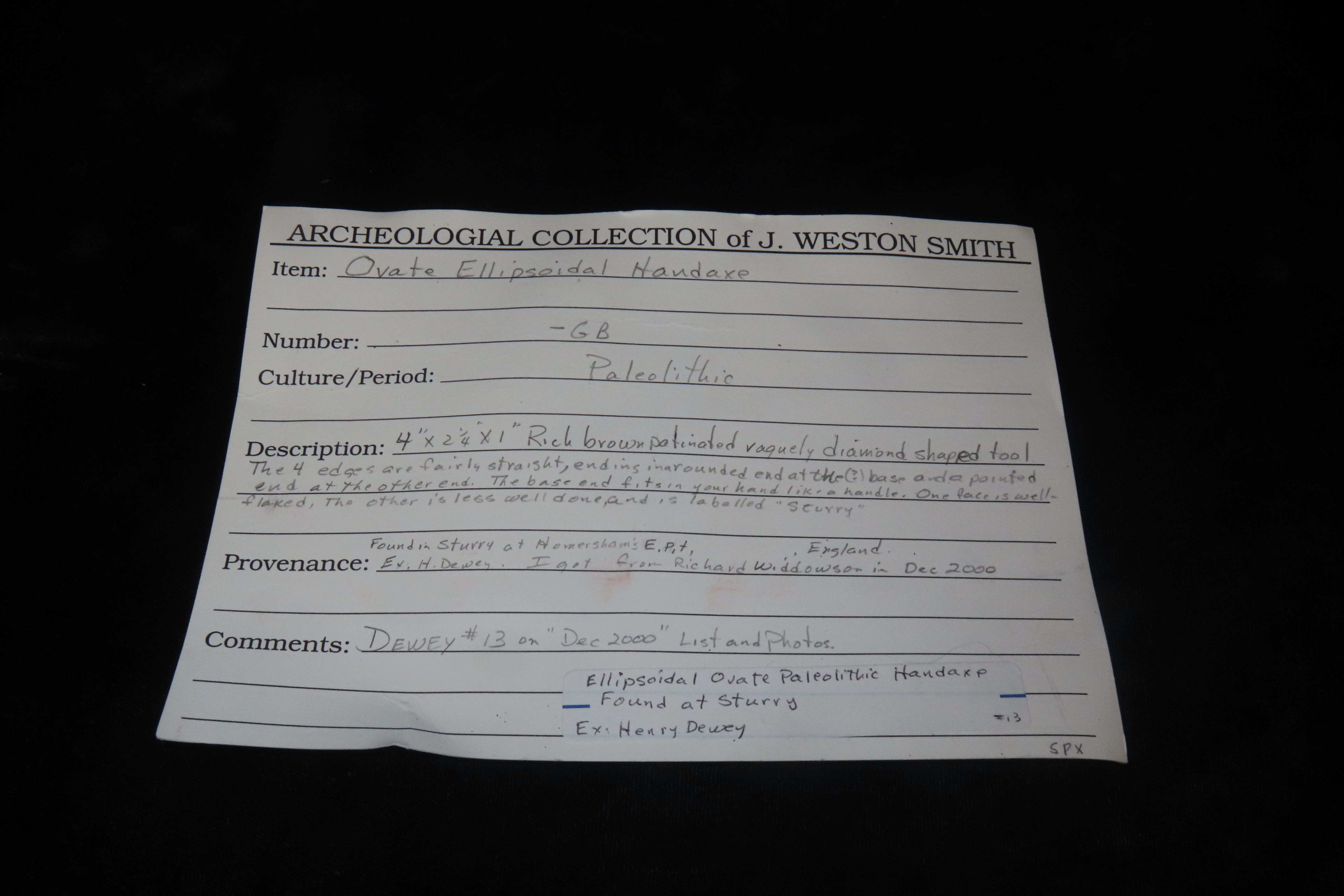 4″ X 2 1/4″ X 1″ Paleolithic Ovate Ellipsoidal Handaxe, Found in England, Ex Henry Dewey Collection