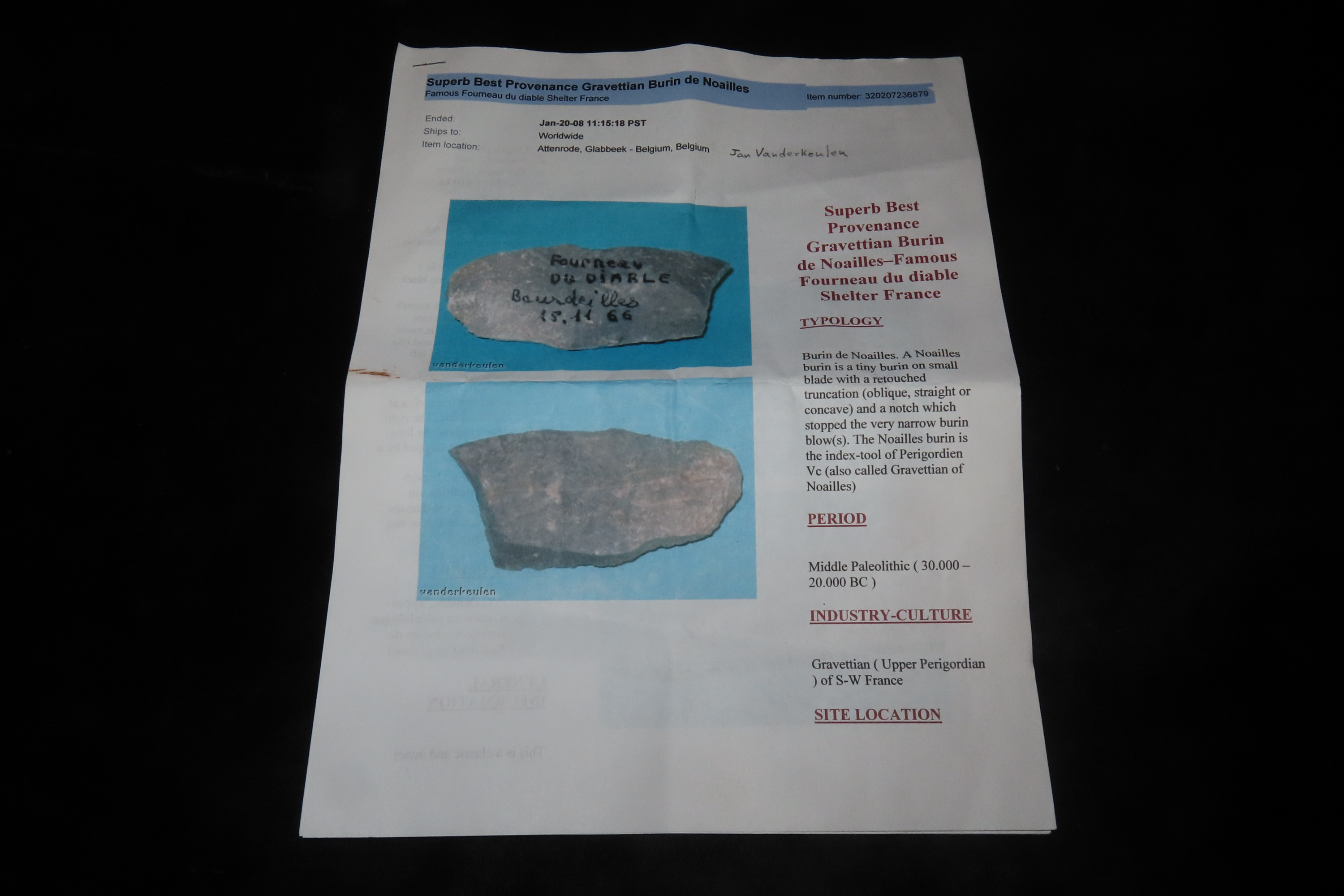 1 15/16″ X 13/16″ X 3/8″ Gravettian Burin De Noailles, Found in the Famous Fourneau Du Diable Shelter, Southwest France