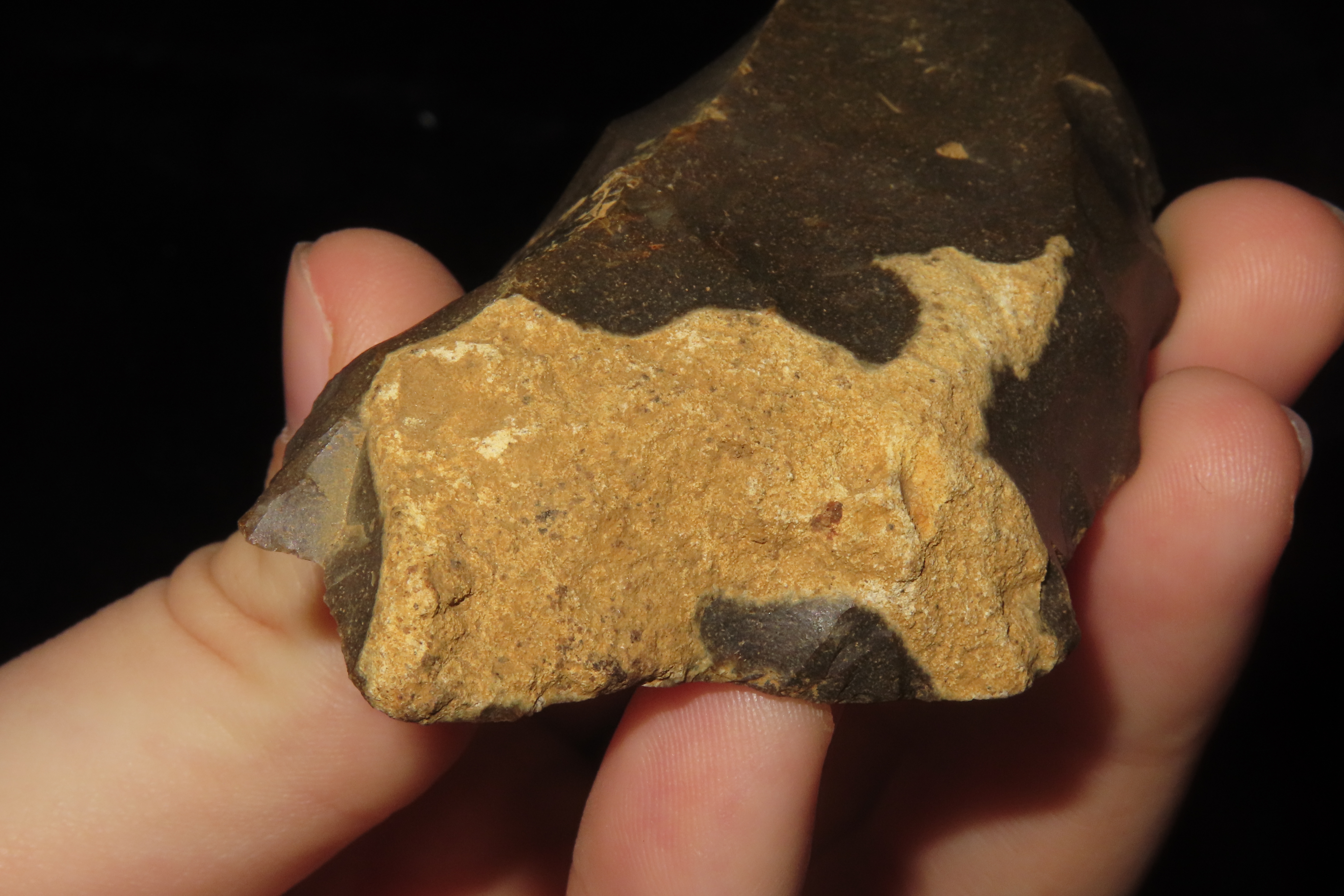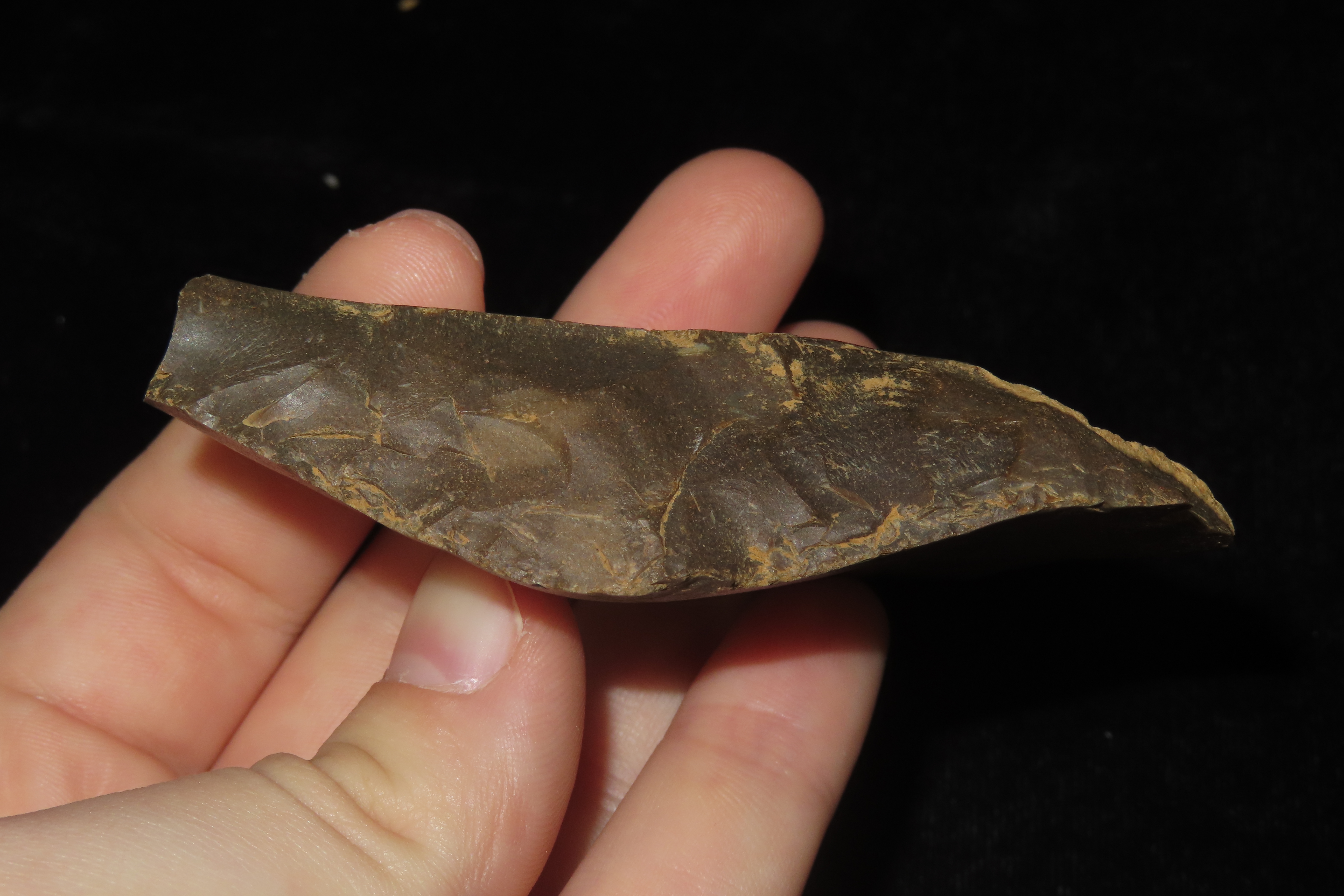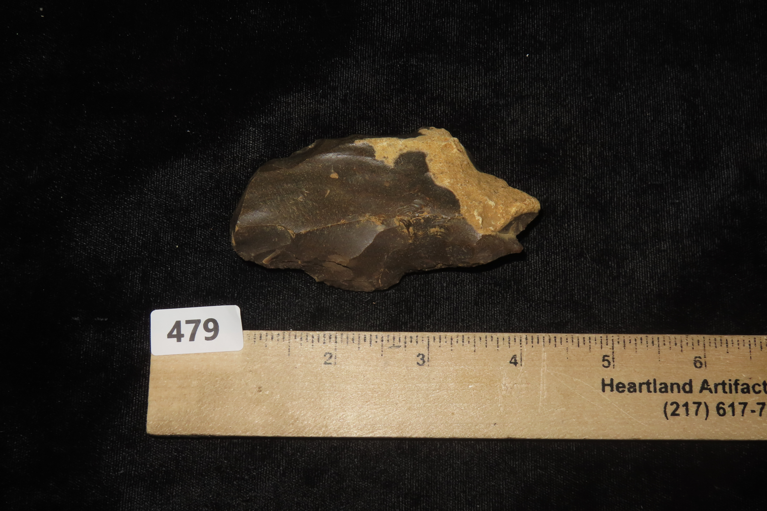 3 7/16″ X 2 1/8″ Mousterian Double Sidescraper, Found in Dordogne Region, Normandy, France