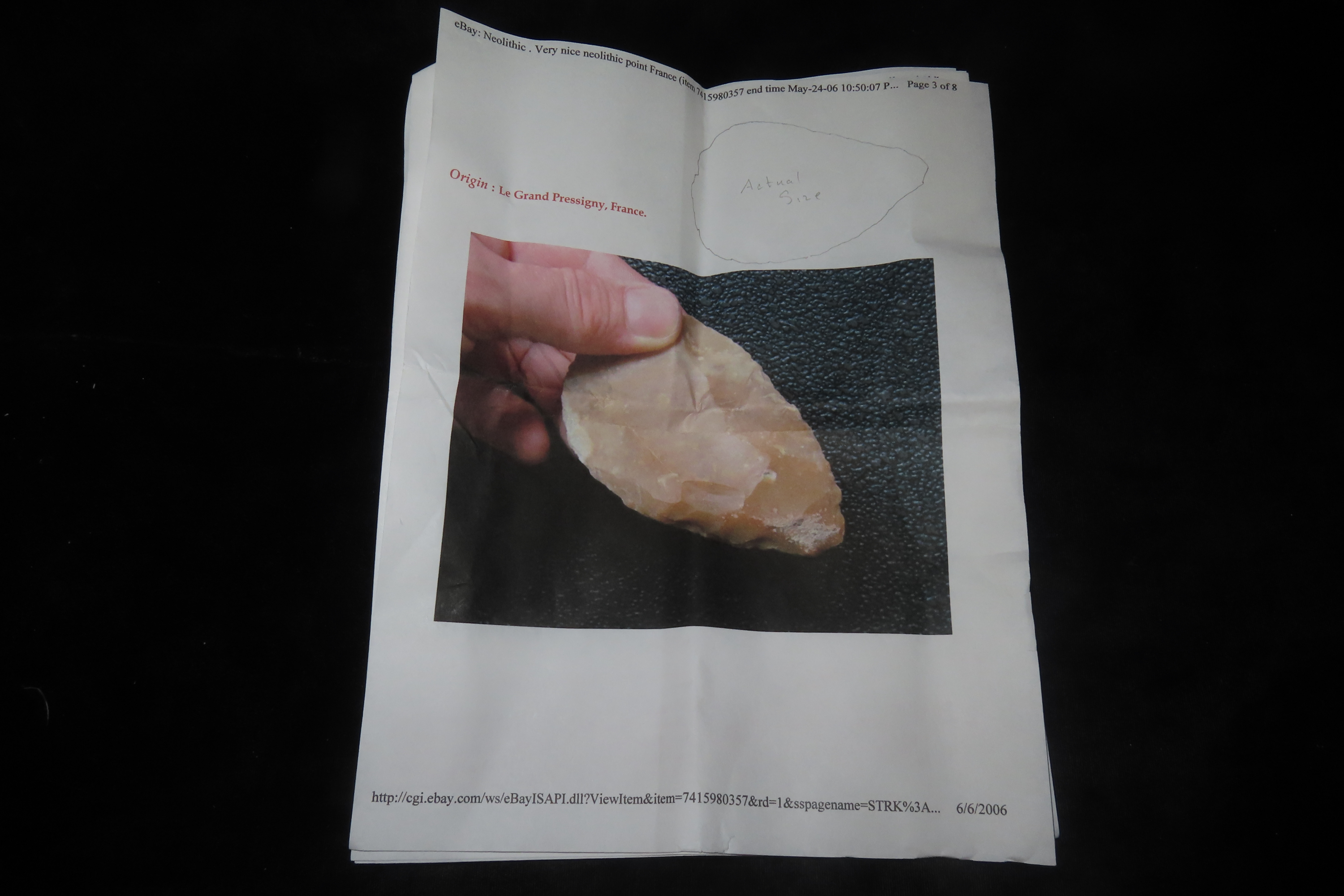 3 1/2" X 2 1/4" Neolithic Point/ Scraper, Found in Le Grand Pressigny, France