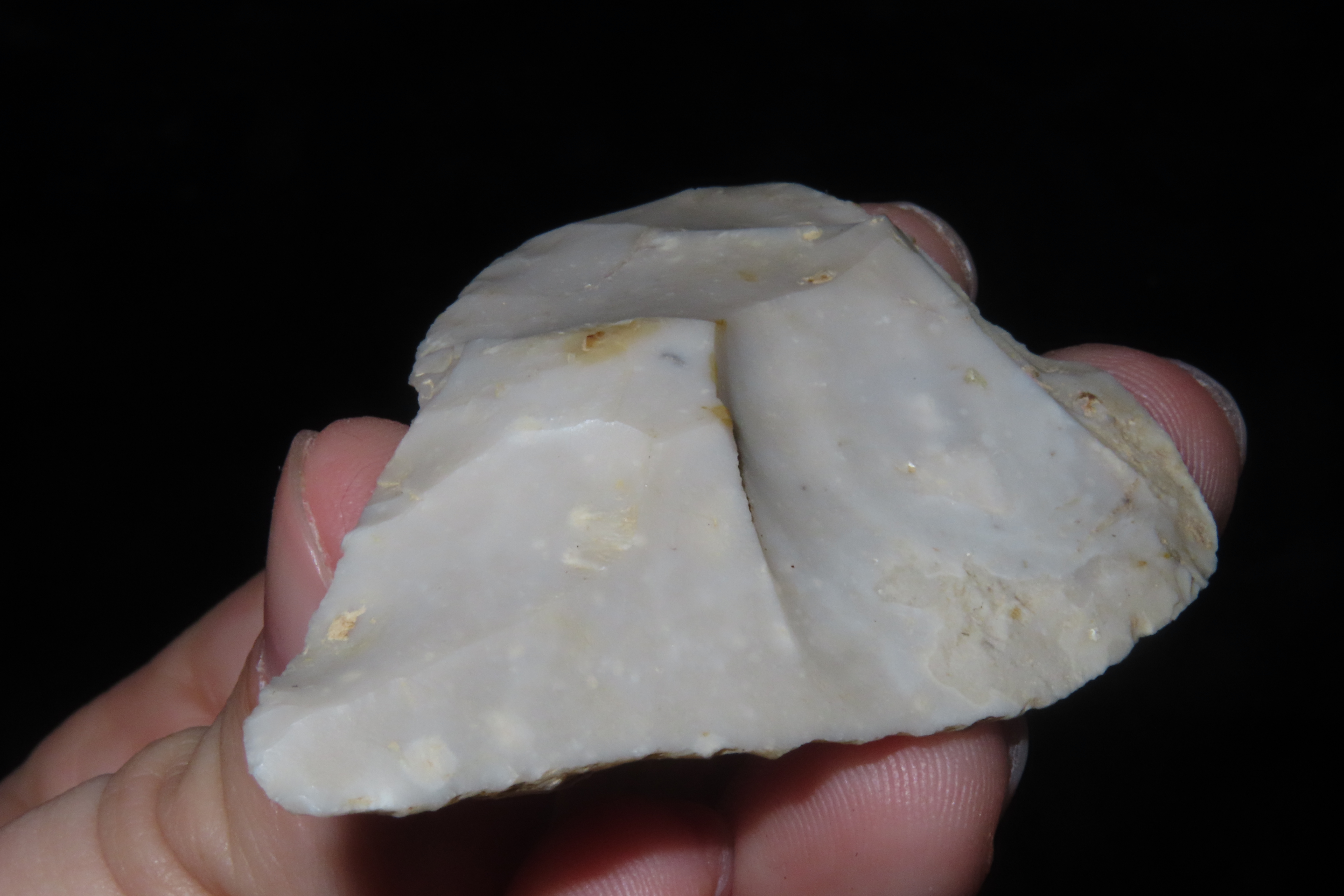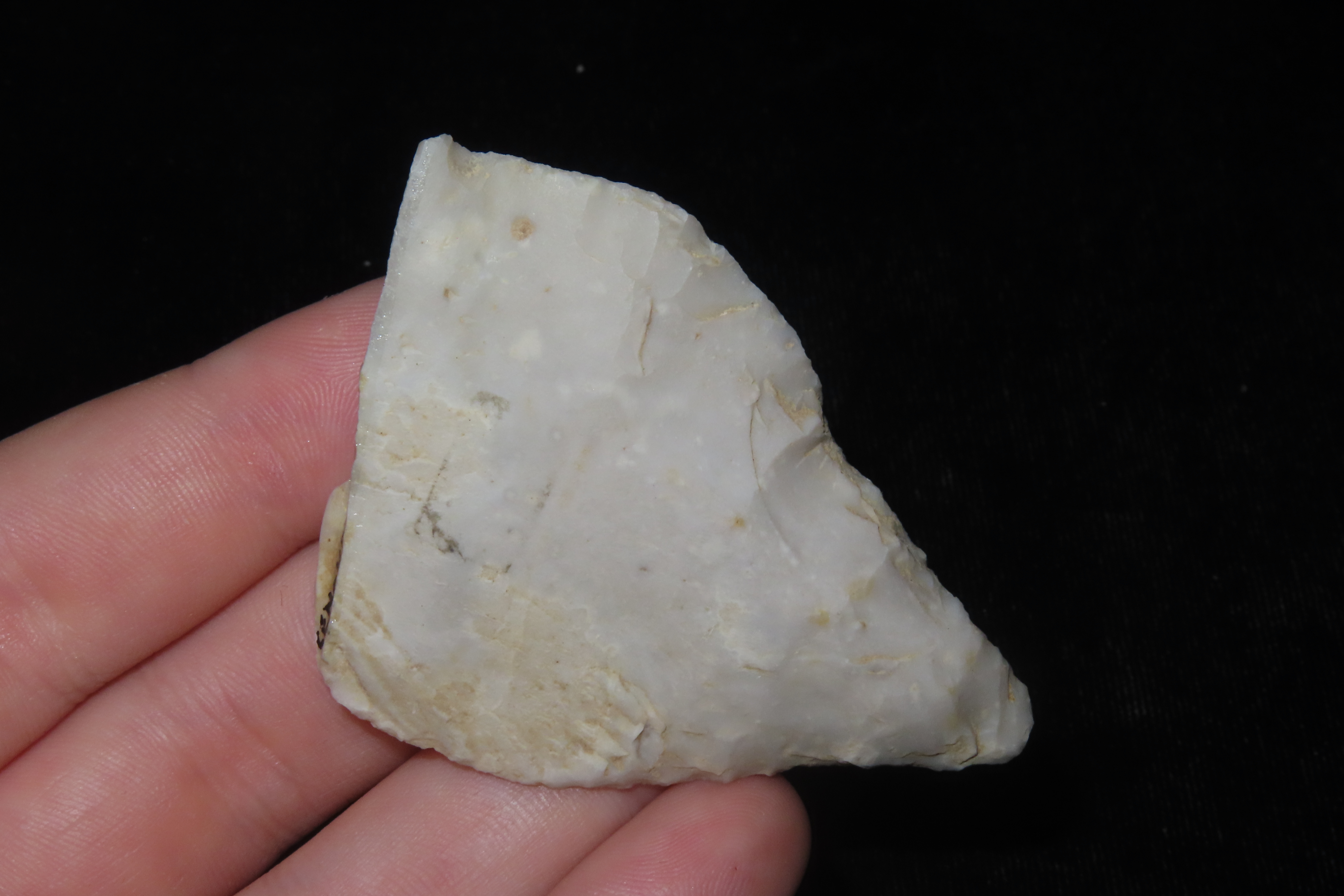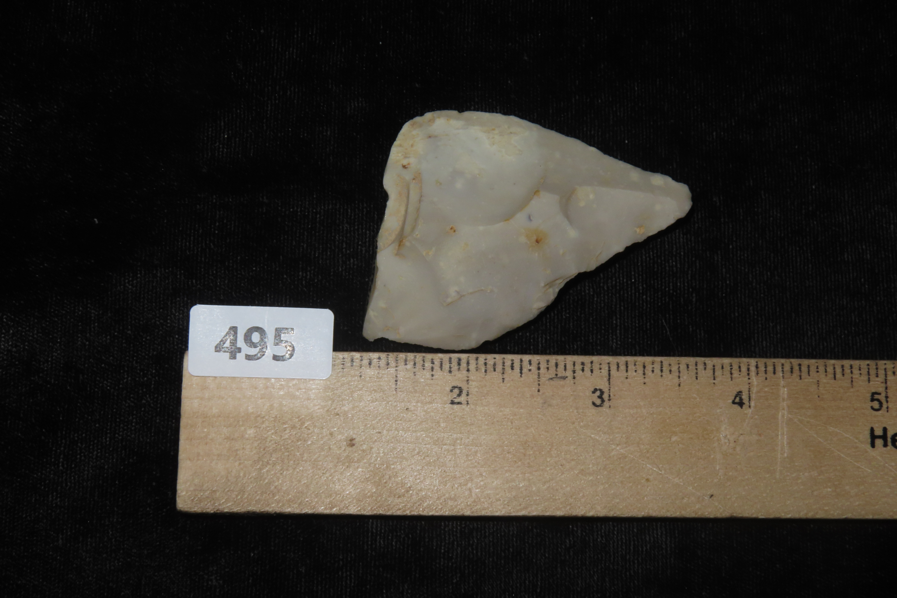2 1/4" X 1 5/8" X 7/16" Mid-Paleolithic Mousterian Triangular Point, made of a Levallois Flake by Homo Neanderthals in Yonne, France, Ex Sir Arthur Evans, Ex Henry Dewey