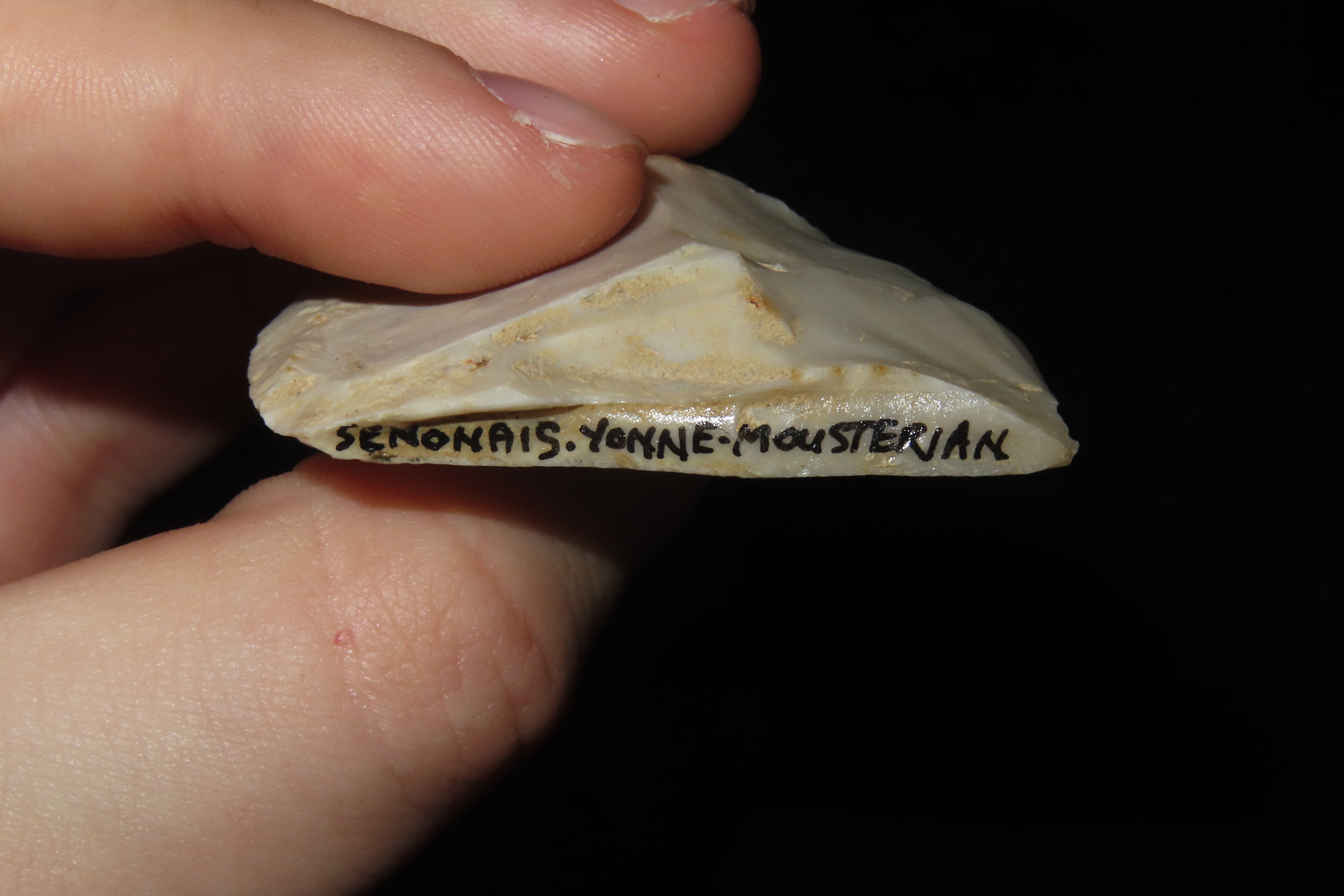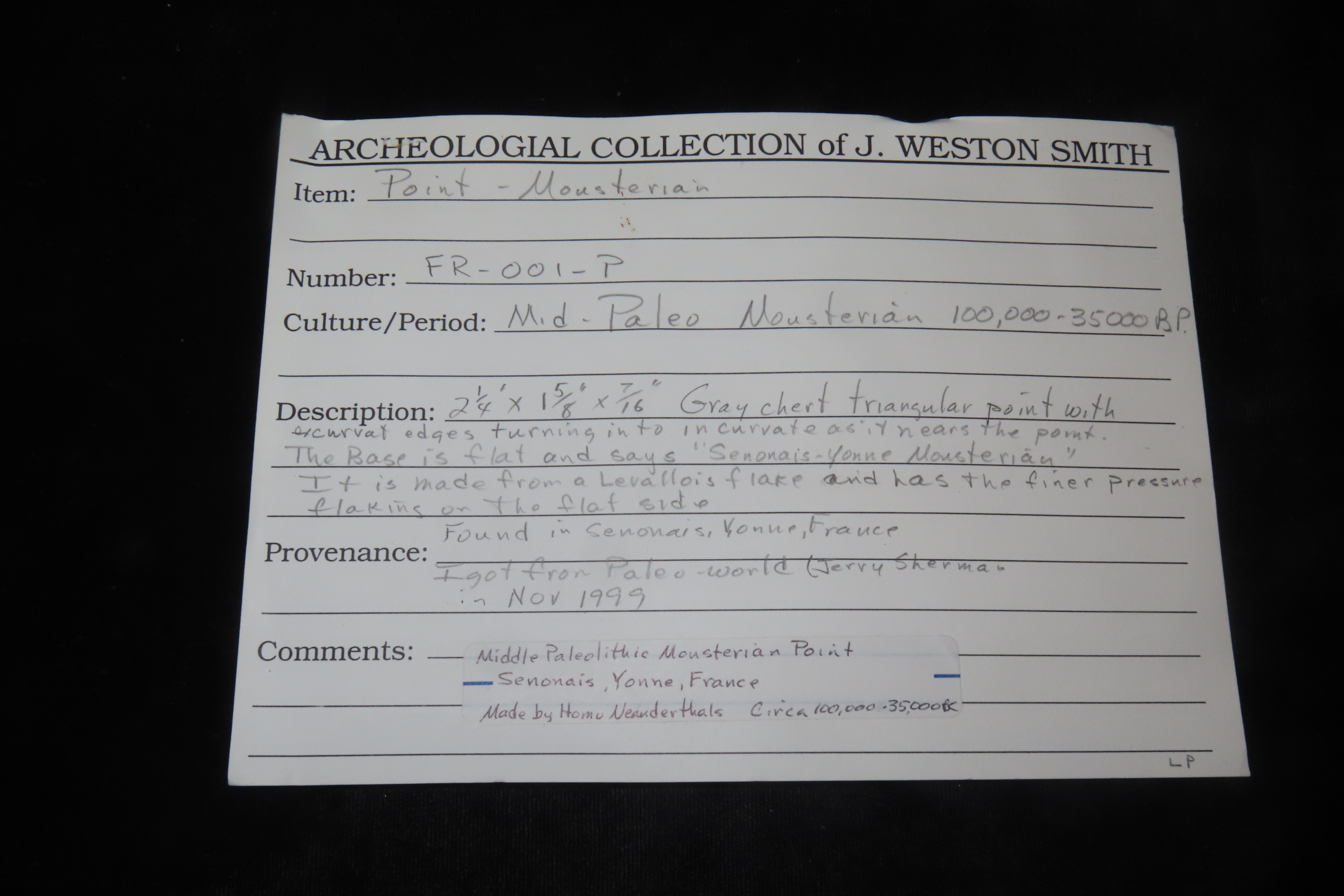 2 1/4″ X 1 5/8″ X 7/16″ Mid-Paleolithic Mousterian Triangular Point, made of a Levallois Flake by Homo Neanderthals in Yonne, France, Ex Sir Arthur Evans, Ex Henry Dewey