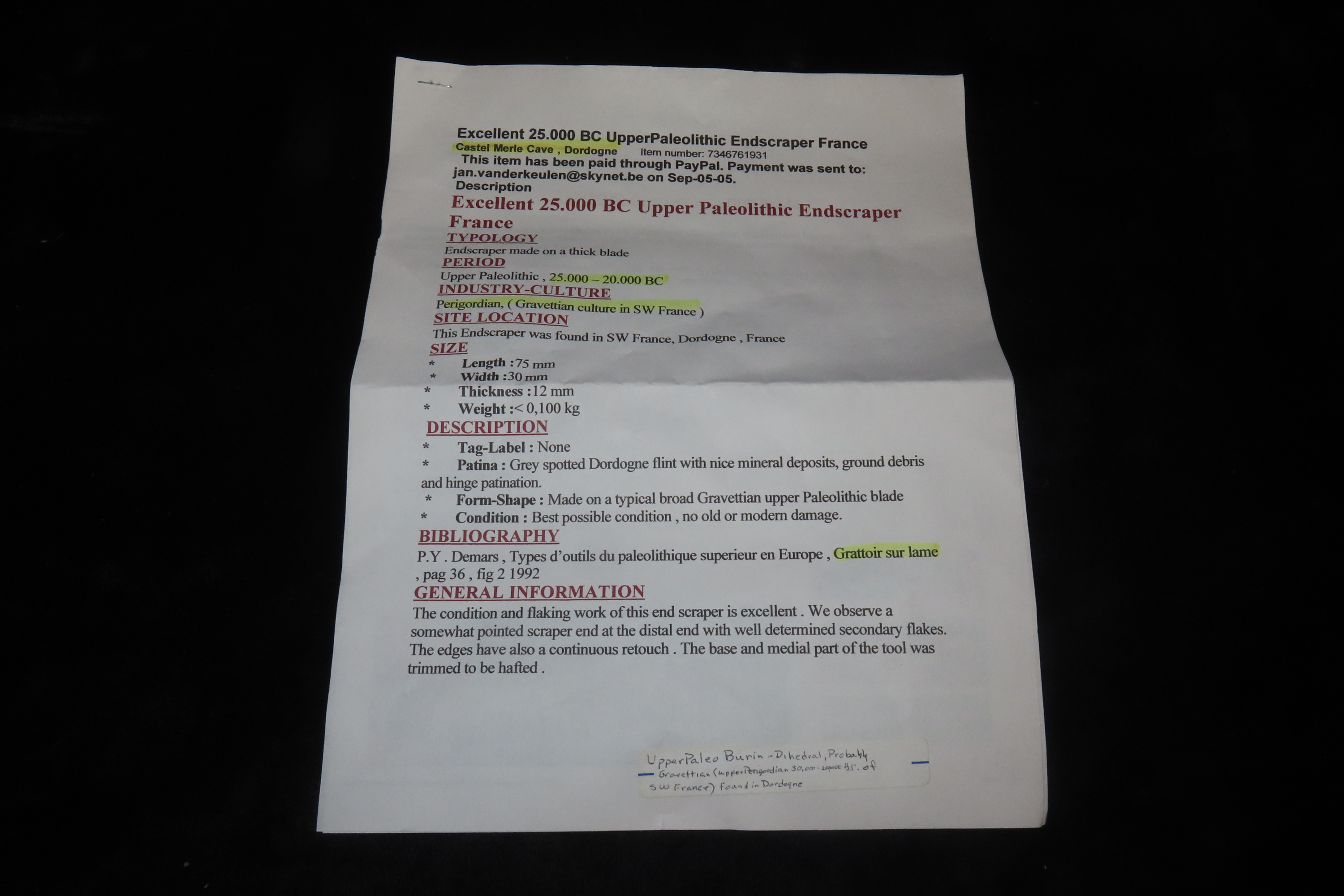 2 15/16″ X 1 1/8″ Upper Paleolithic Endscrapper, Found in SW Dordogne, France