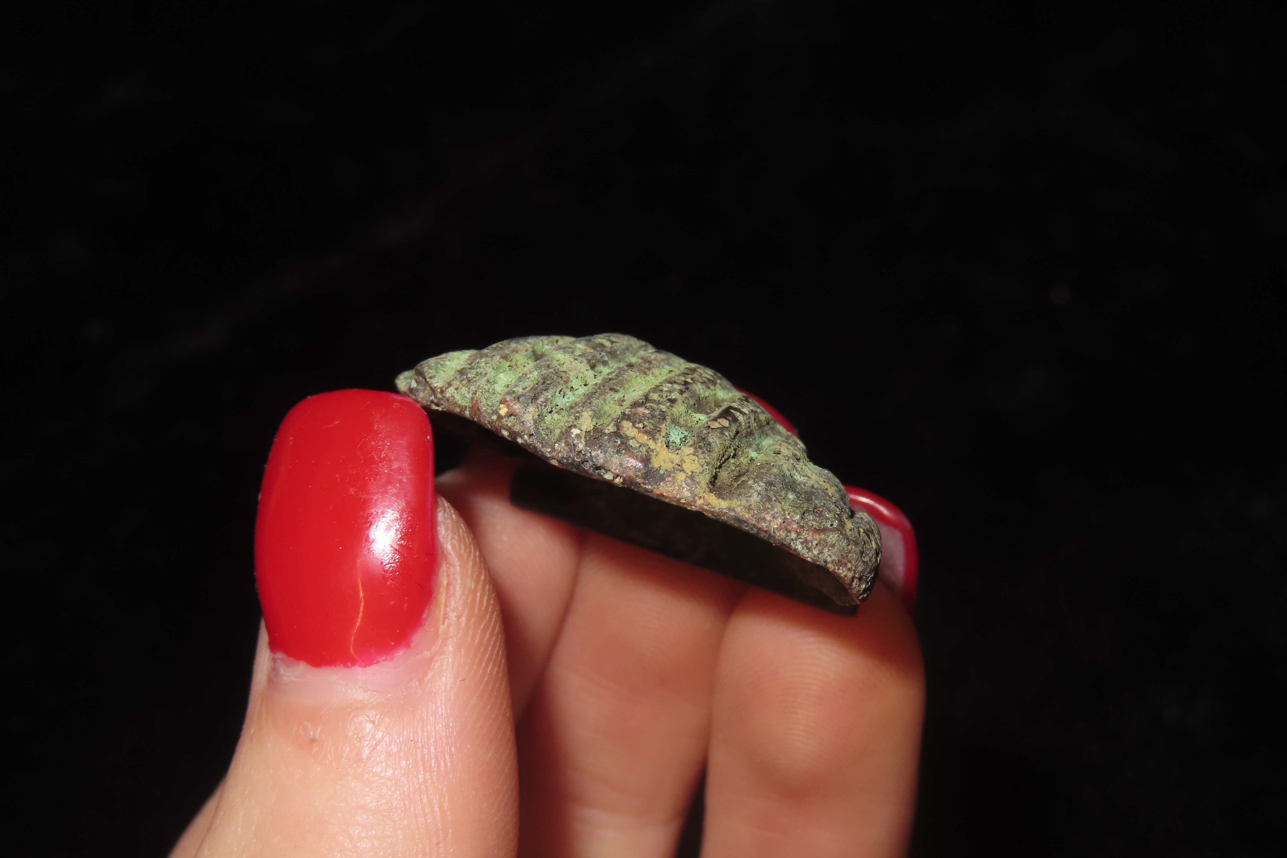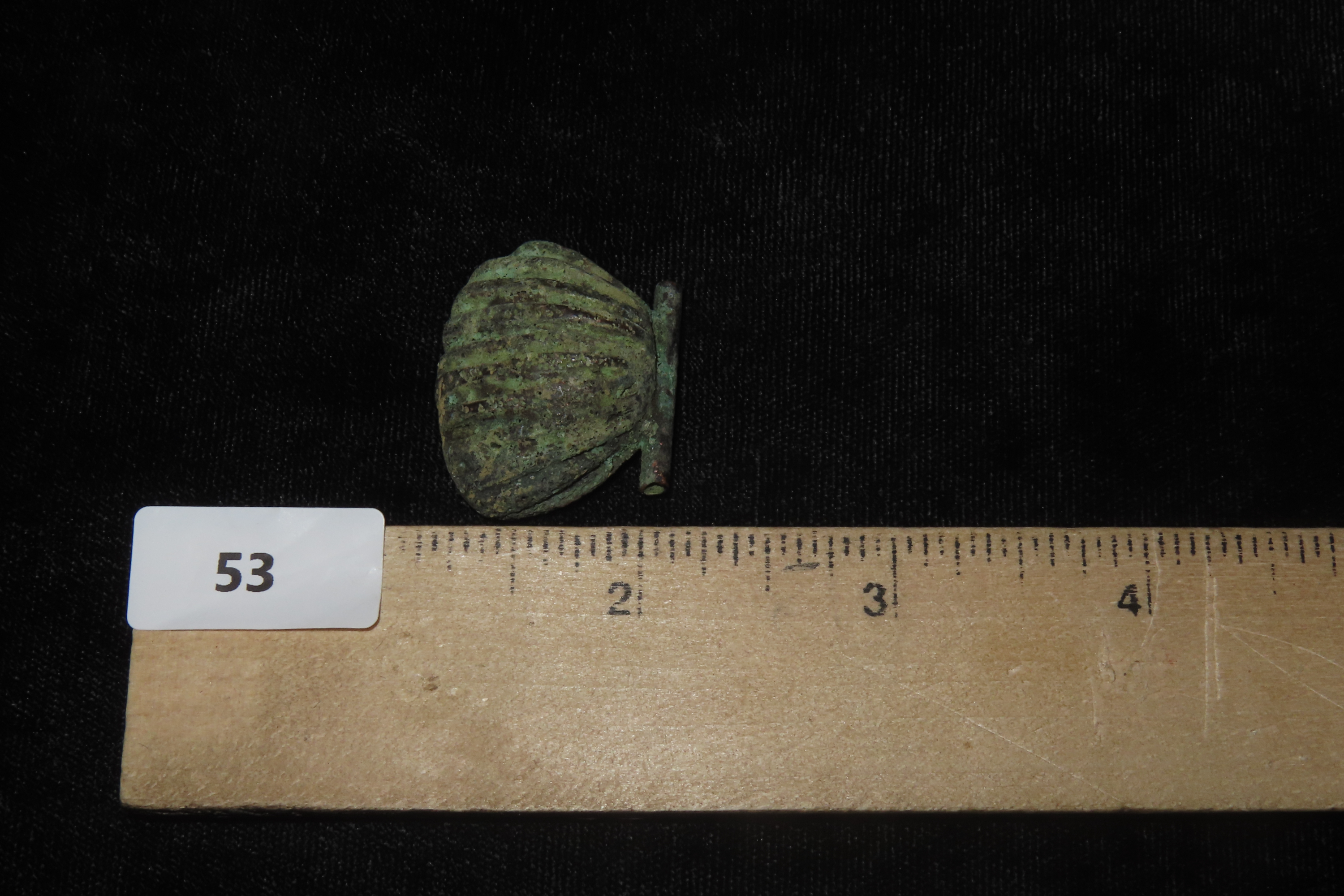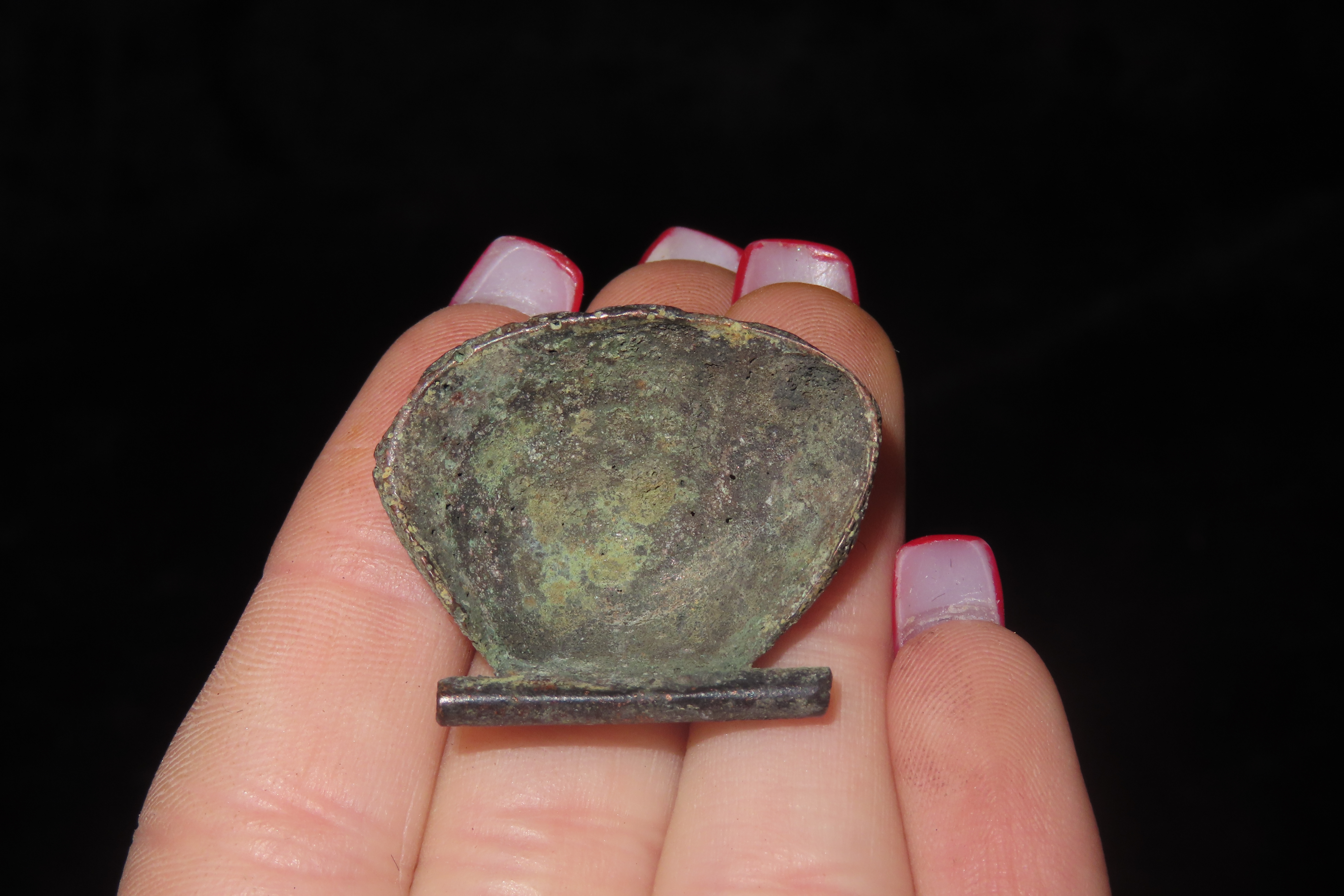 1 1/4″ x 1″ Pre-Columbian Copper Shell Effigy Pendant, South America