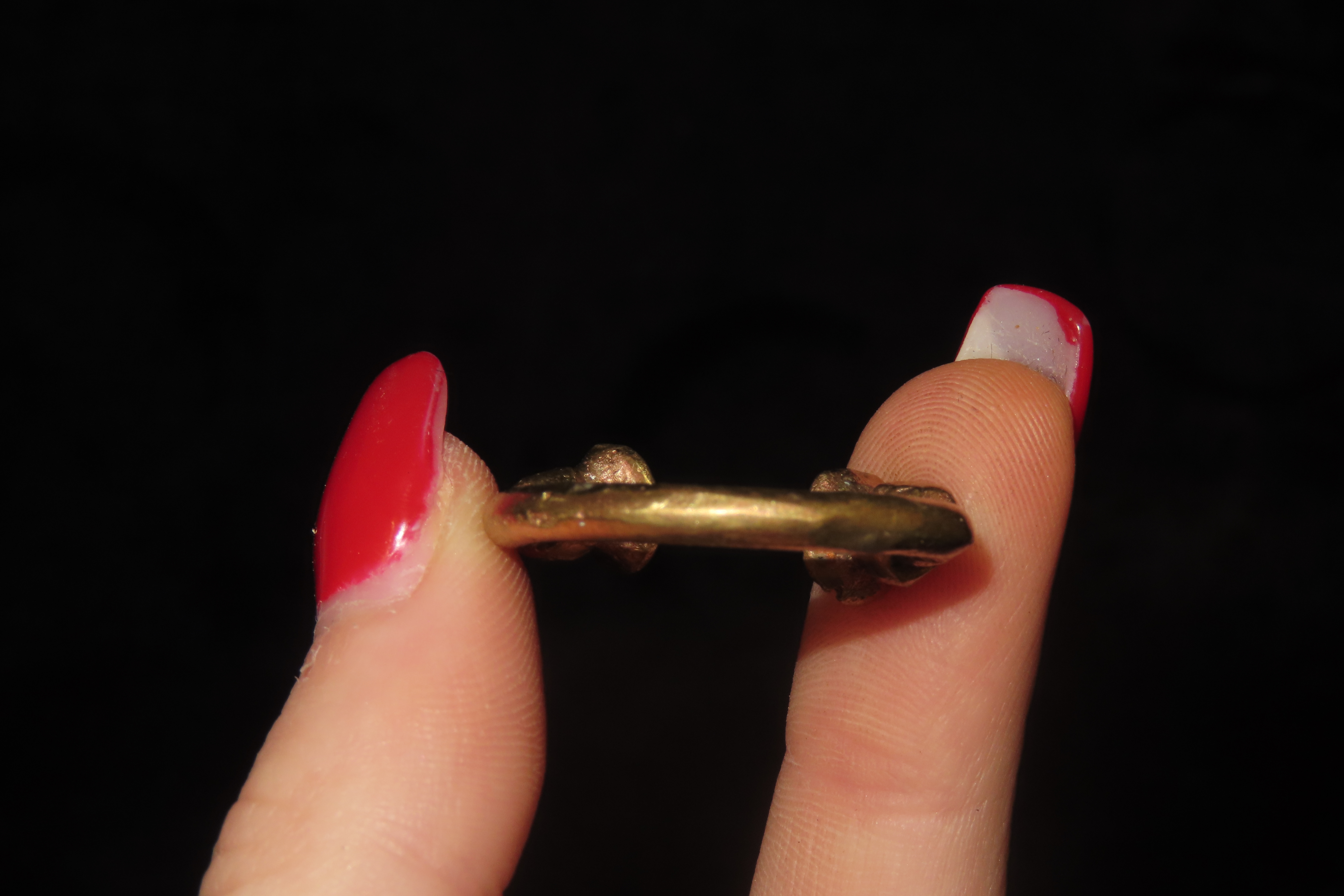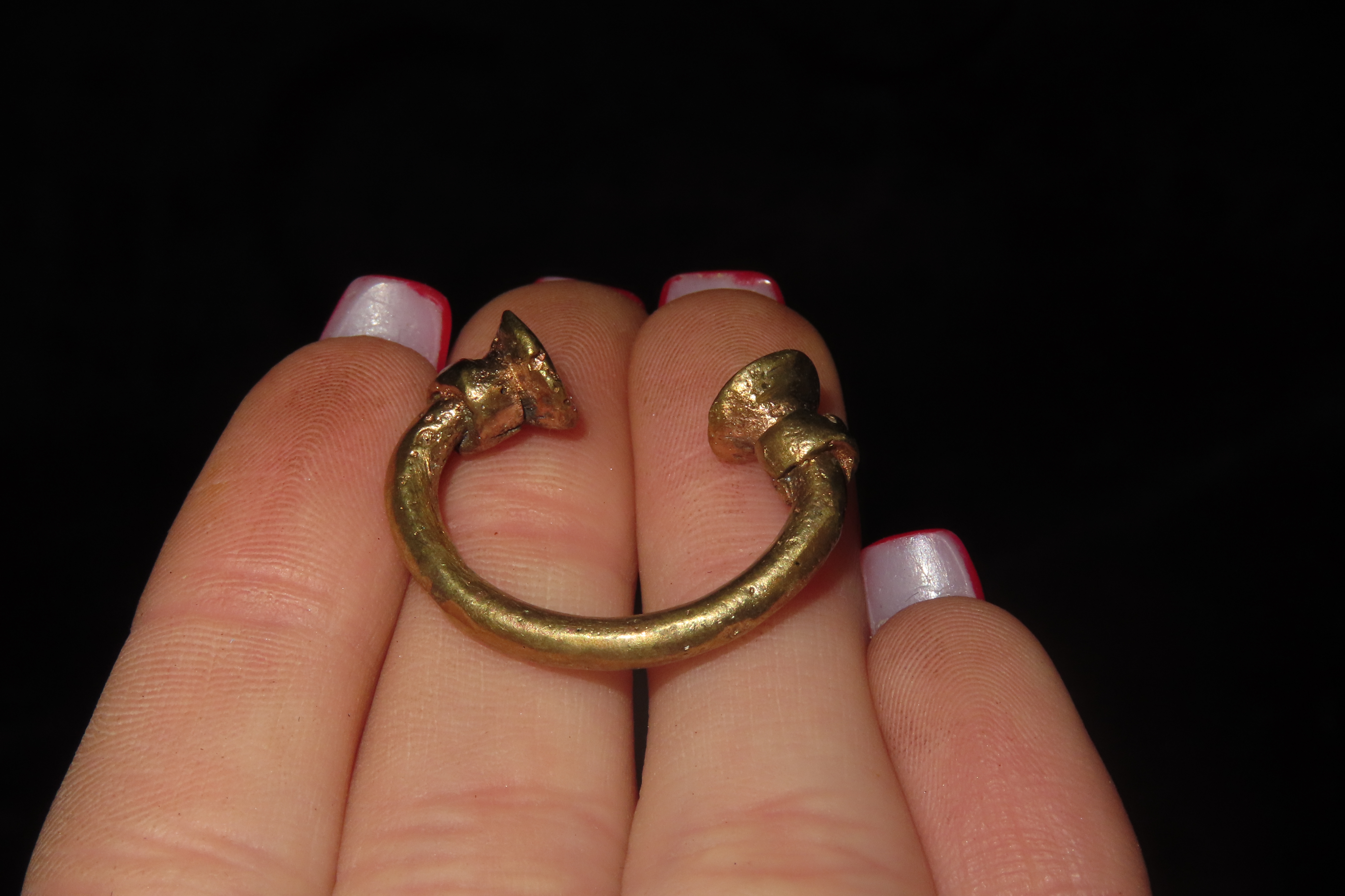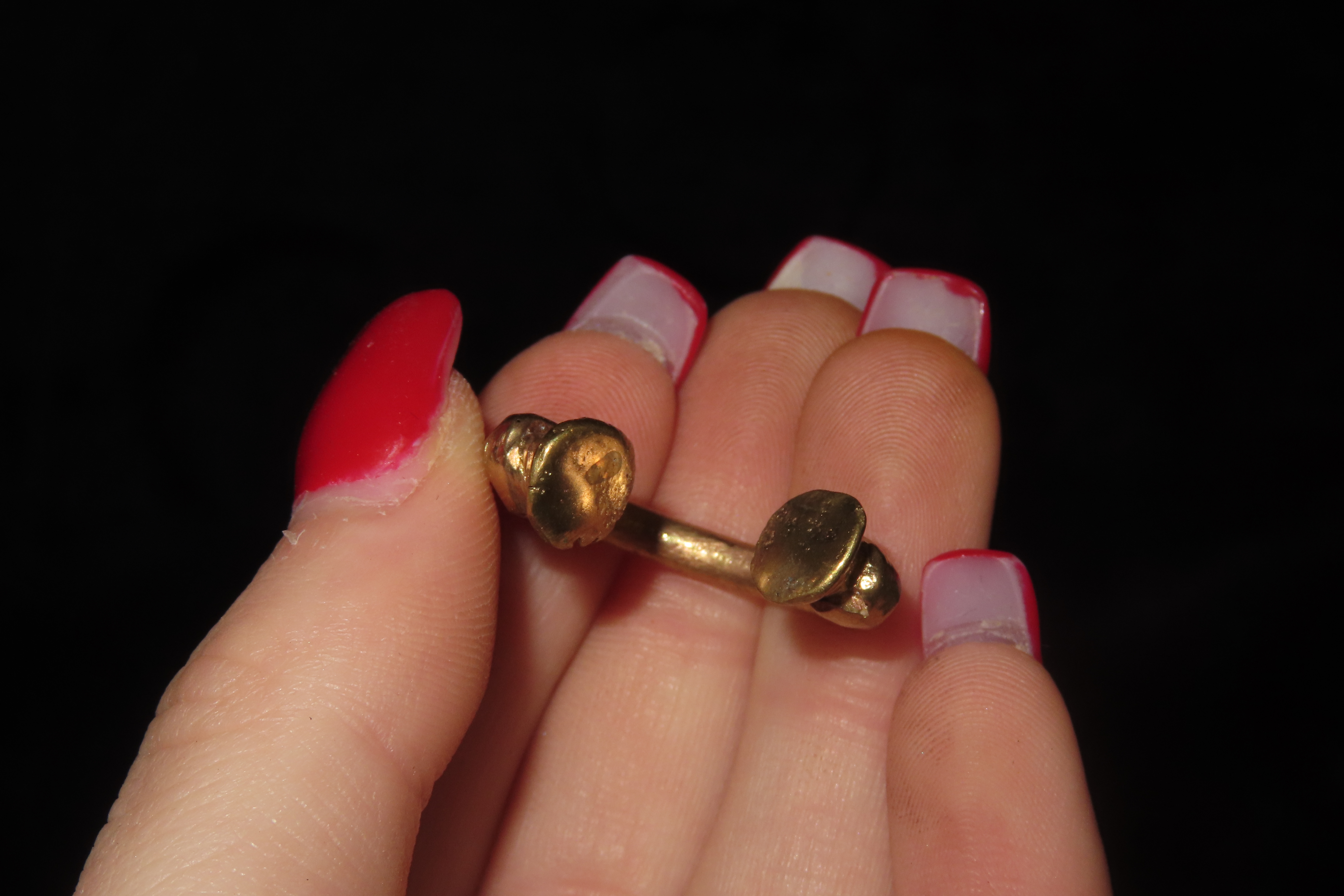 1″ x 7/8″ Pre-Columbian Tairona Tumbaga Nose/Ear Decoration, Gold content unknown