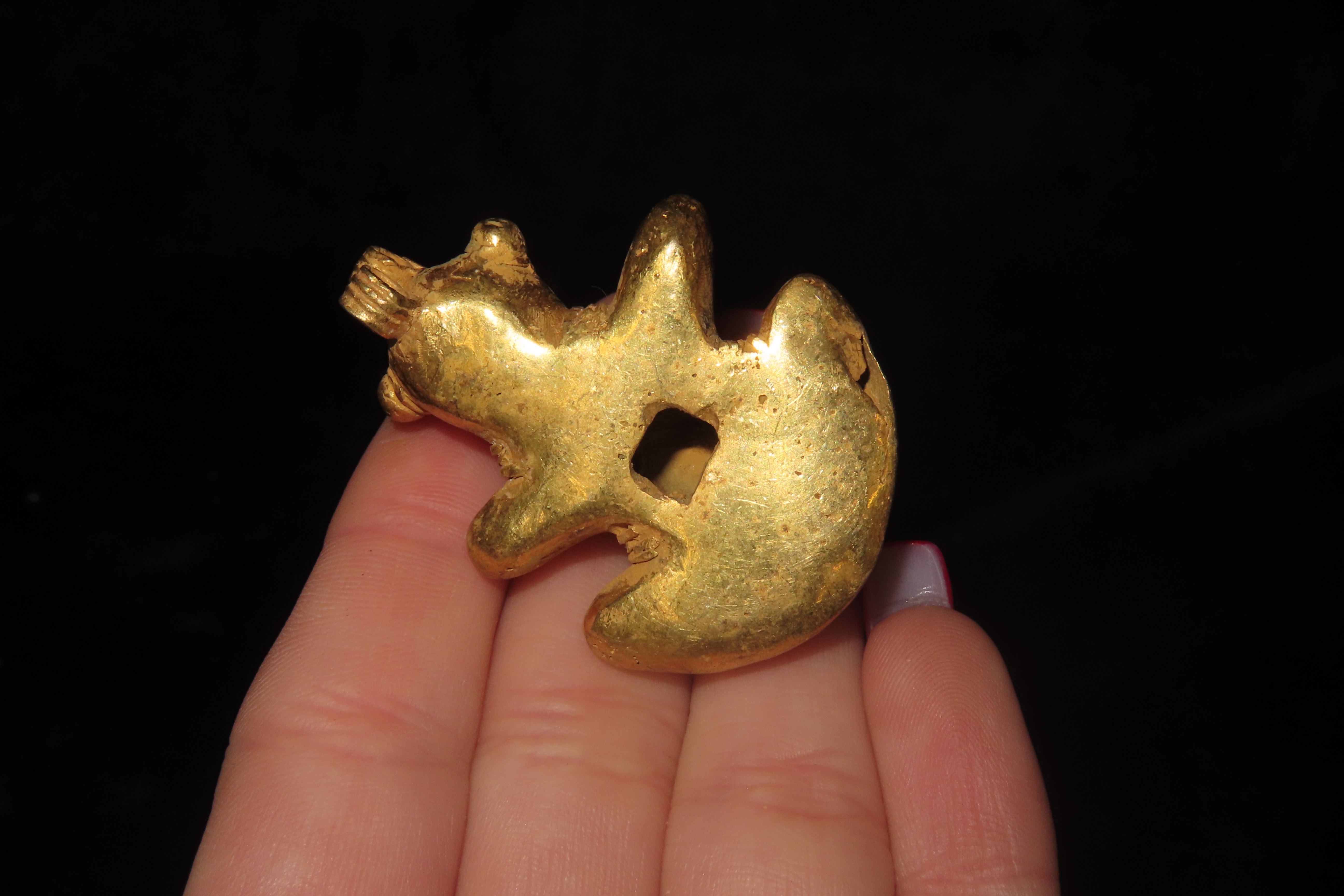 1 3/4″ X 1 1/4″ X 7/8″ Pre-Columbian Tairona Tumbaga Parrot Effigy Pendant/Amulet/Talisman/Totem, Gold content unknown