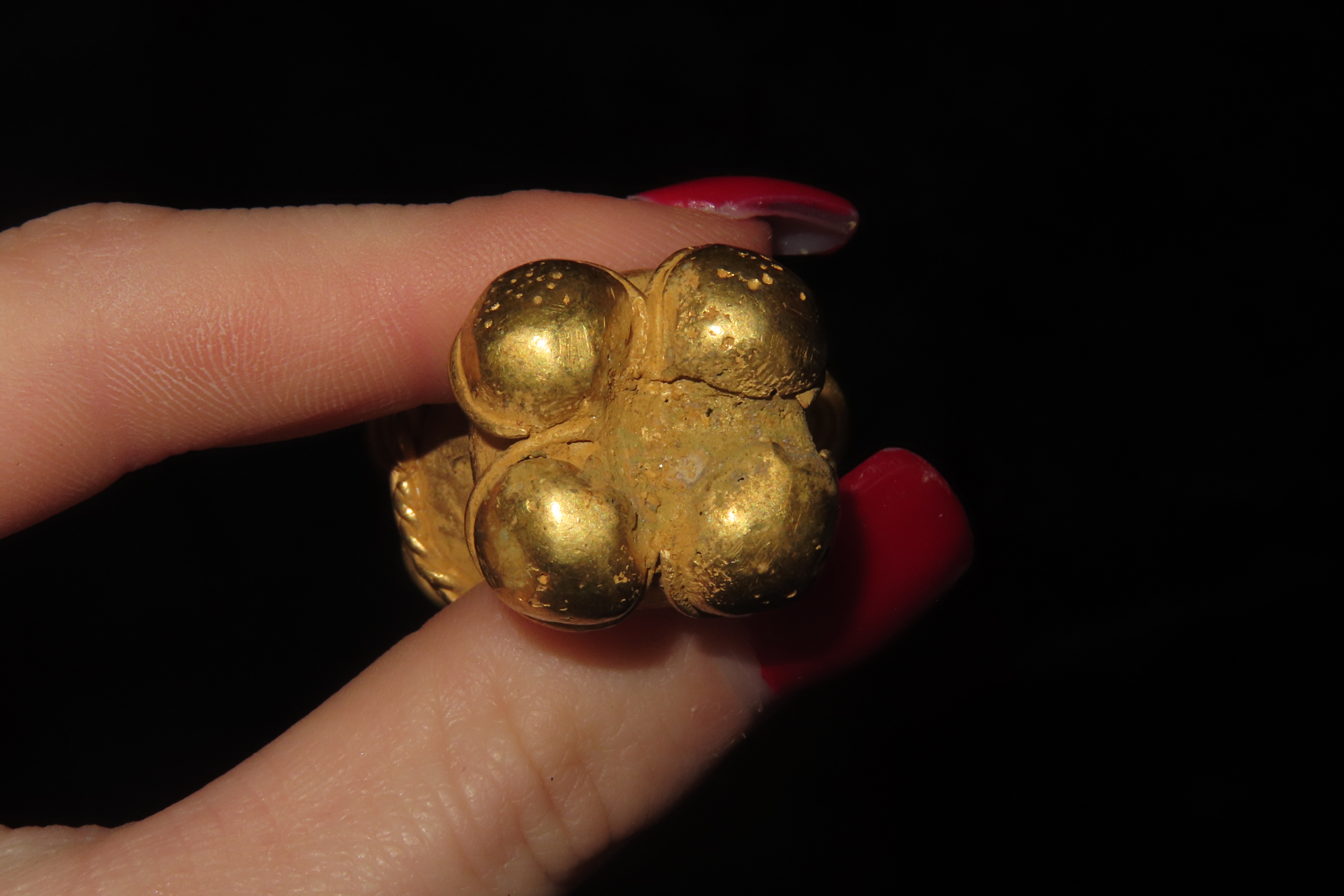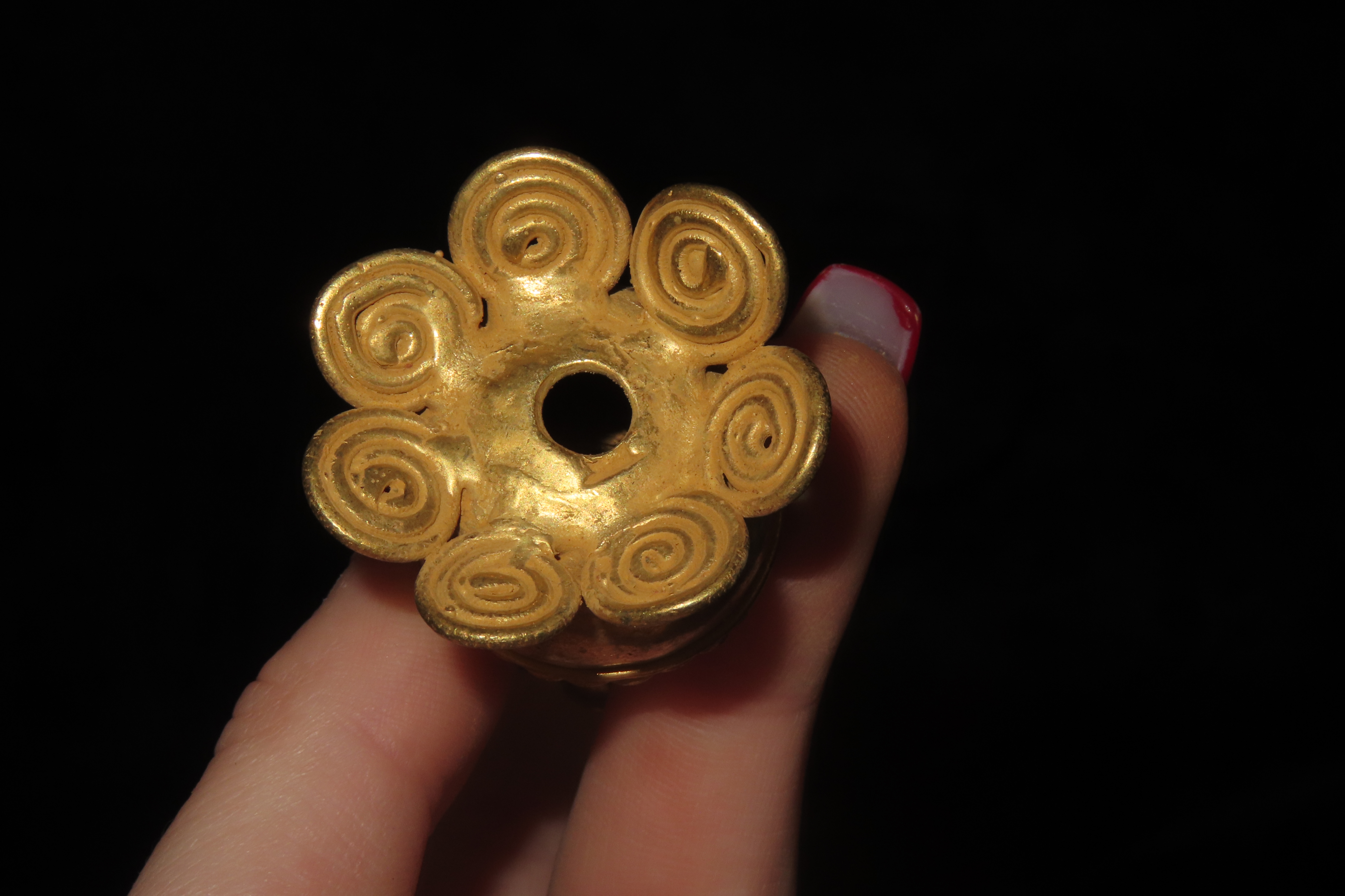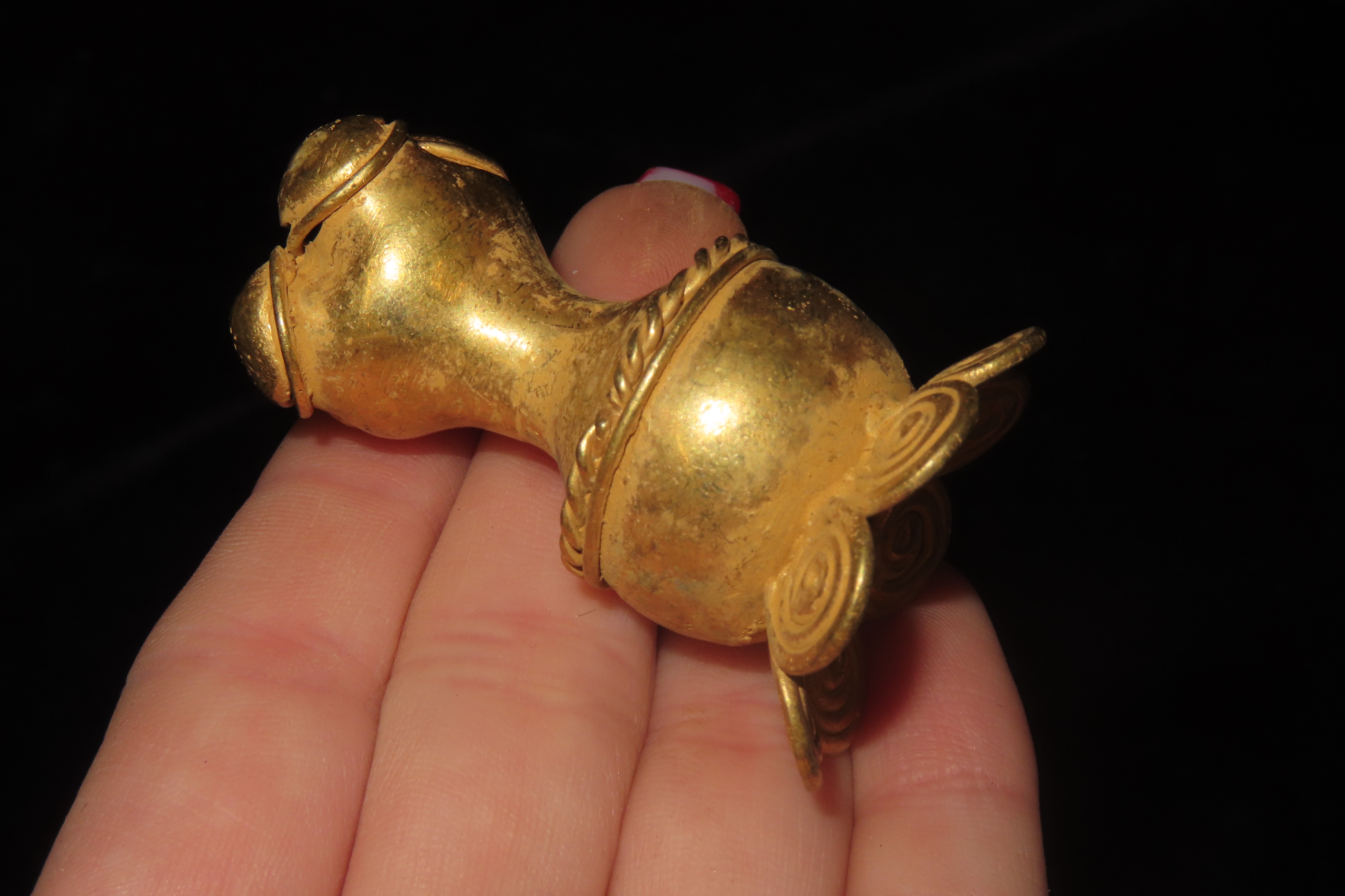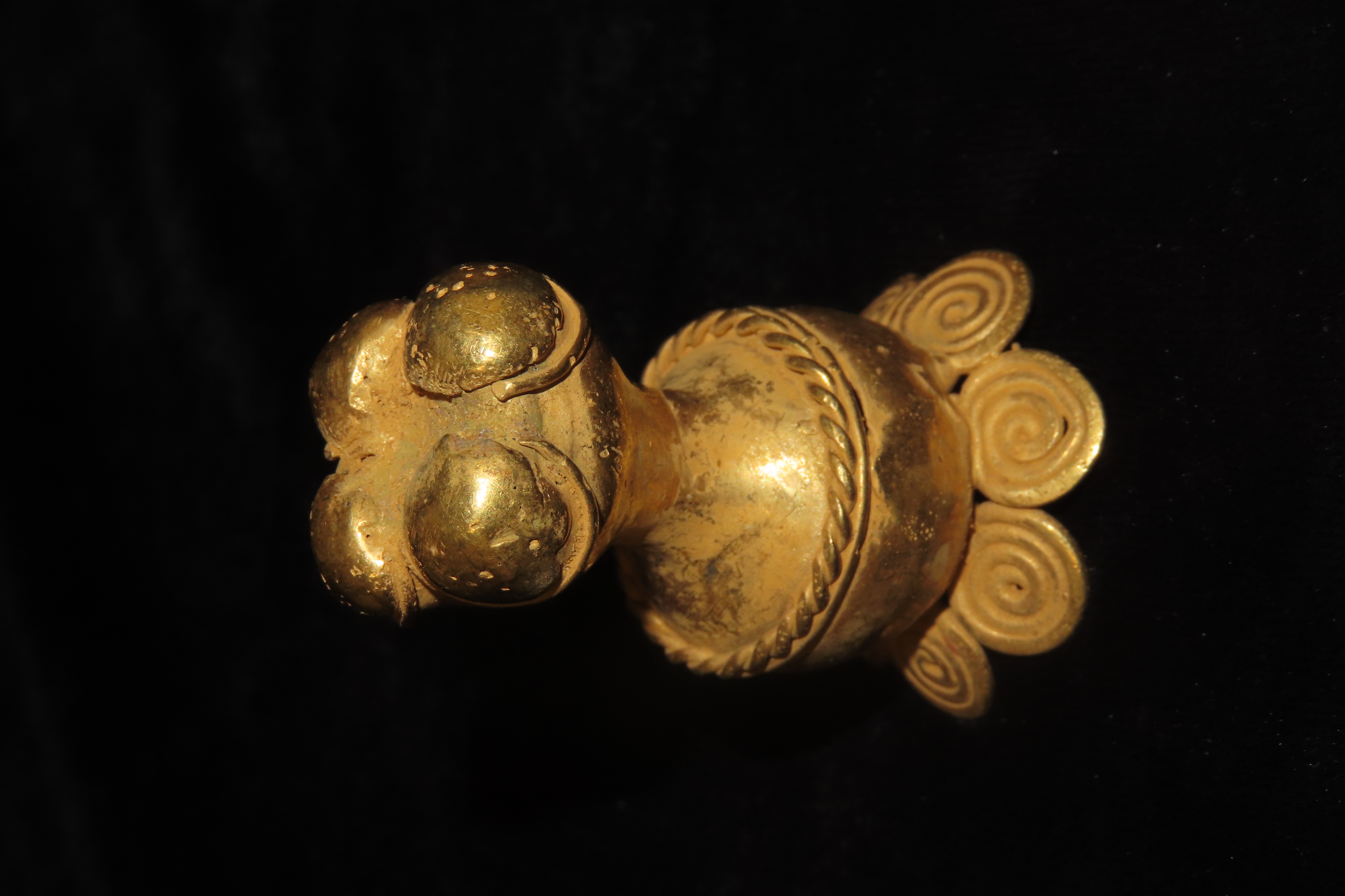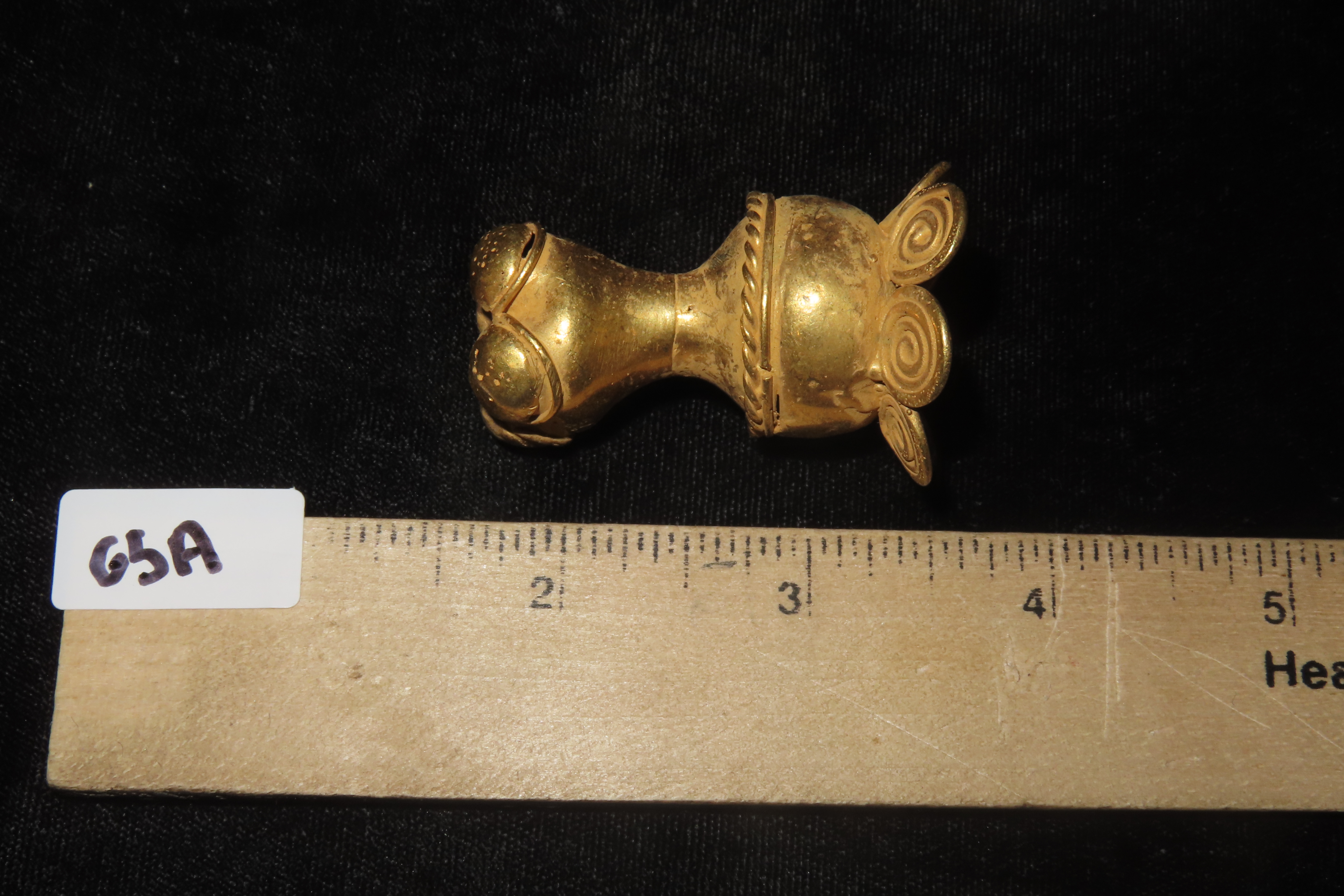 1 7/8″ x 1 1/4″ Pre-Columbian Tairona Tumbaga Offering Stand Effigy Figure, Gold content unknown