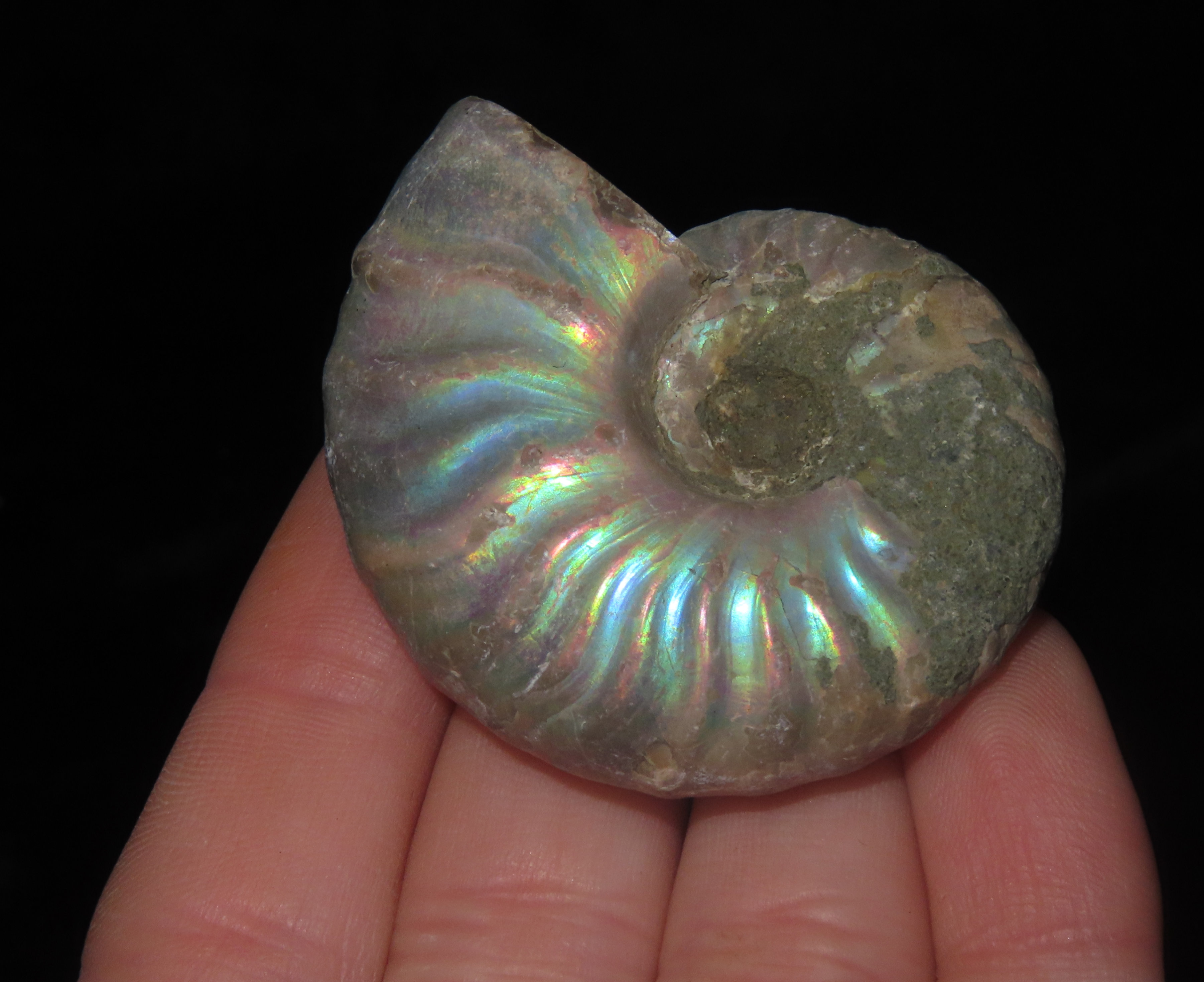 1 3/4″ Iridescent Fossil Ammonite, Cleoniceras, 110 Million yrs. old