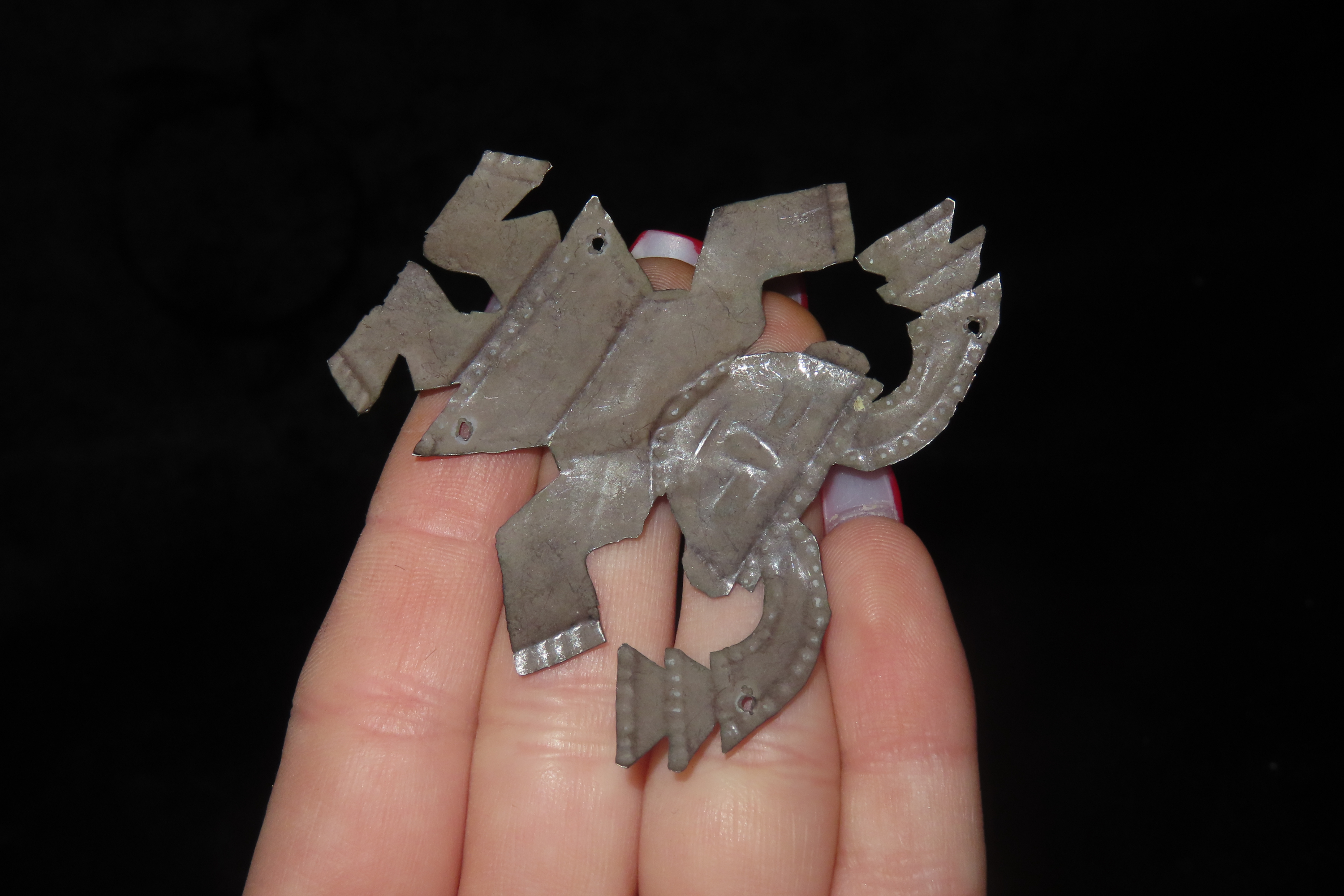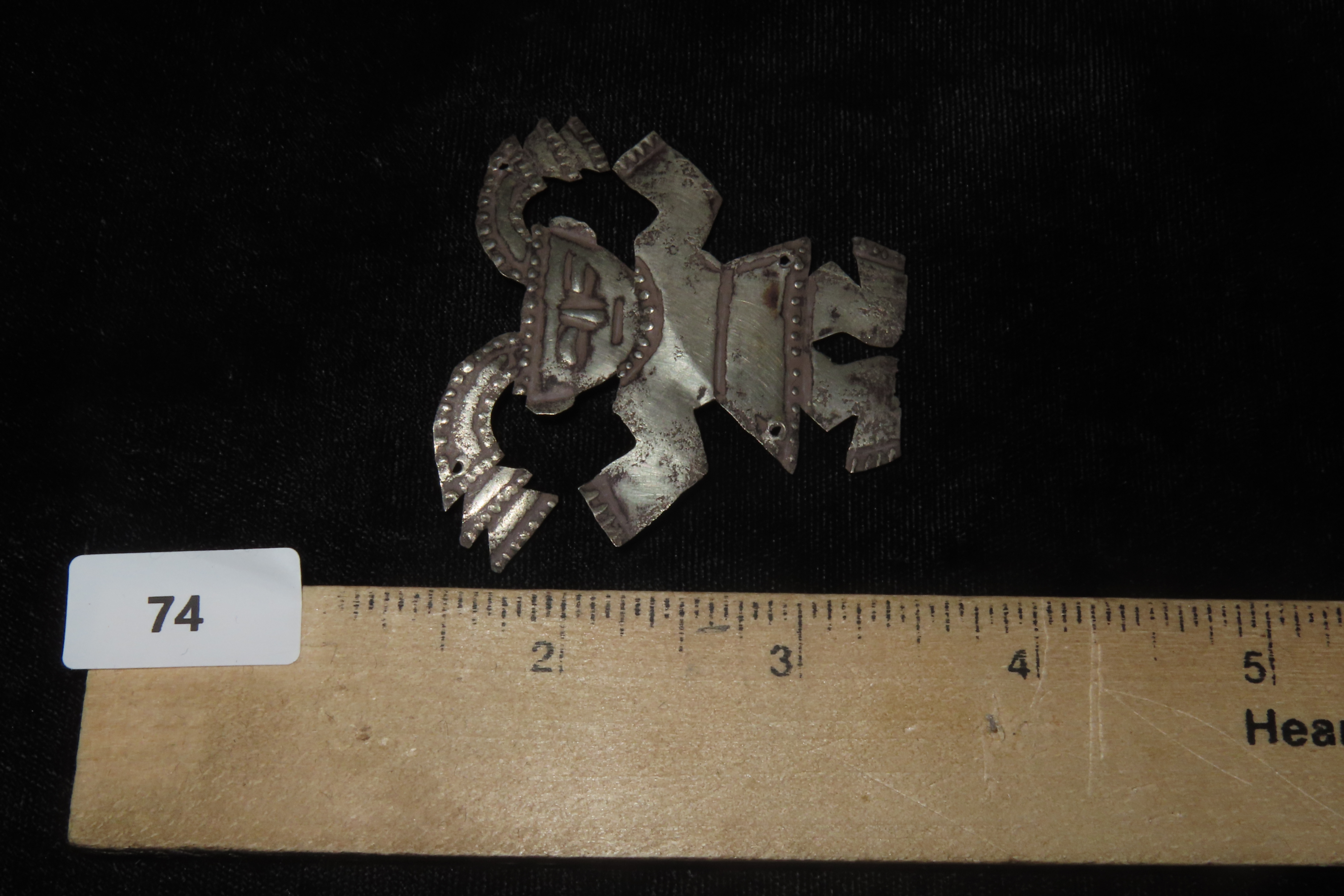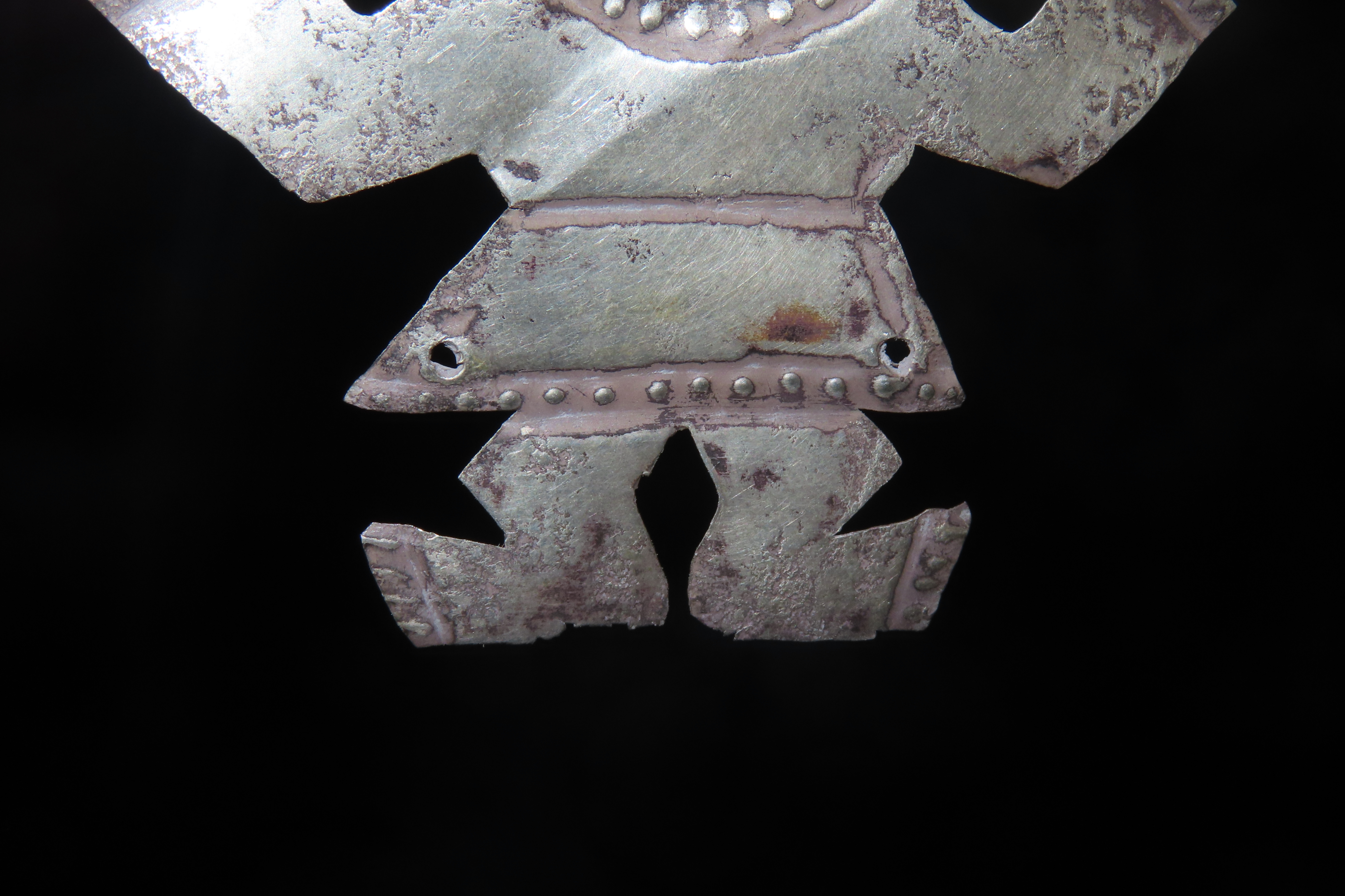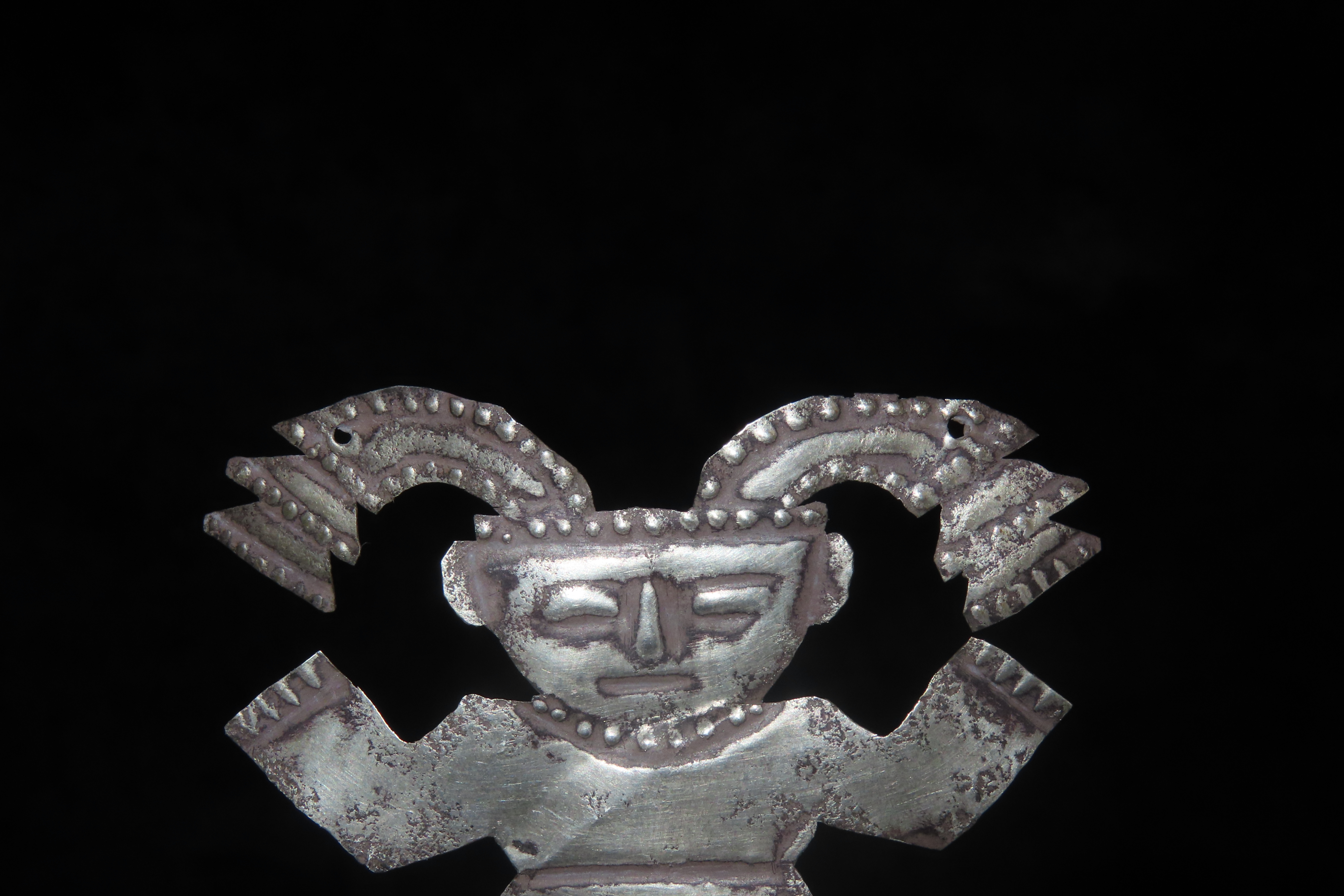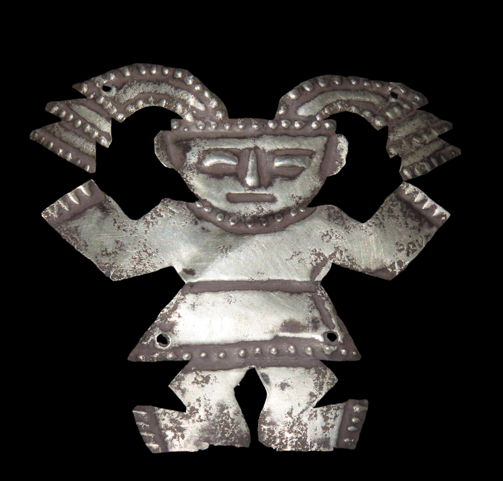 2 3/8″ x 2″ Pre-Columbian-style Silvertone Metal Human Effigy Pendant, from Peru