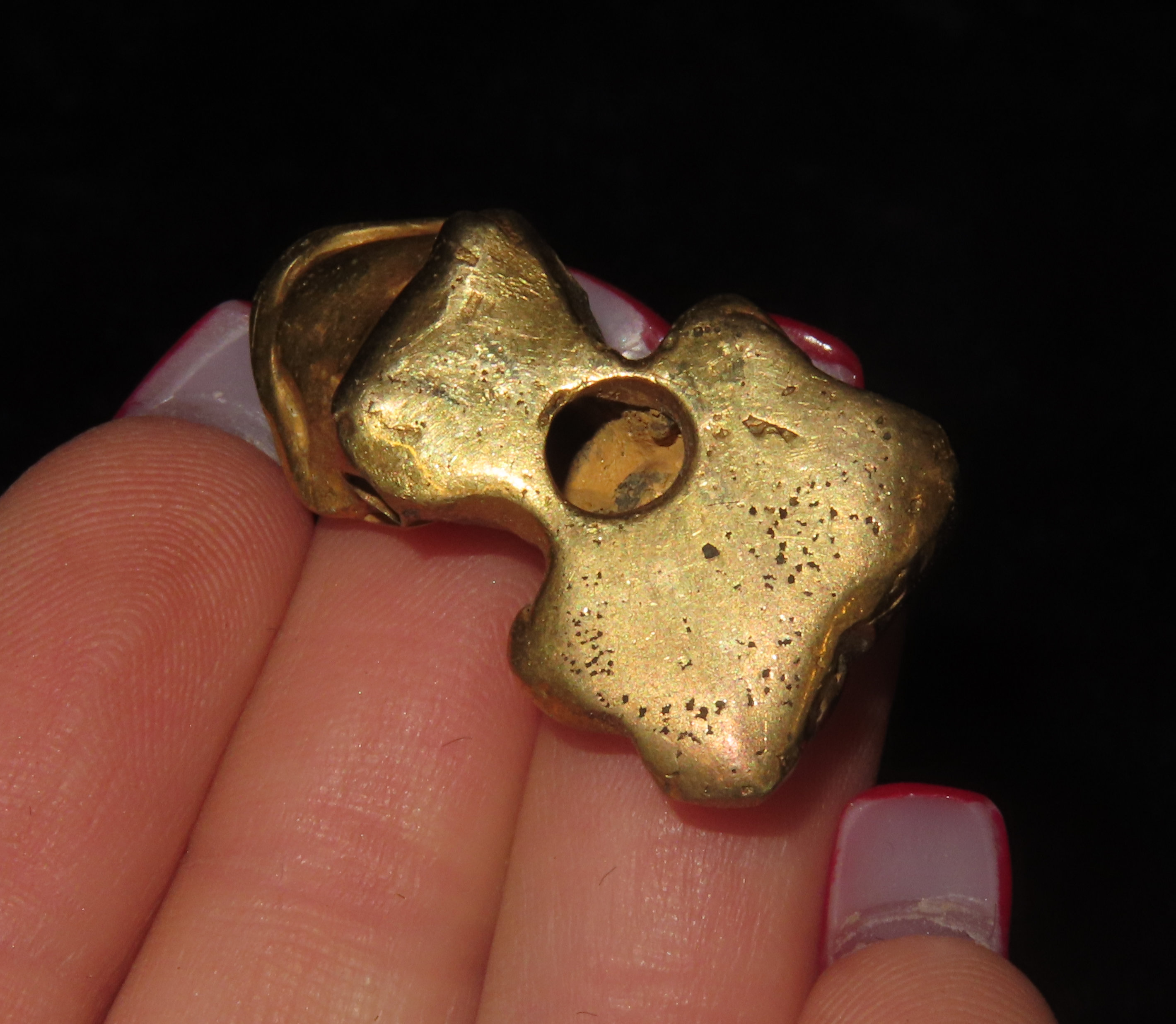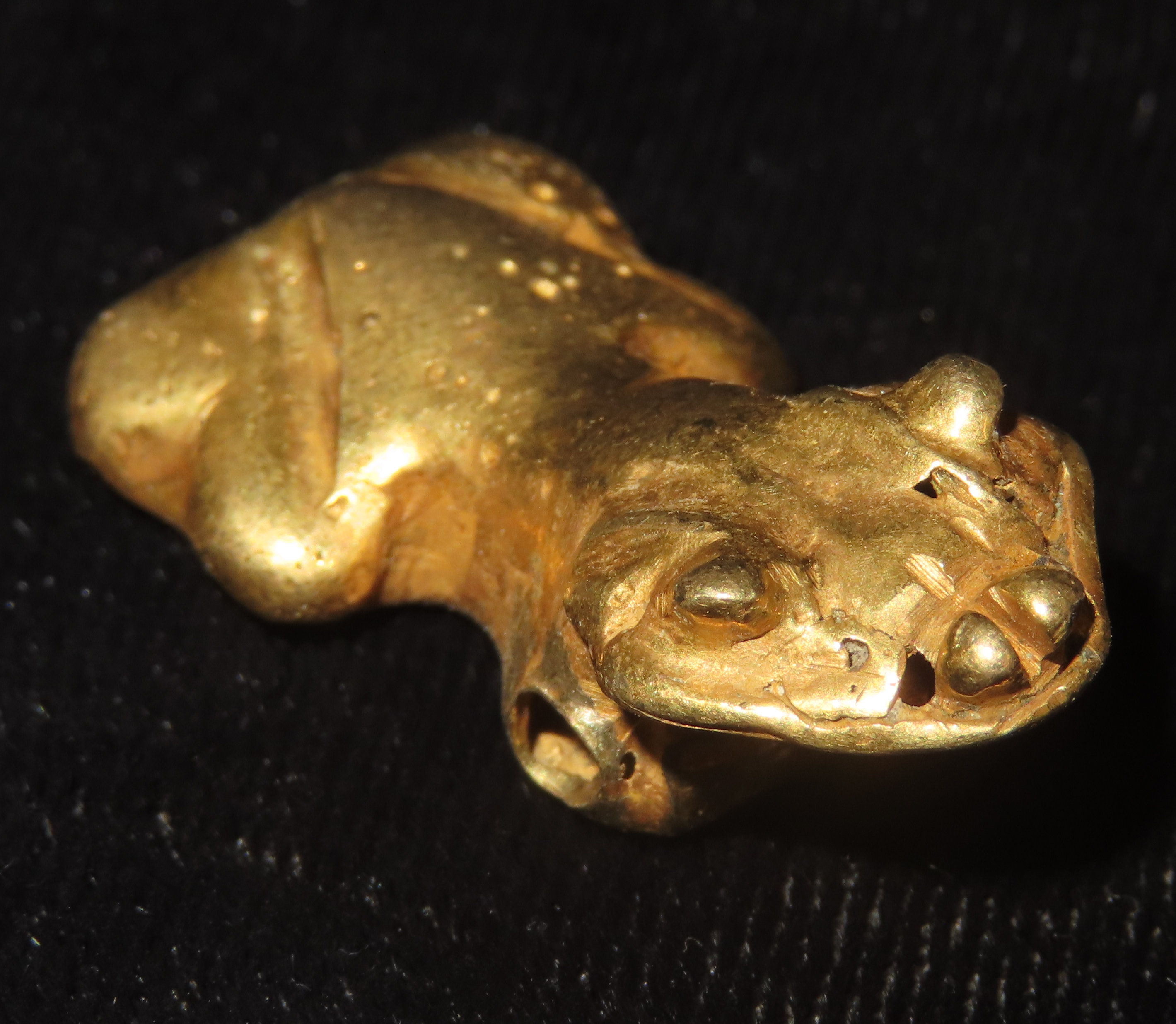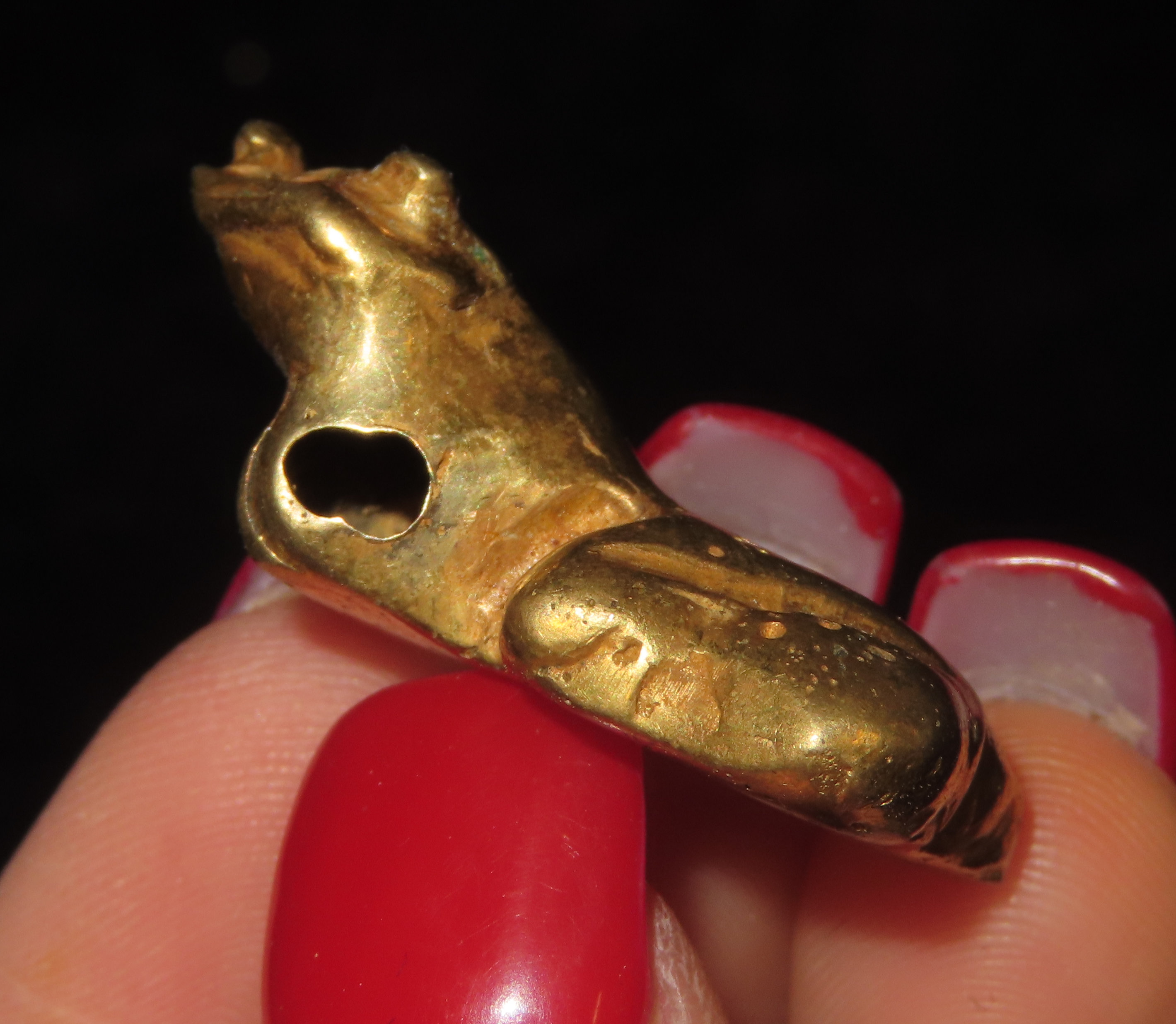 1 1/4″ x 5/8″ Pre-Columbian Tairona Tumbaga Frog Effigy Pendant/Talisman/Amulet/Totem, Gold content unknown