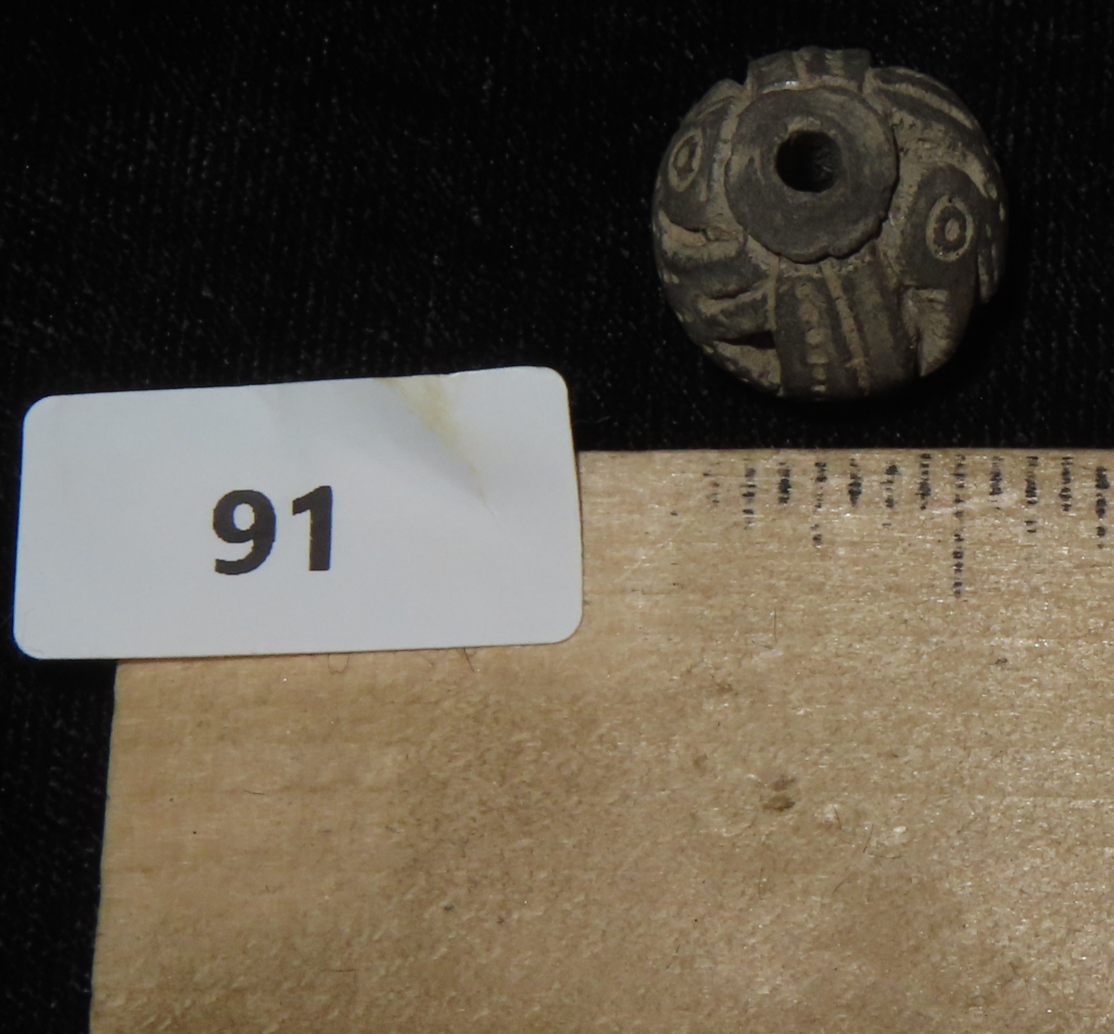 9/16″ x 9/16″ Pre-Columbian Swimming Pelican Effigy Engraved Bead, 1500 BCE-1100 BCE, Machalilla Culture, from Ecuador