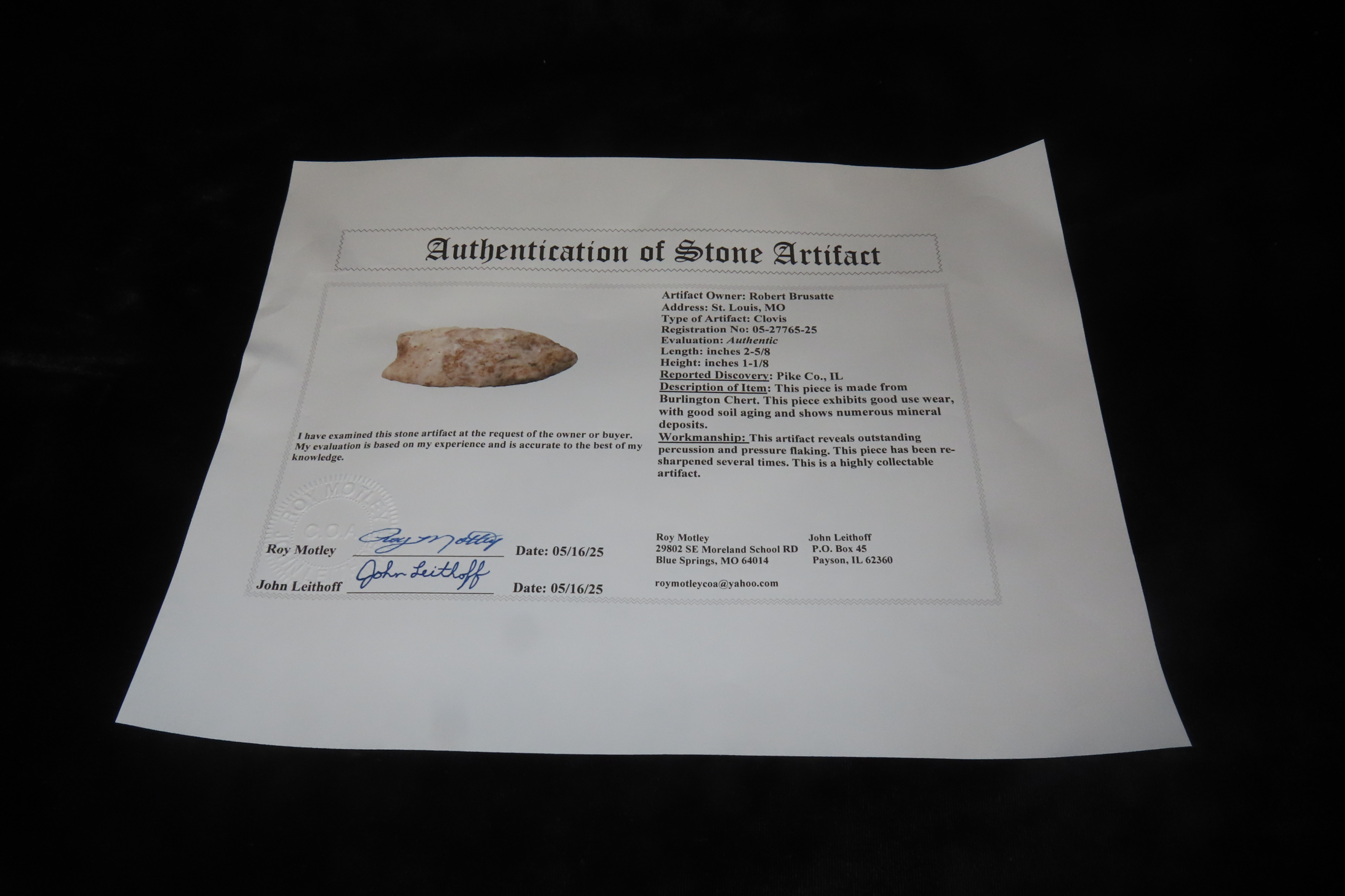2 5/8″ X 1 1/8″ Clovis, Motley COA, Found in Pike Co. IL.