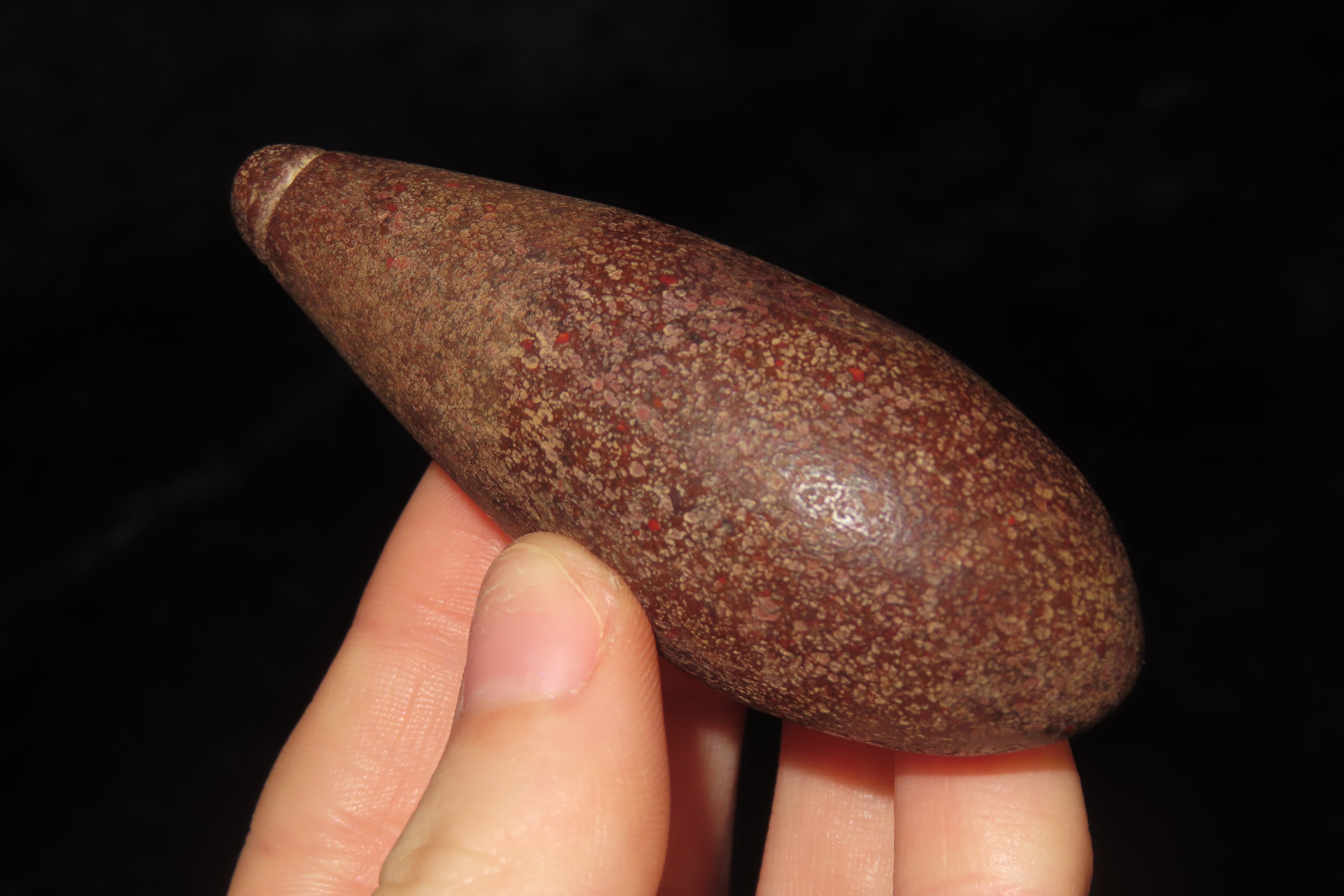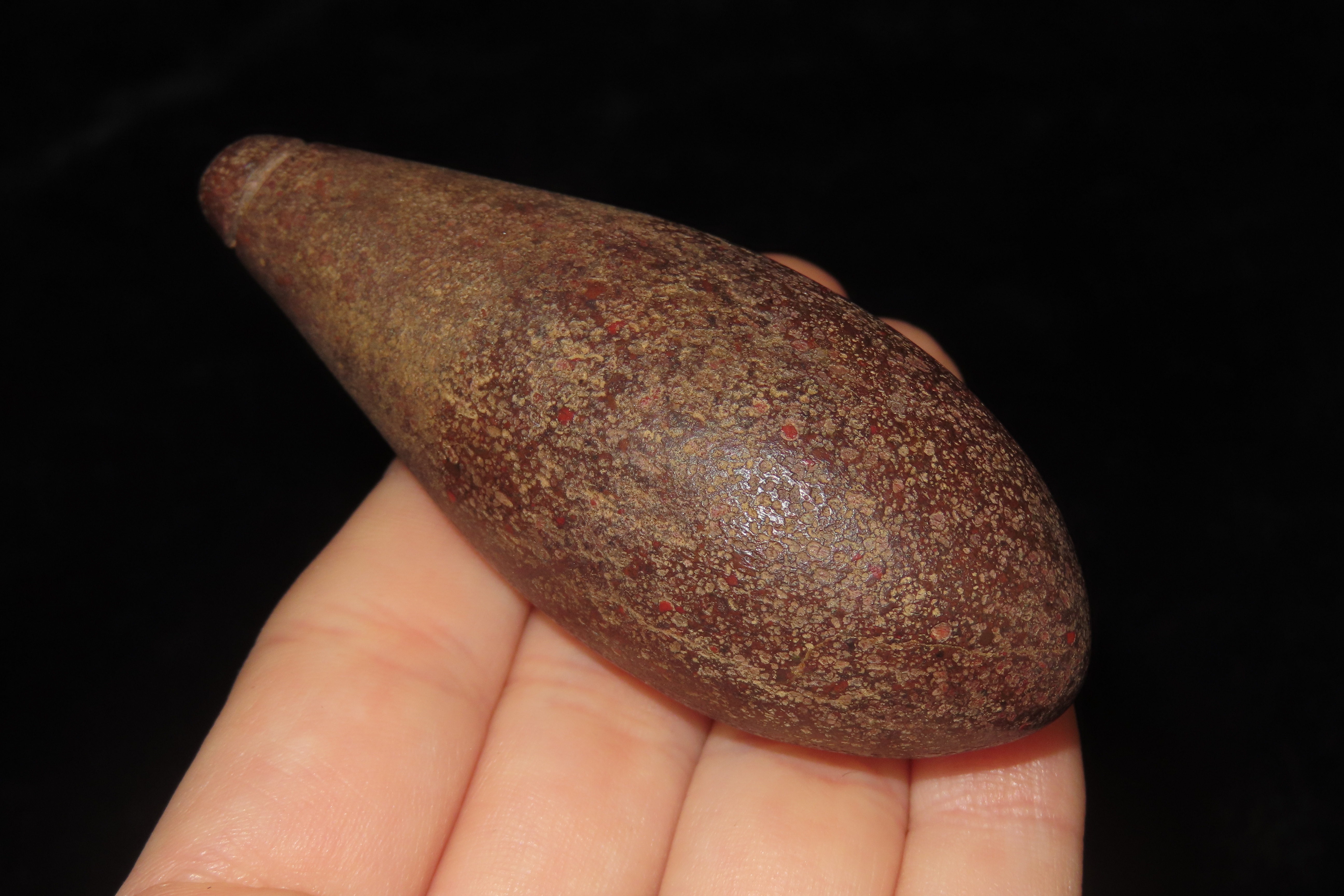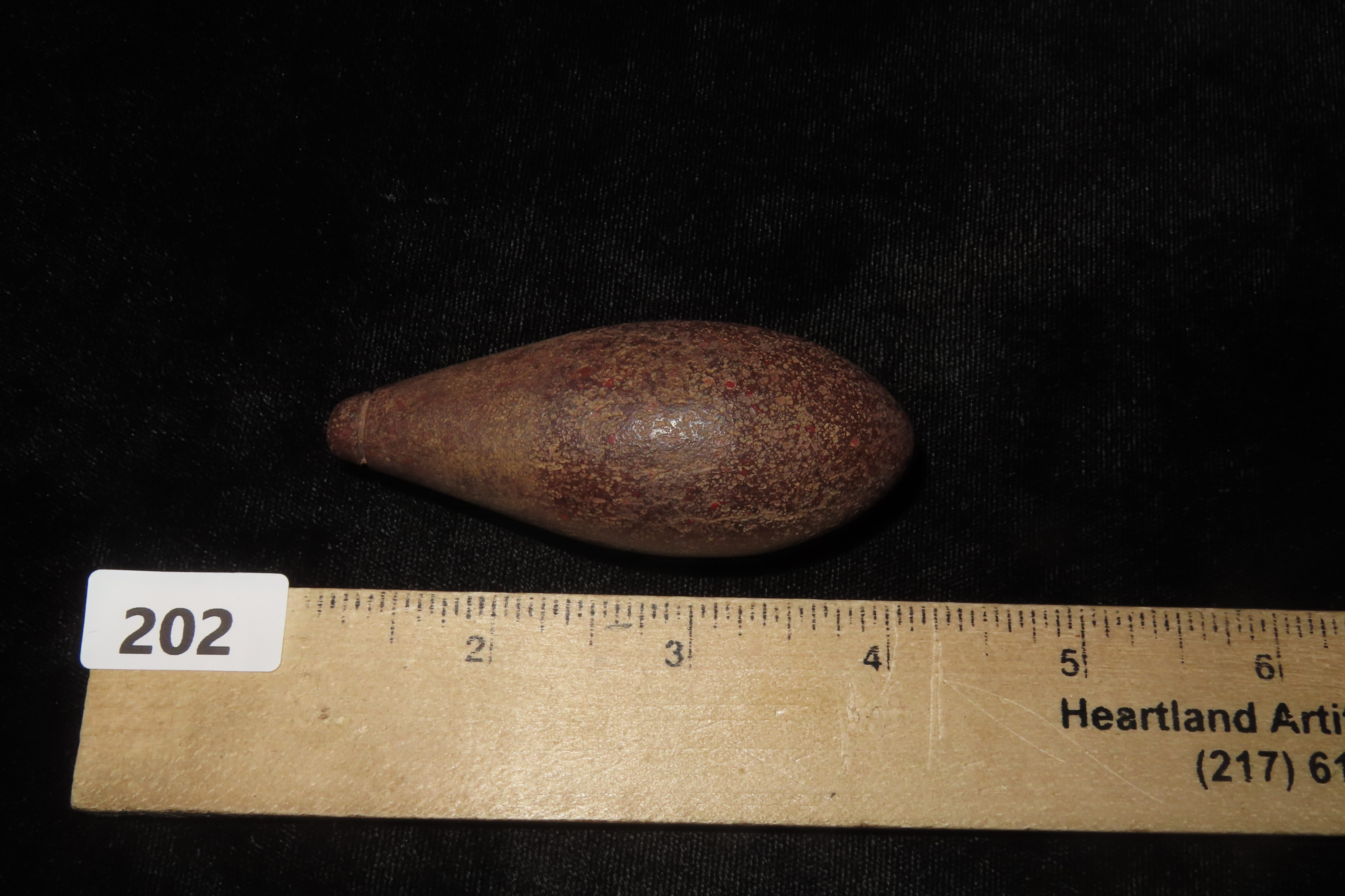 2 15/16" X 1 1/4" Hardstone Plummet, Motley COA, Found in Brown Co. IL.