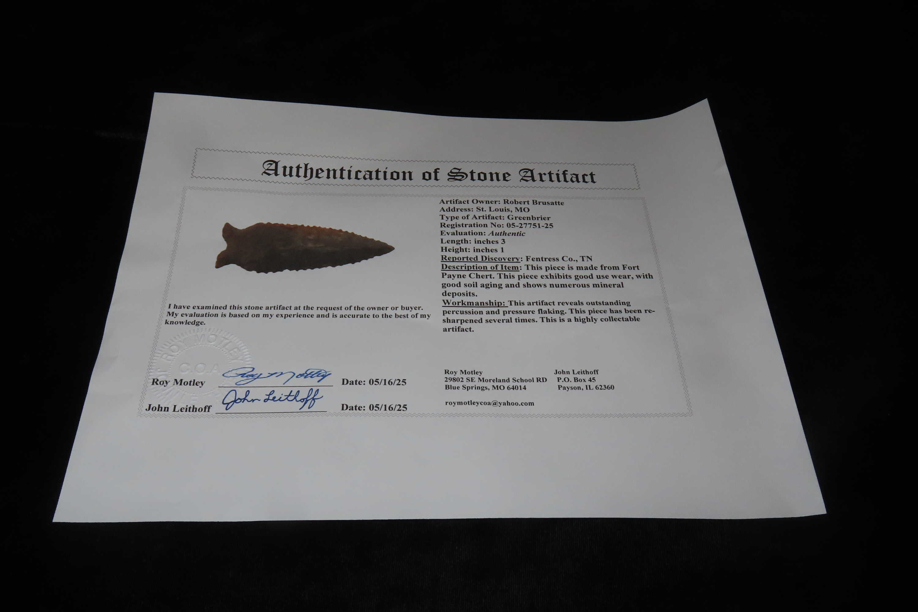 3″ X 1″ Greenbrier, Motley COA, Found in Fentress Co. TN.,