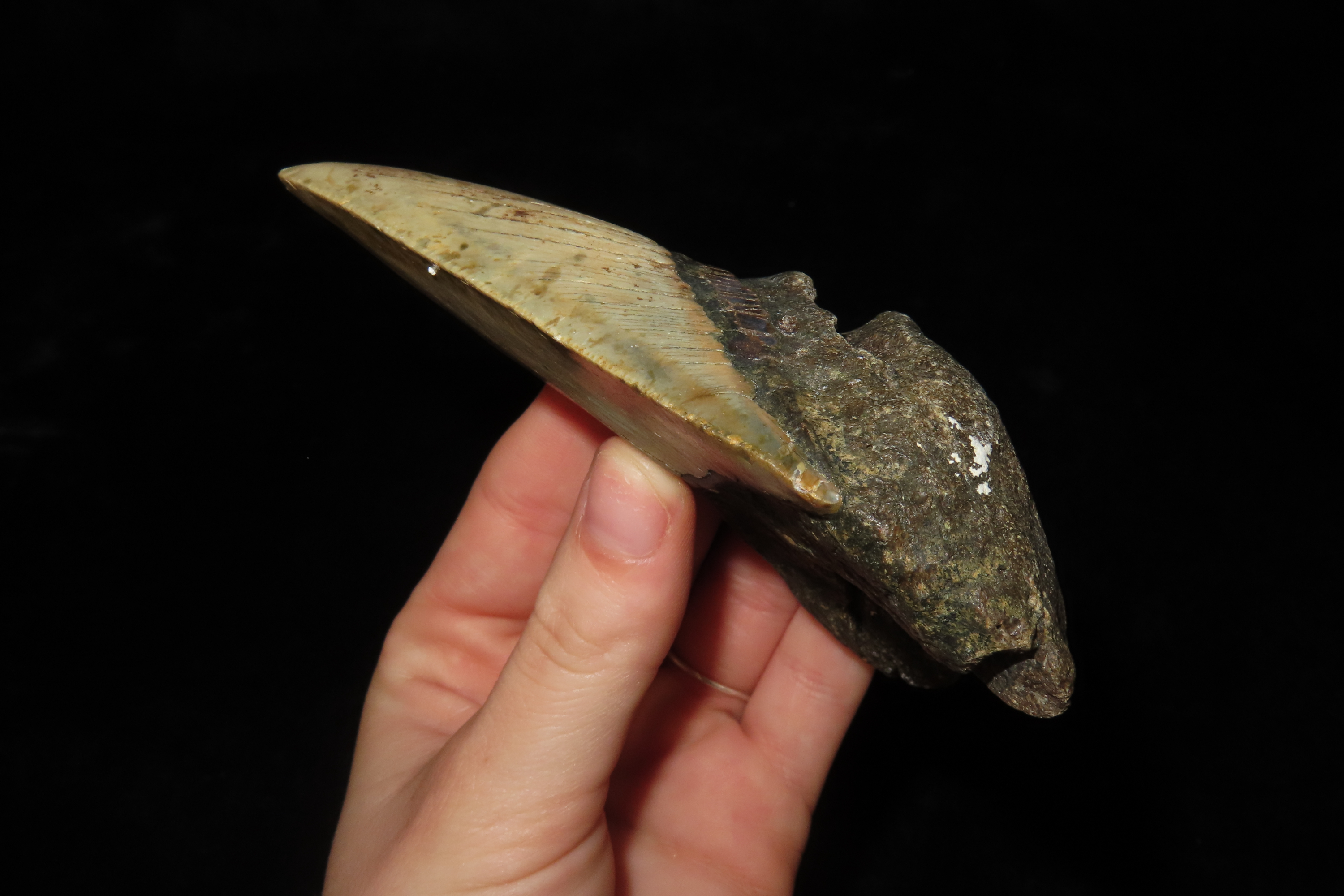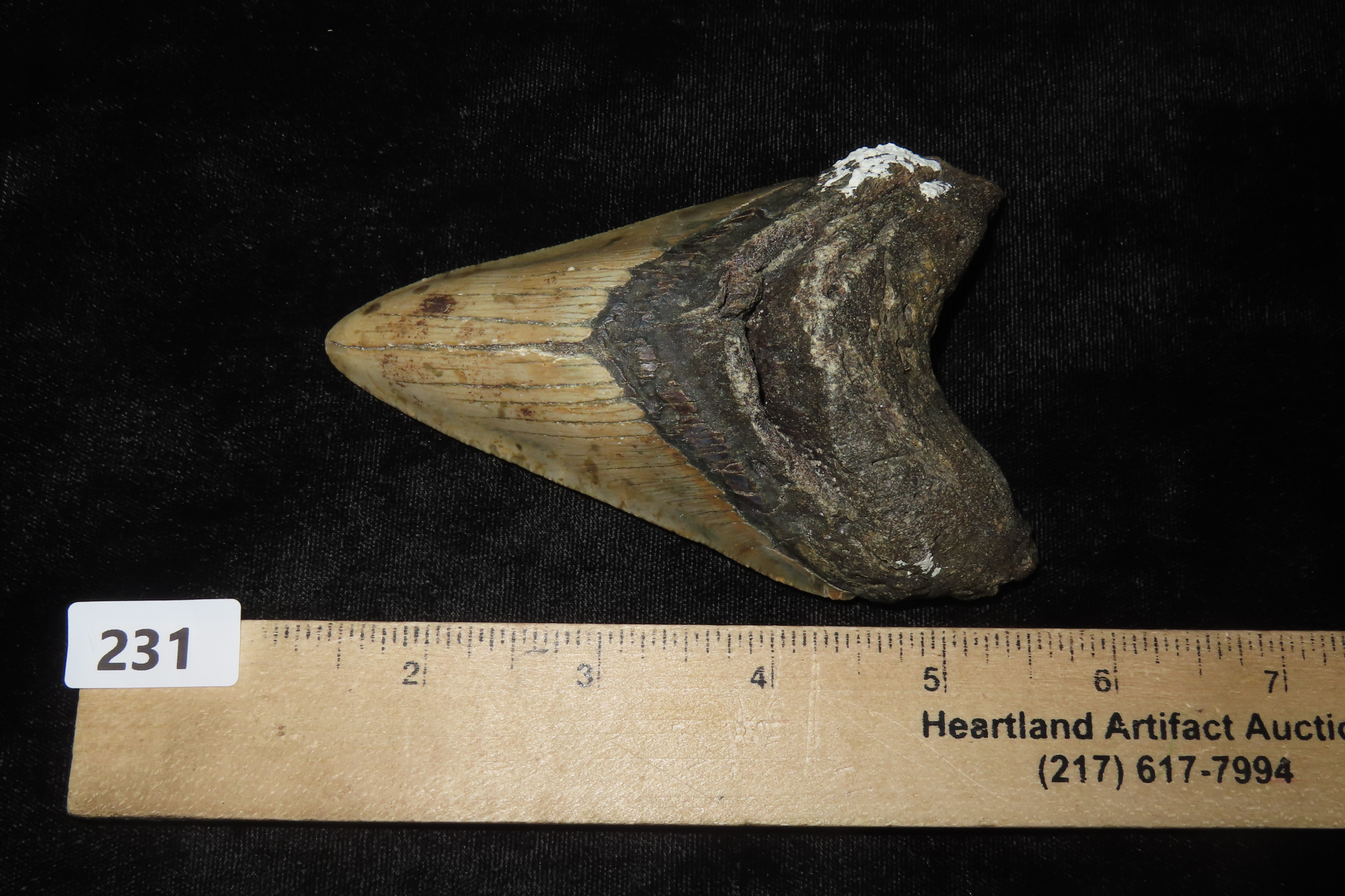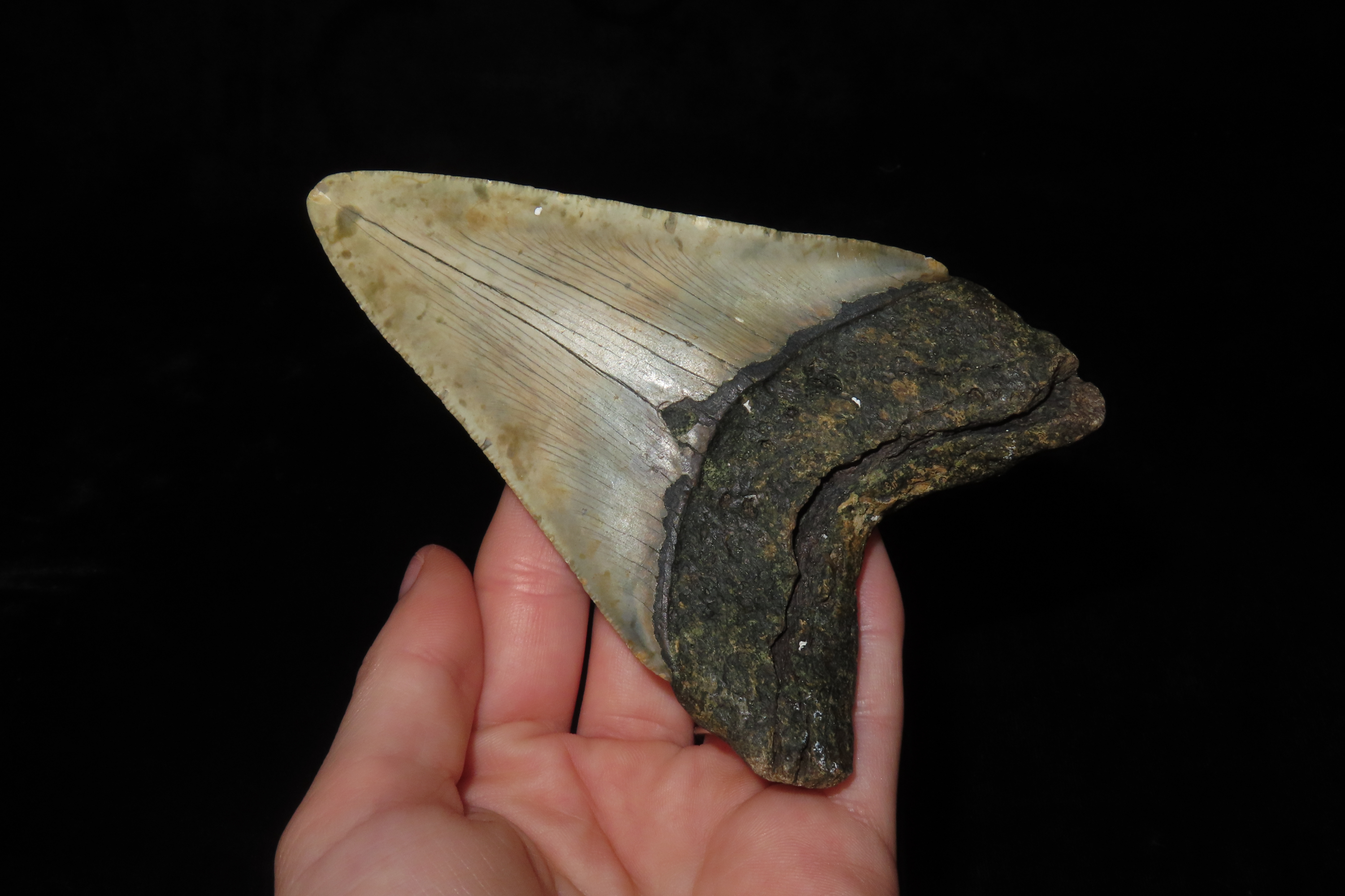 4 9/16″ Megalodon Shark Tooth Fossil, Found off the Coast of Florida, 23-3.6 Million Years old