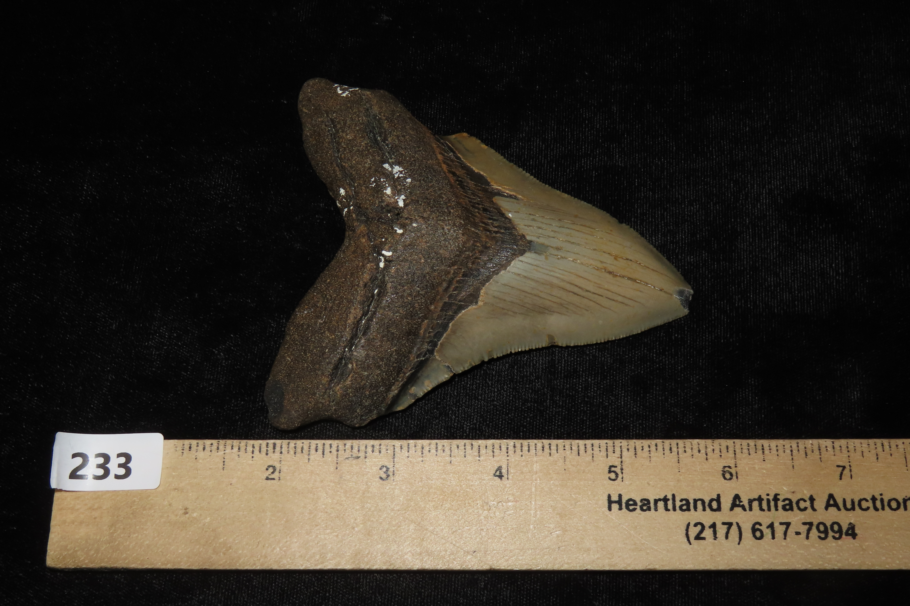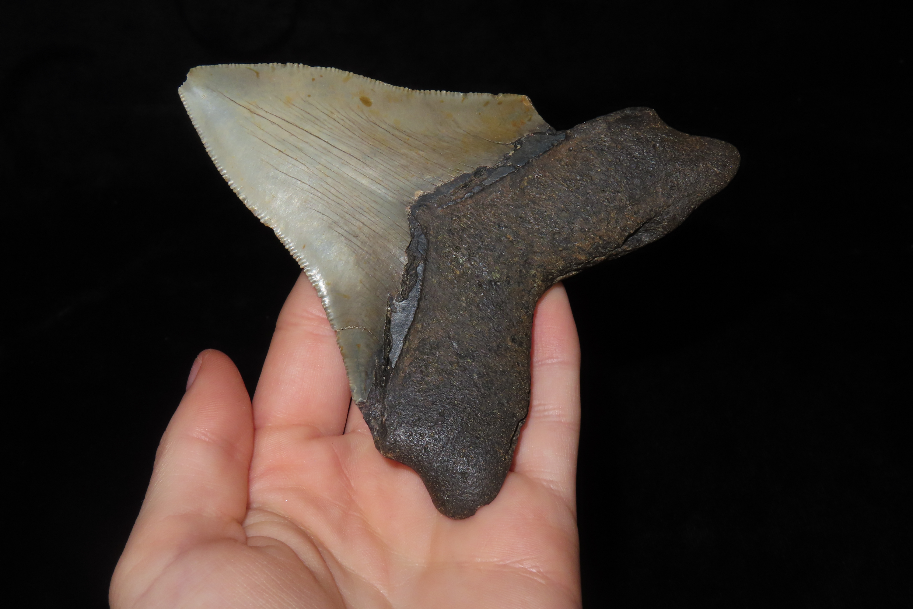 4 7/16″ Megalodon Shark Tooth Fossil, Found off the Coast of Florida, 23-3.6 Million years Old