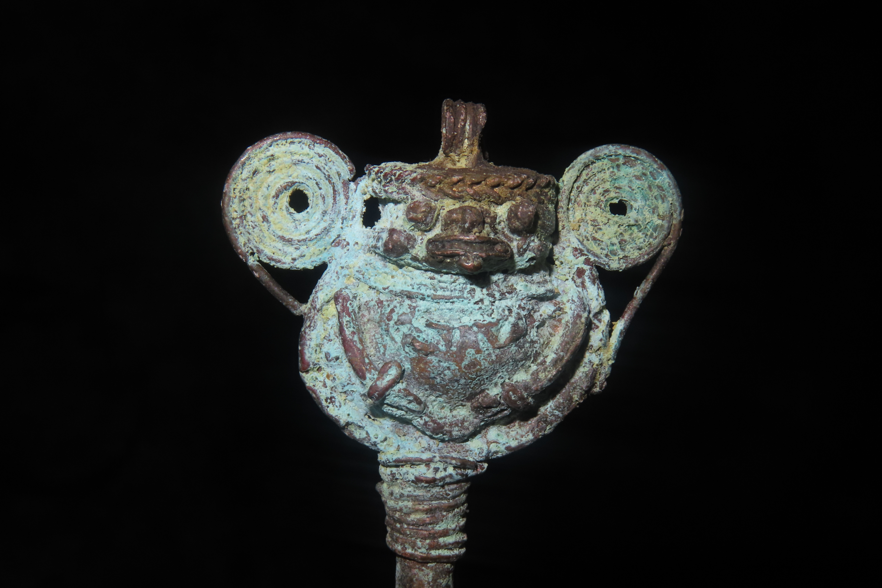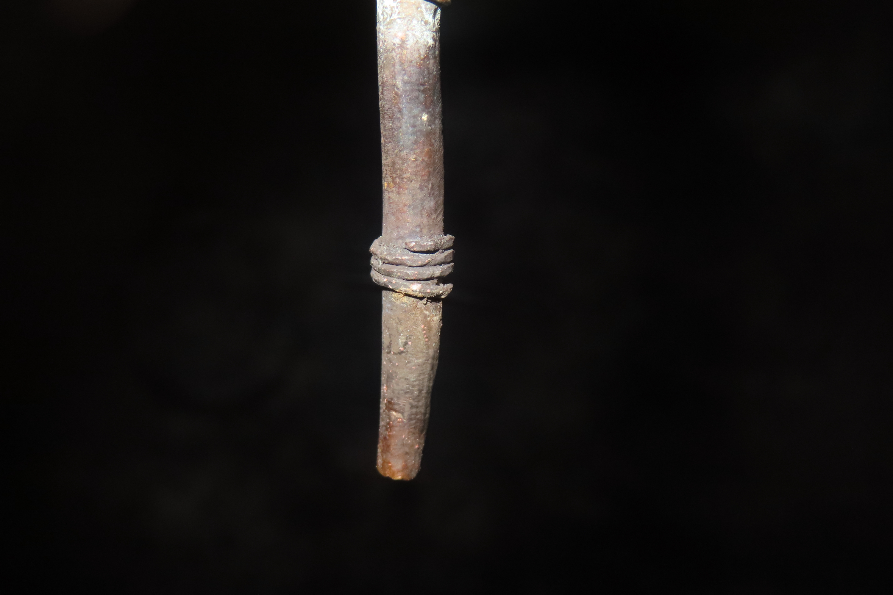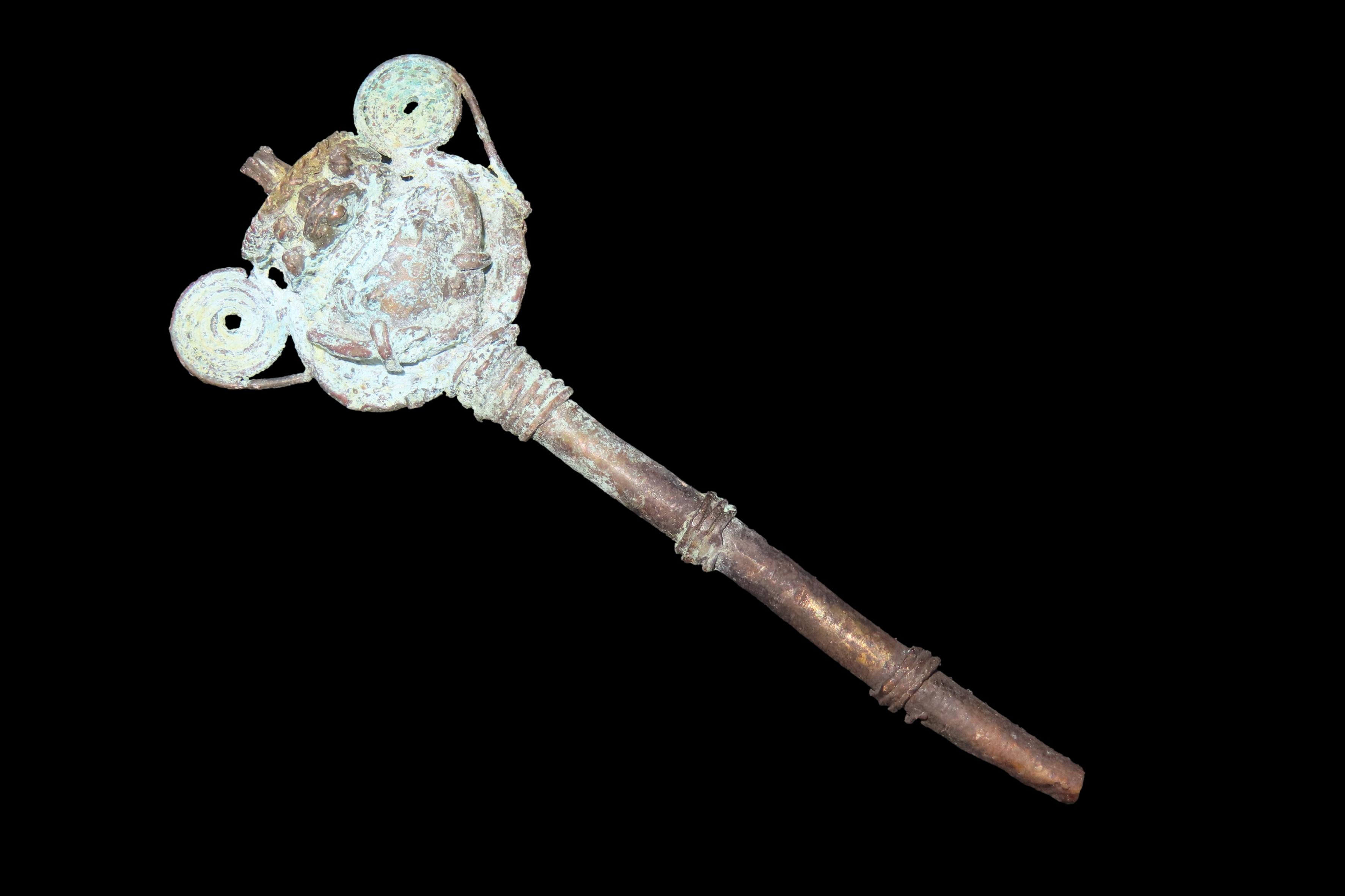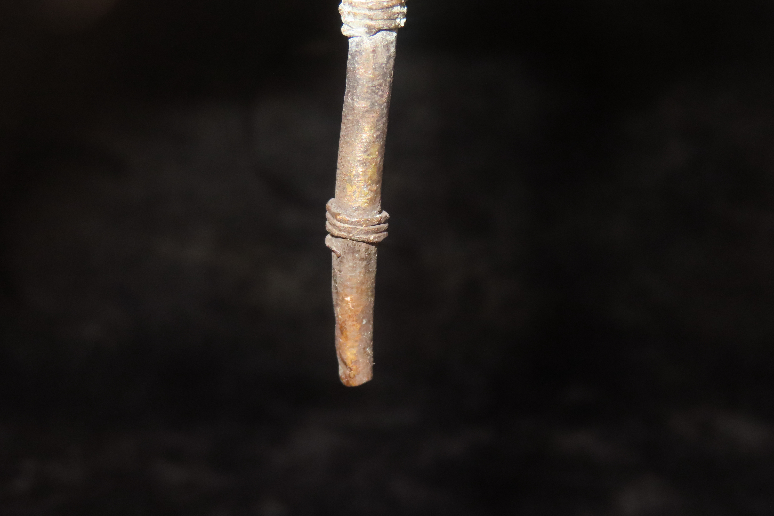 3 5/8″ x 1 7/16″ Copper Effigy Cloak Pin, found in South America, Ex Steve Barras Estate