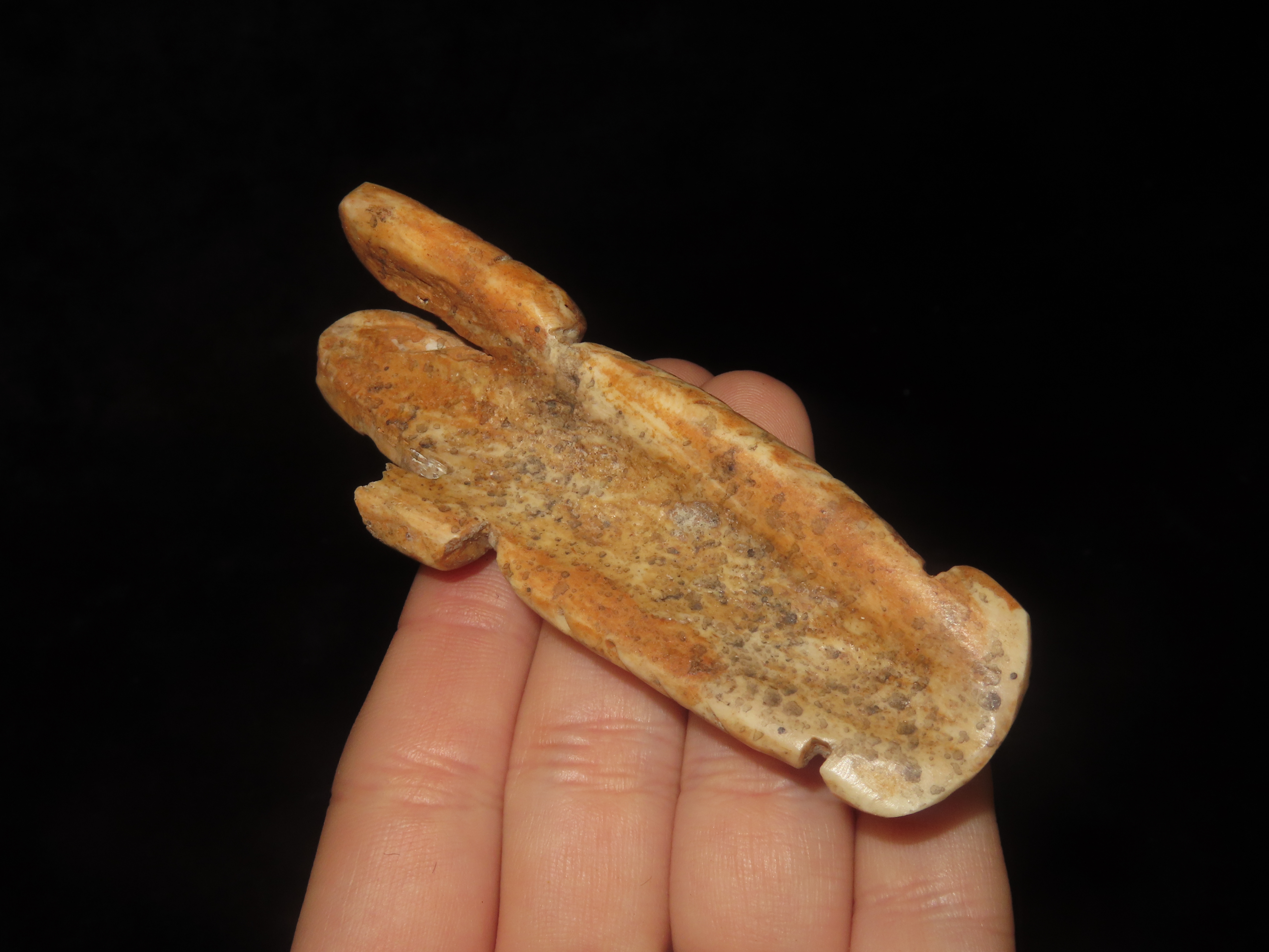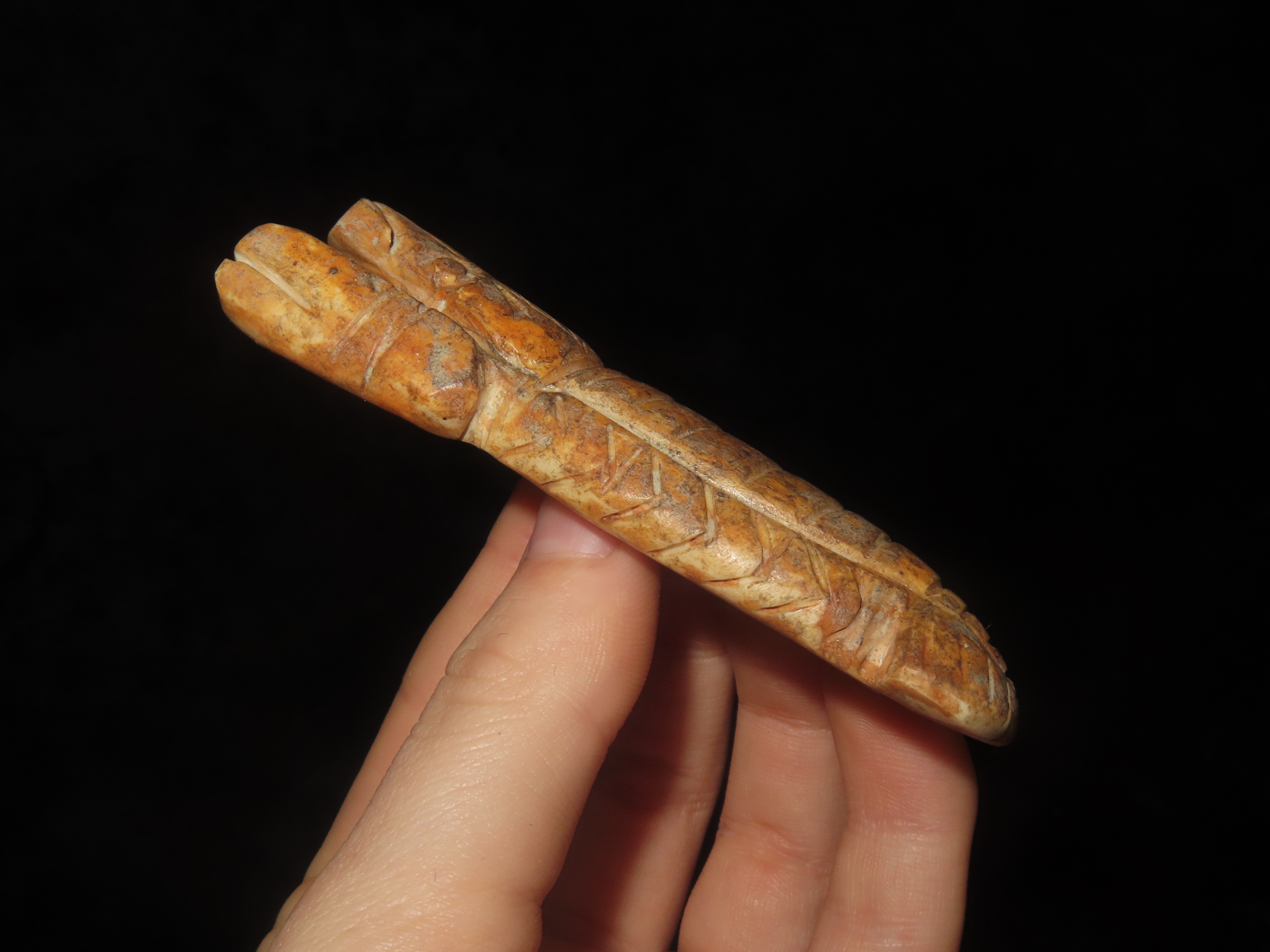 3 1/4″ x 1 1/8″ Pre-Columbian Bone Lobster Effigy, found in Peru, South America