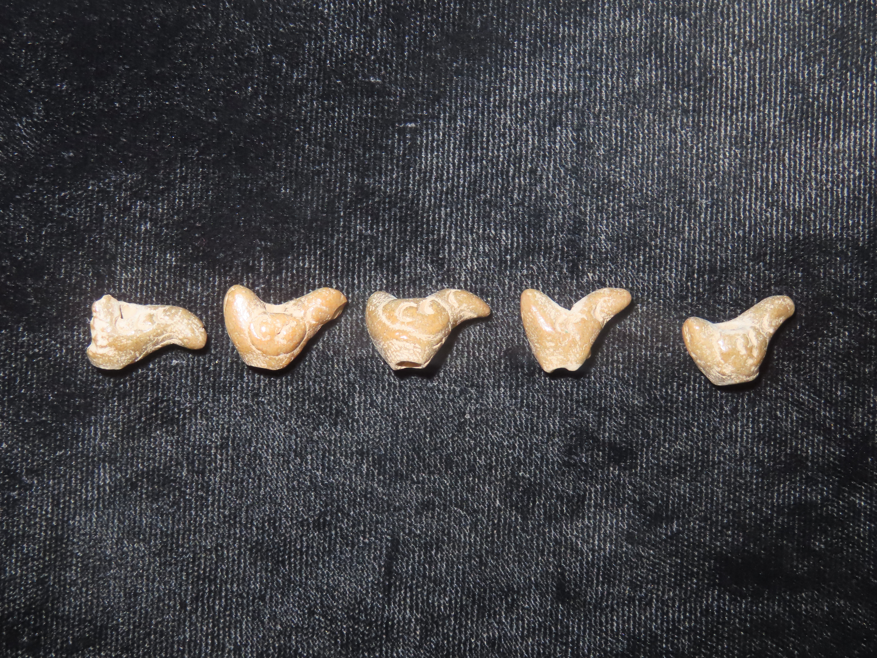Group of 5 Pre-Columbian Parrot Effigy Moche Pottery Beads
