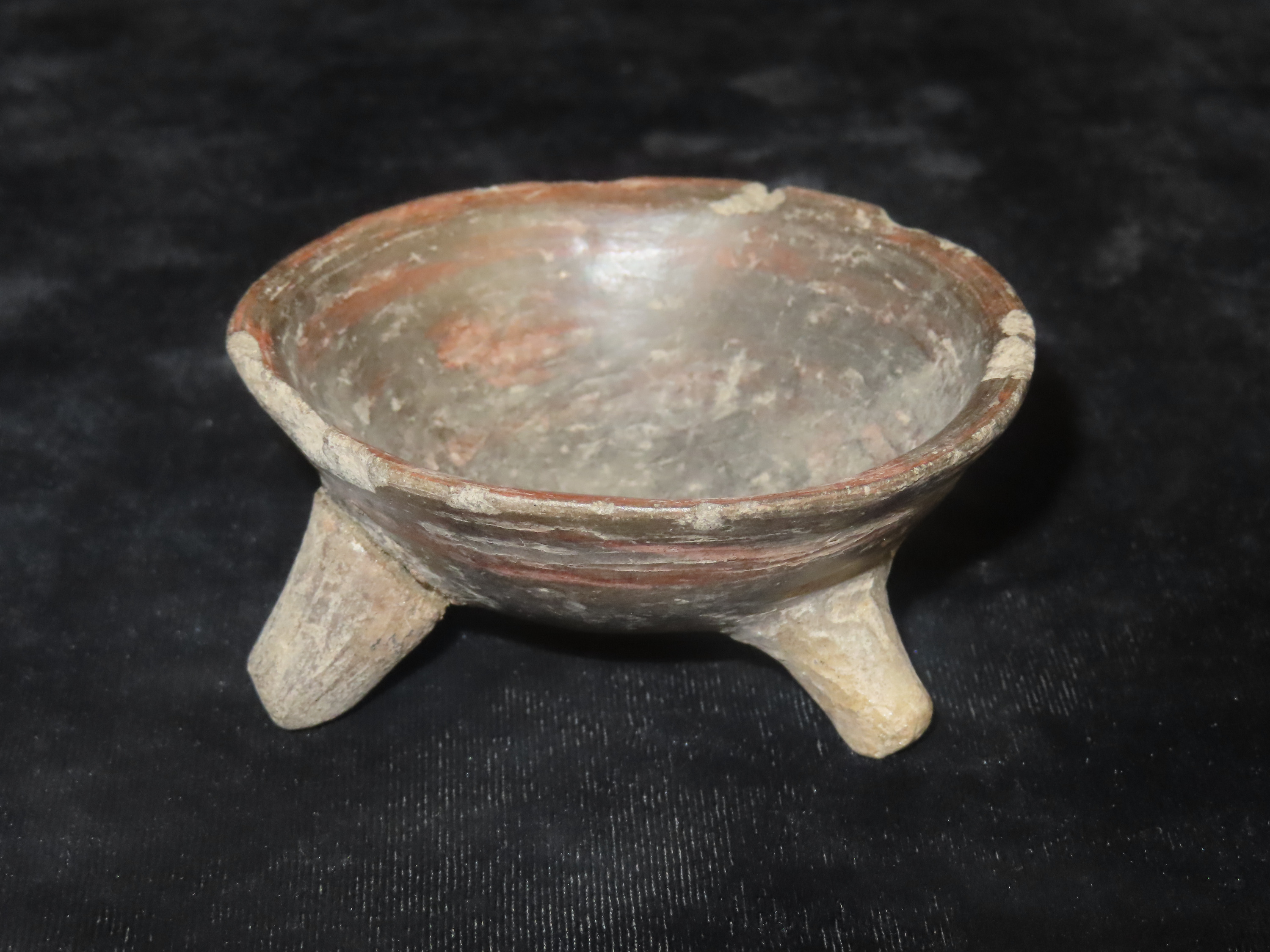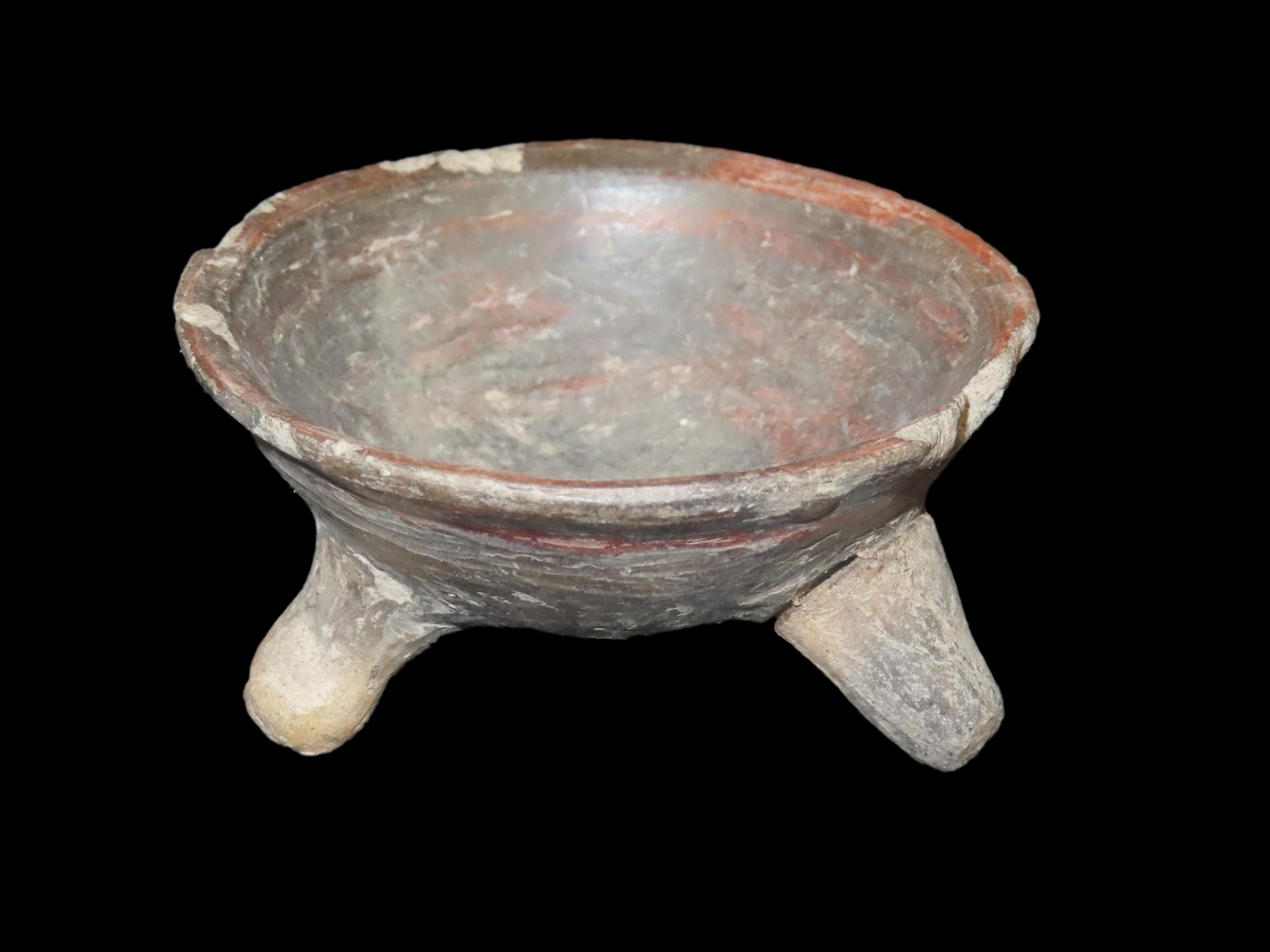 3 1/4″ Pre-Columbian Tripod Pottery Vessel/Bowl, South America